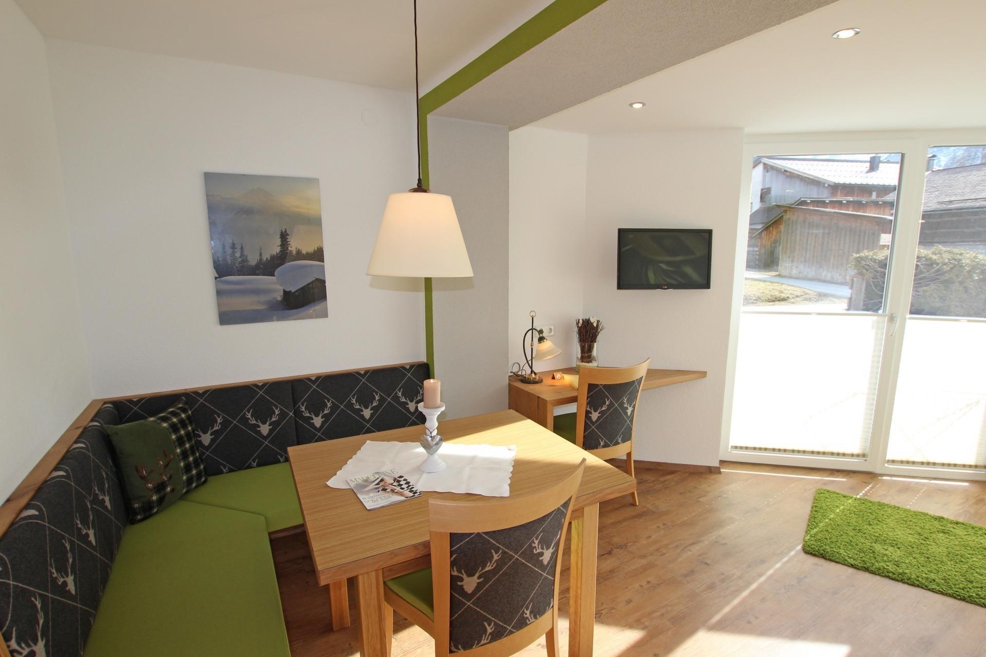 Das Apartment verfügt über einen direkten Zugang zur Terrasse, wo Sie im Freien sitzen und Ihre Mahlzeiten genießen können. Unsere neue Tiroler Lifestyle Küche ist voll ausgestattet und bietet alles, was Sie brauchen, um leckere Gerichte zuzubereiten.