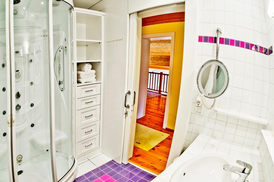 eines mit Balkon und im Bad mit einer Dampfdusche.