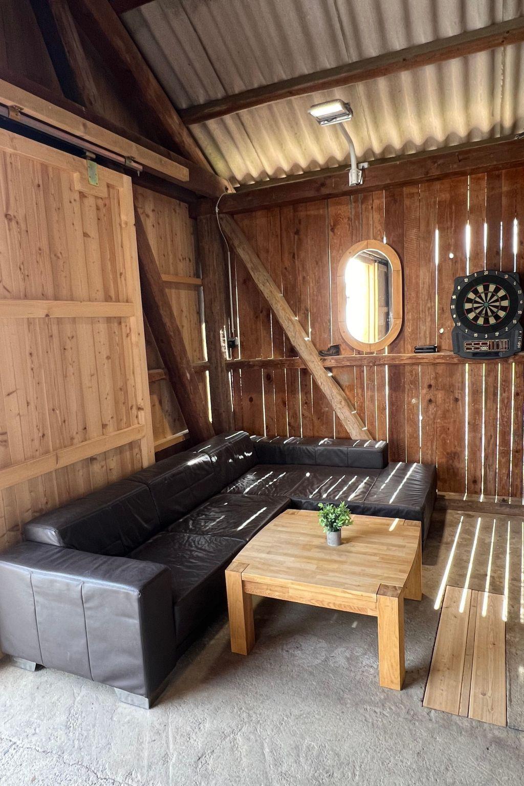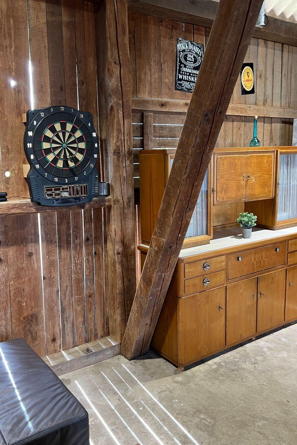 As a special feature, we would like to emphasise our leisure barn. In the barn there is seating for a total of 10 guests and plenty of opportunities for enjoyable leisure activities. In the barn there is a bar with a couch, a table-tennis table, a game of wuzler and darts, as well as a nail stick for a sociable get-together.