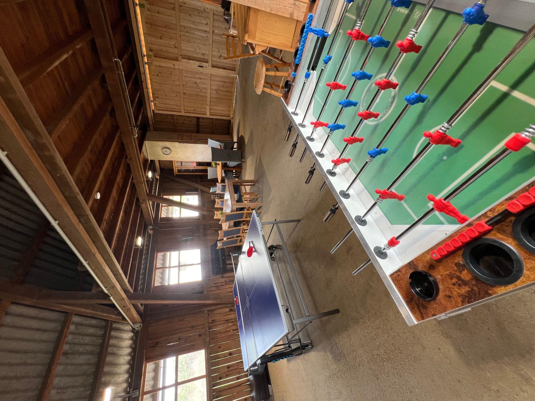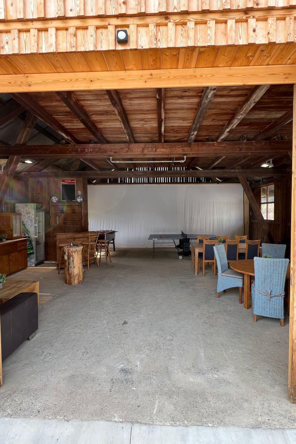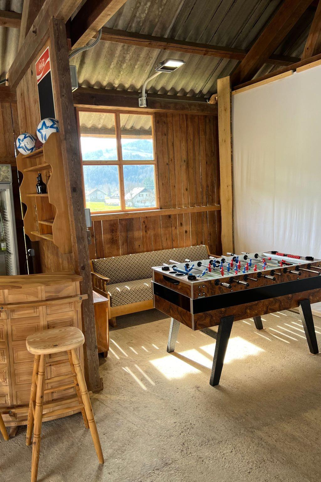 In the newly renovated barn there is a lounge area with a bar, seating, table tennis, Wuzler and a darts game as a meeting point for cosy hours (can only be used in summer as the area is not heated).
