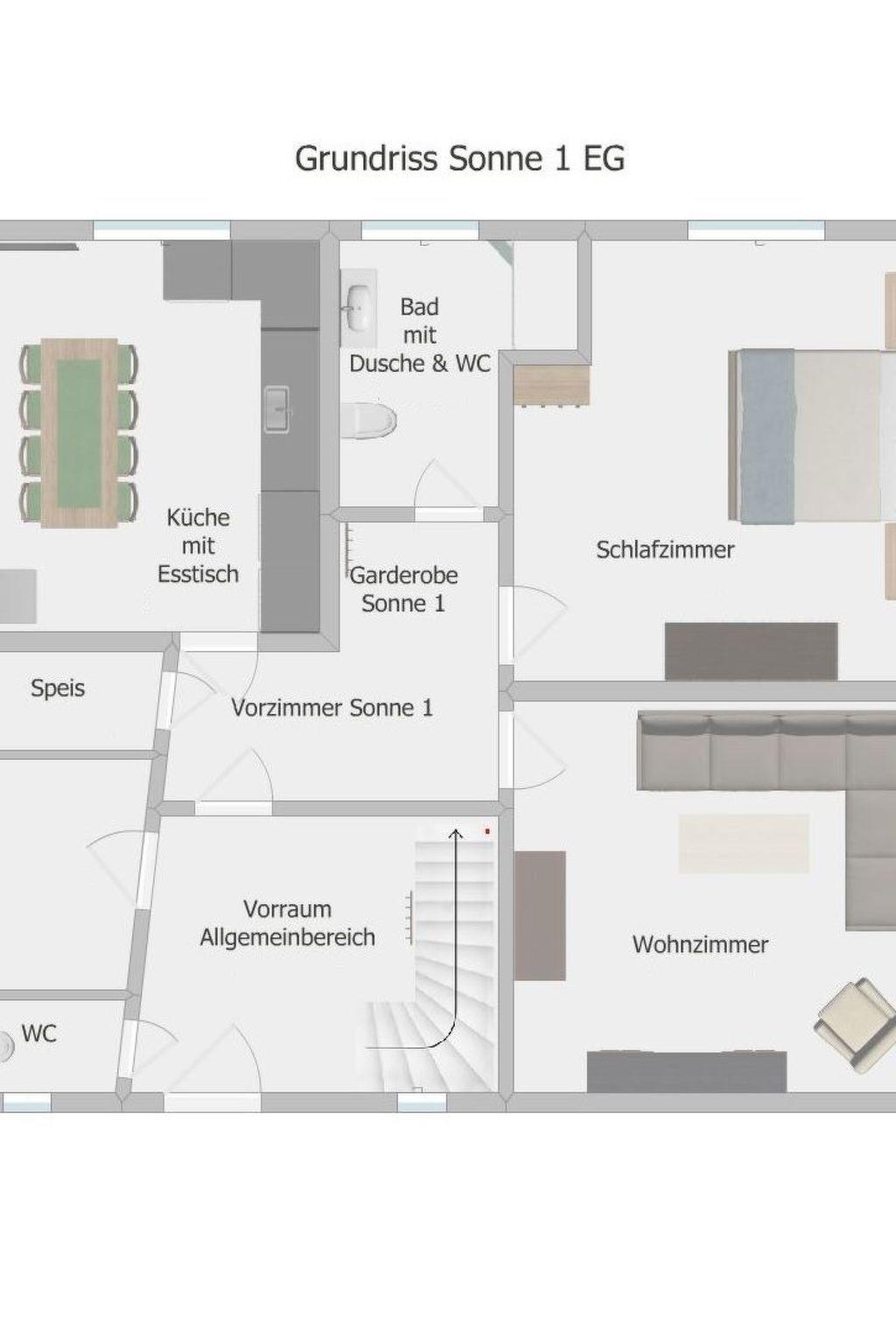 The "Sonnenschein1" flat is located on the ground floor and has the following facilities: