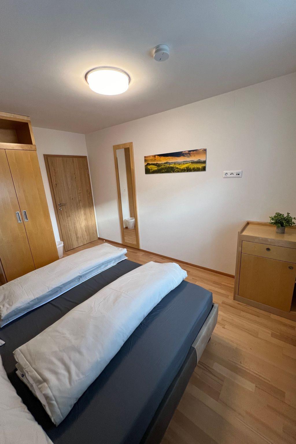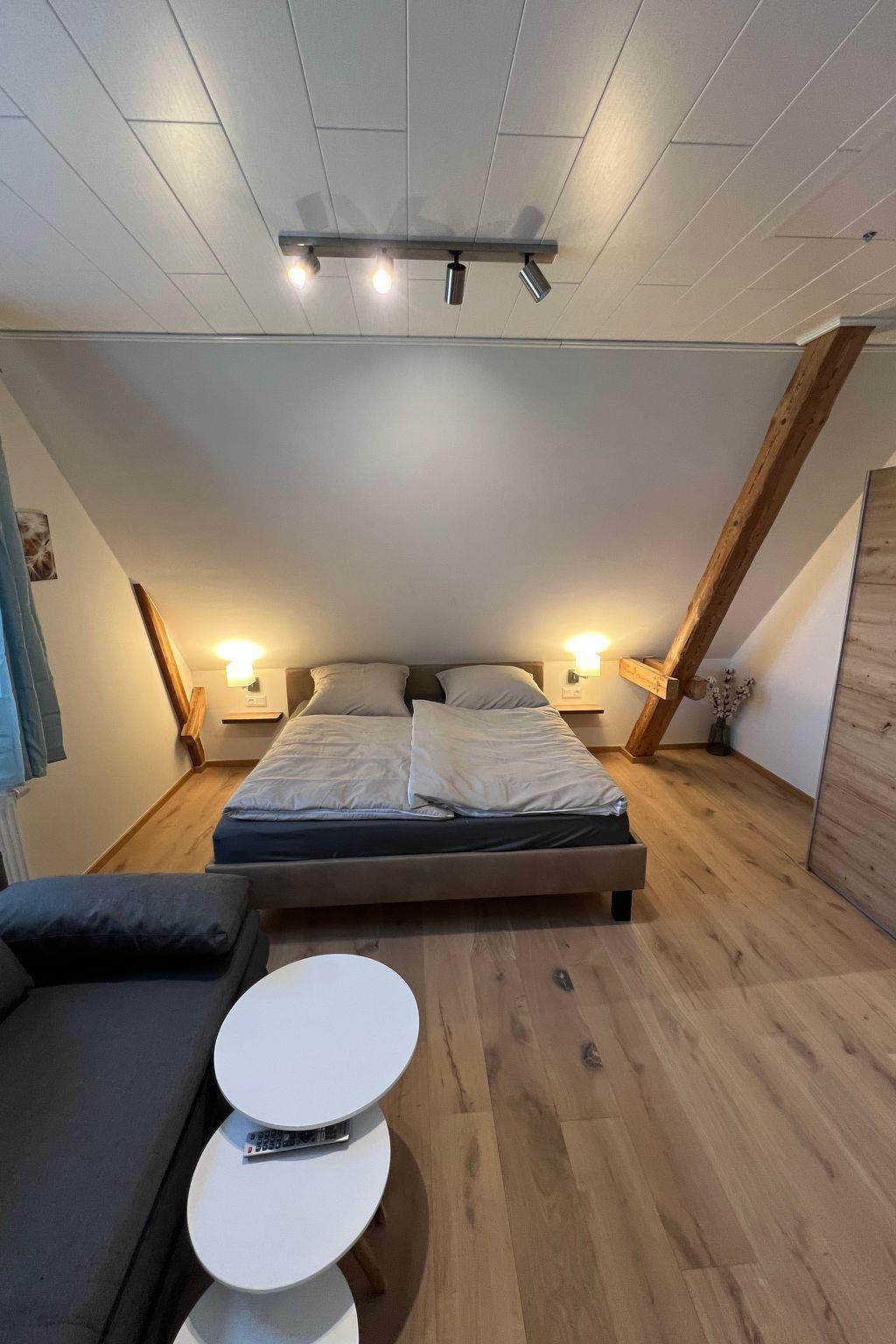 Our two flats are newly renovated and have a spacious bathroom with WC and shower, as well as a kitchen with living room and a double bed with comfortable Emma mattresses for a good night's sleep. In addition to the flats, two double rooms can be booked as required or you can rent the entire holiday home with a total of 4 double beds and two sofa beds.