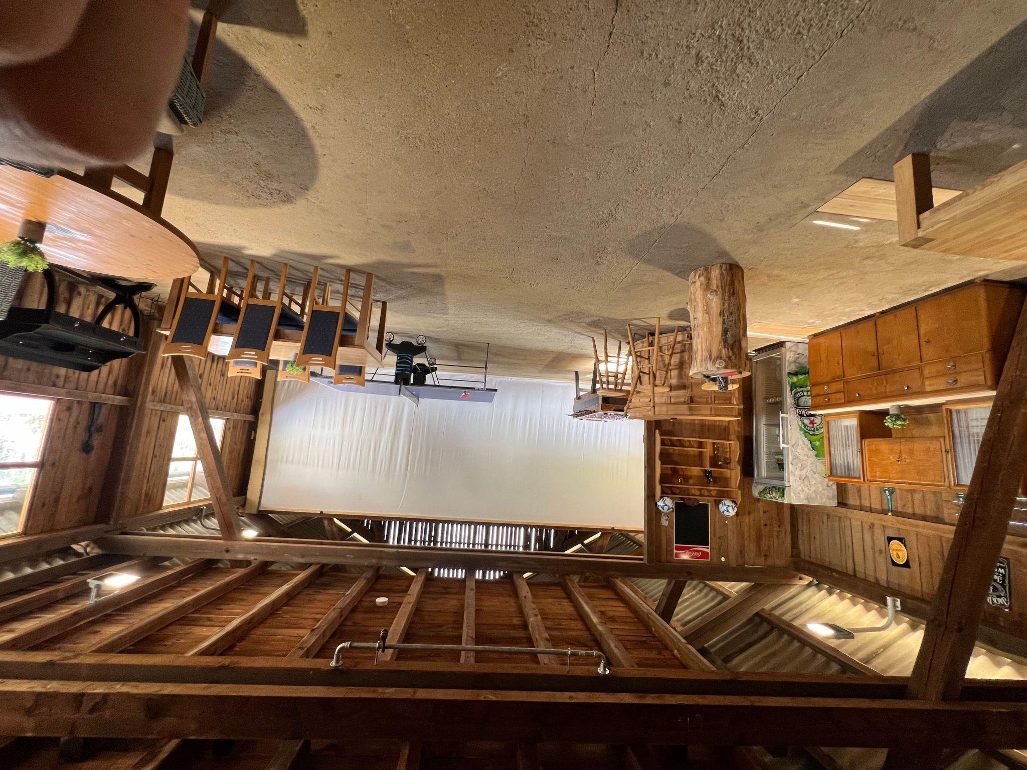 - barn with seating, bar, TV and a darts game as well as a nail tree trunk
