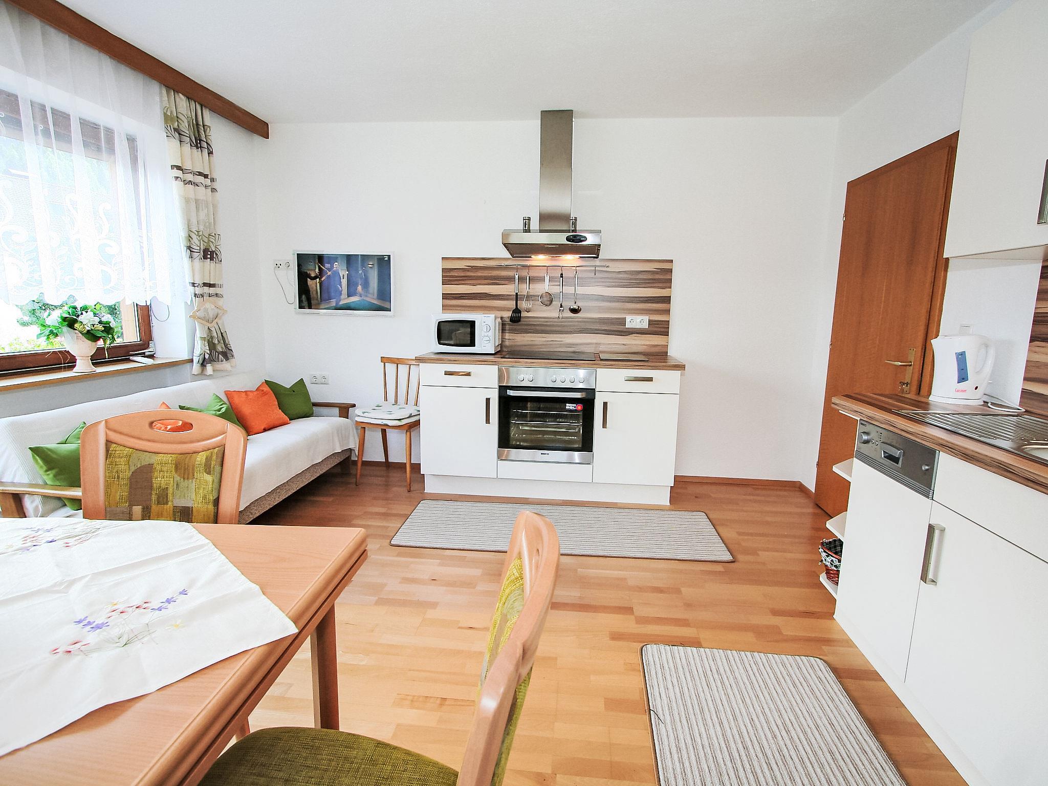 3-room apartment 70 m2 on 1st floor. Comfortable and cosy furnishings: 2 double bedrooms, each room with hand-basin. Exit to the balcony. Large kitchen-/living room (oven, dishwasher, 4 ceramic glass hob hotplates, microwave, freezer) with 1 sofabed, dining nook and satellite TV (flat screen). Exit to the balcony. Shower/WC, sep. WC. Large balcony, east facing position, large balcony, south facing position and west facing position. Balcony furniture. Marvellous view of the mountains and the countryside. Facilities: baby cot for up to 2 year olds. Internet (WiFi). Please note: non-smokers only. Smoke alarm.