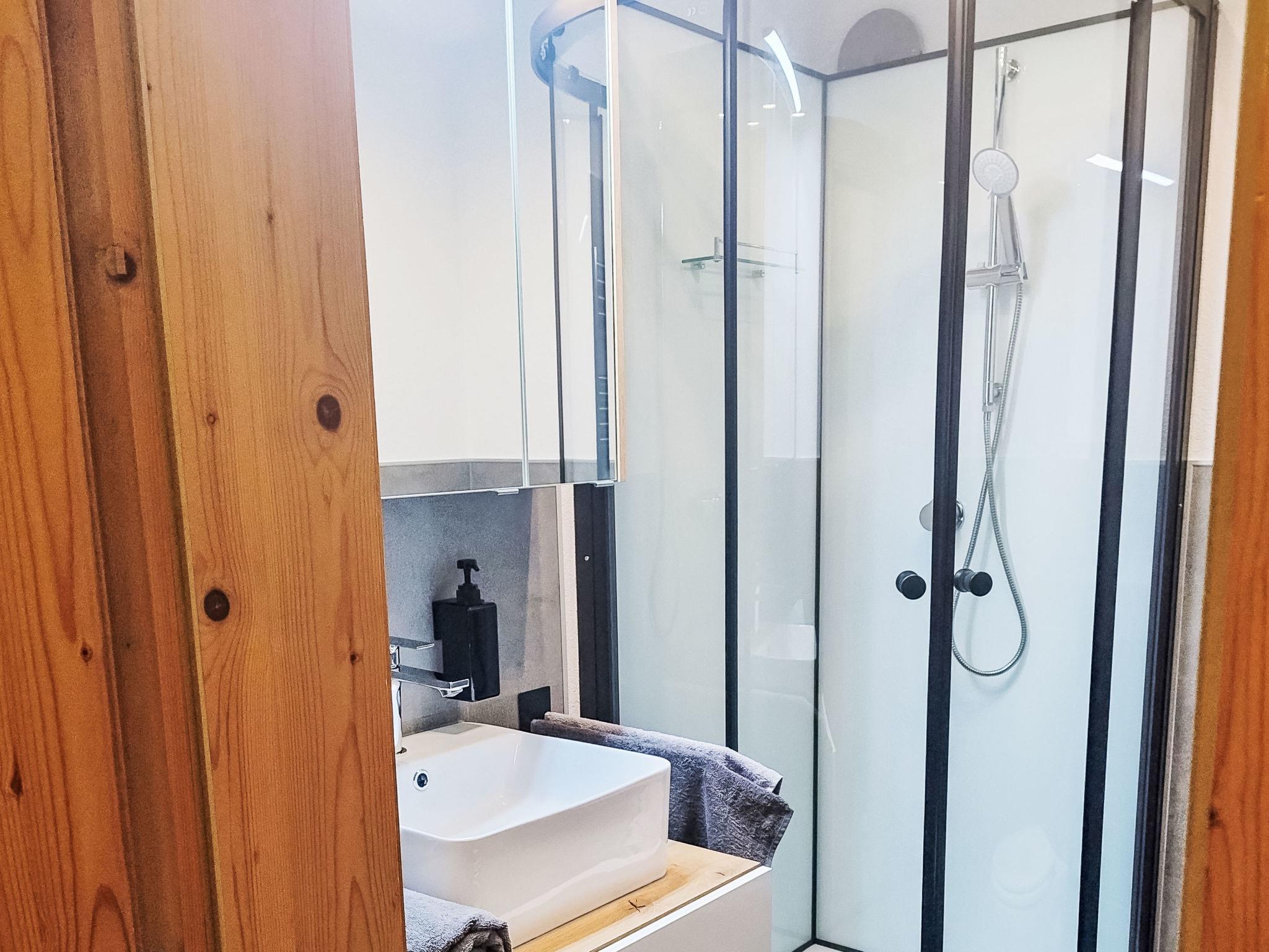 "Anna", 3-room apartment 55 m2, on the upper floor. Renovated in 2021, beautiful and modern furnishings: 1 room with 2 beds and satellite TV (flat screen). 1 double bedroom with satellite TV and flat screen. Exit to the balcony. Kitchen-/living room (oven, dishwasher, 4 ceramic glass hob hotplates, toaster, kettle, microwave, electric coffee machine) with dining nook. Shower/WC. Wood heating, solar energy heating. Balcony 8 m2. Balcony furniture. View of the mountains. Parking (1 car). E-charging station. Please note: non-smokers only.