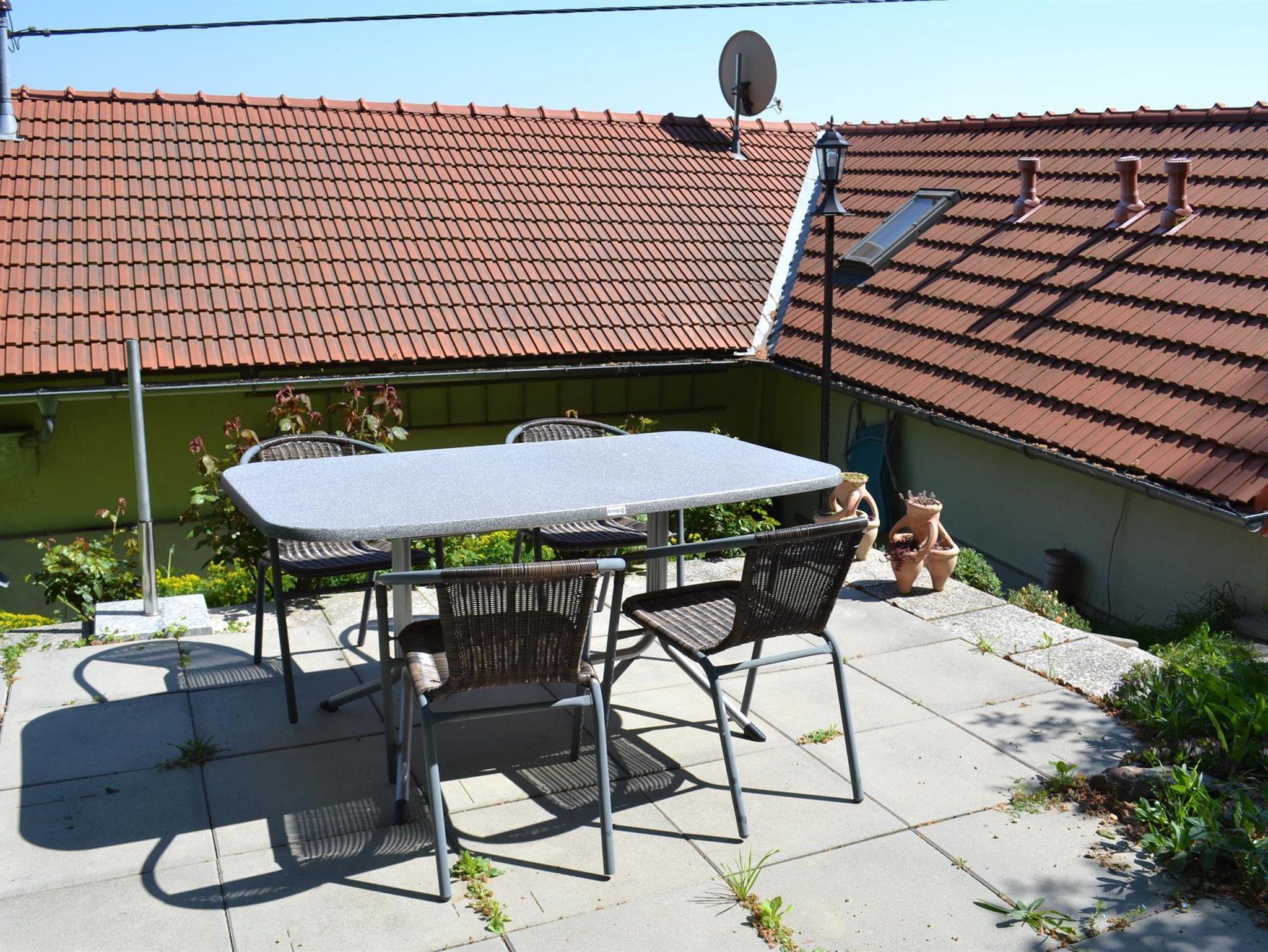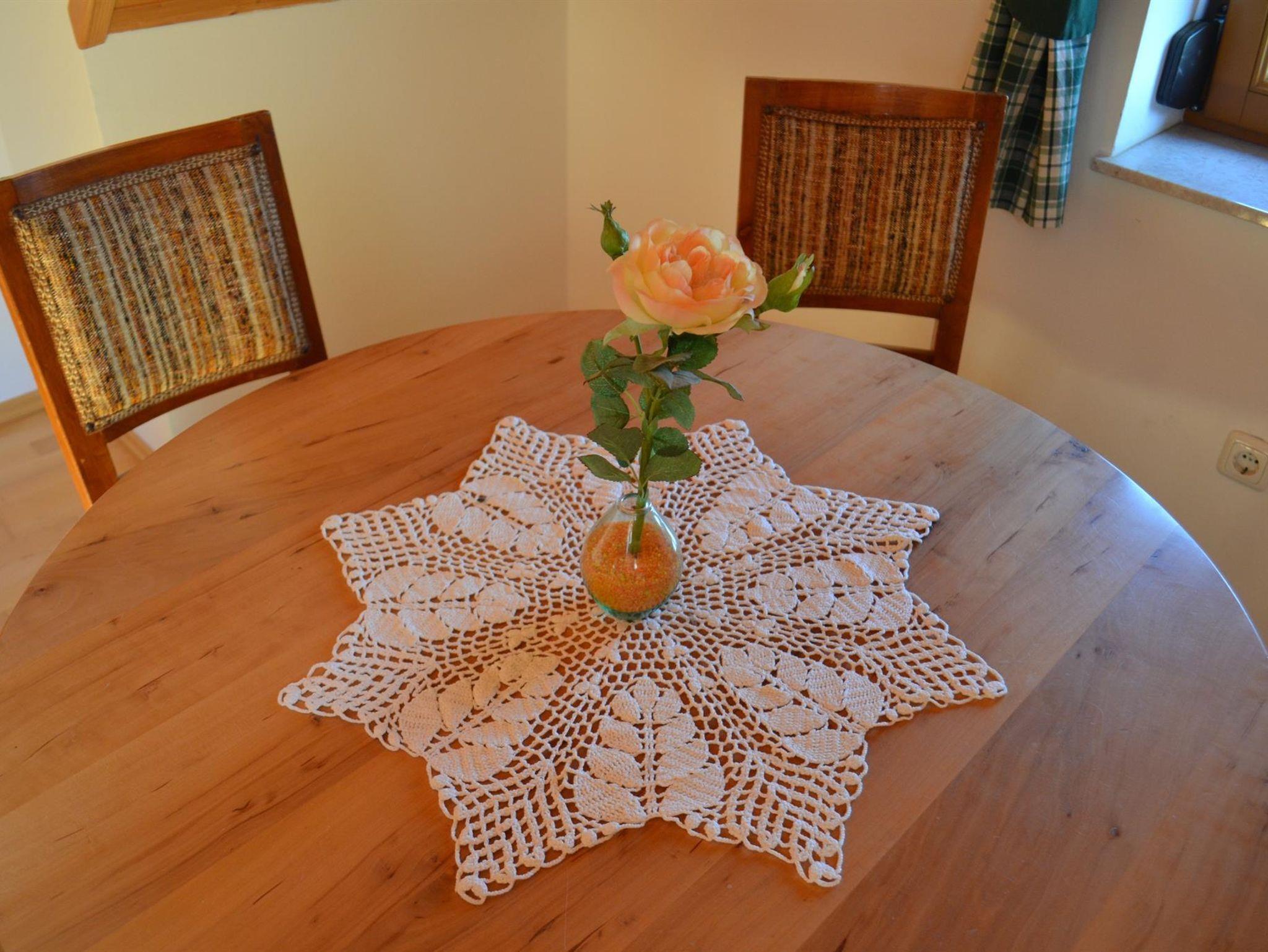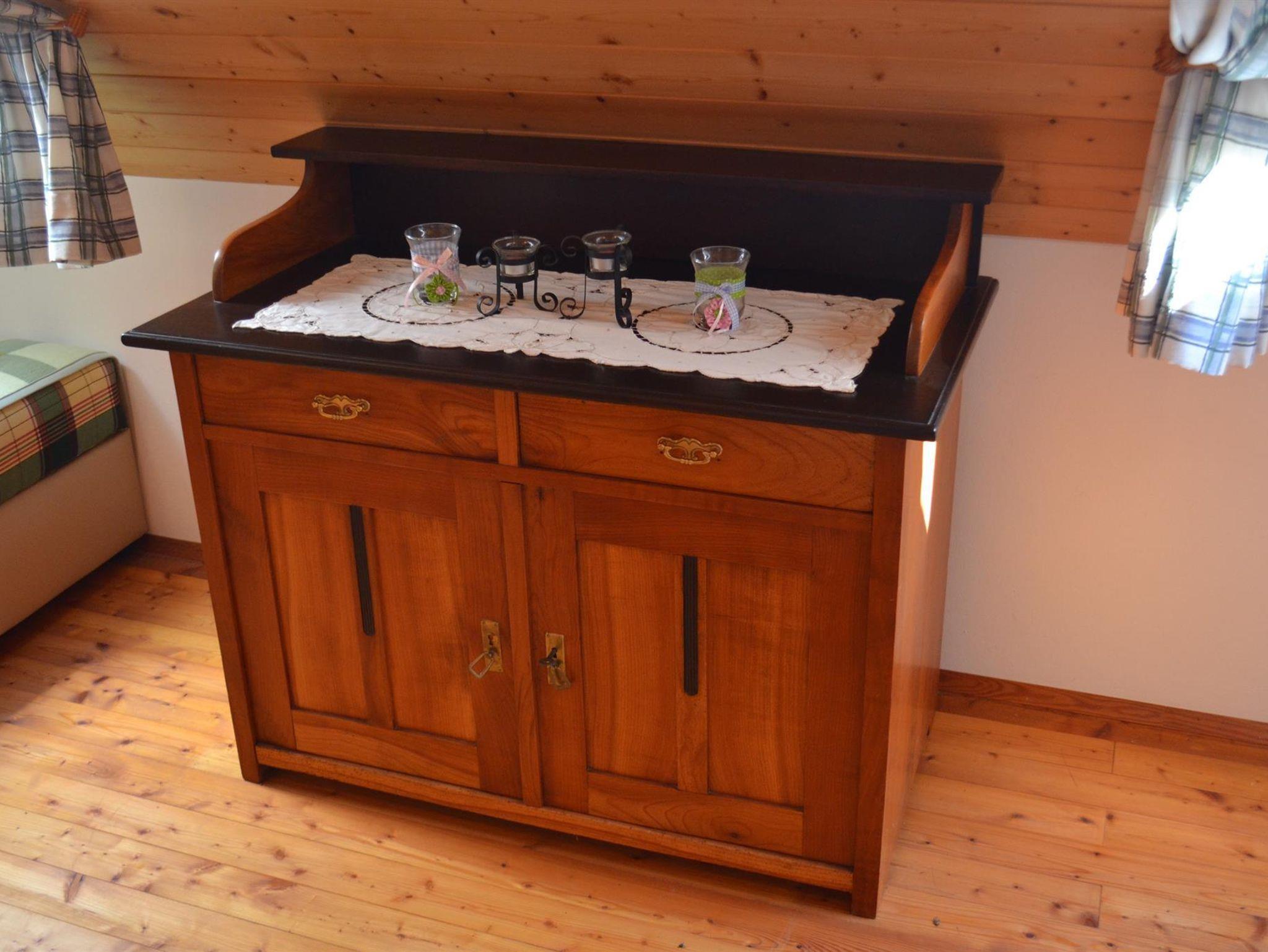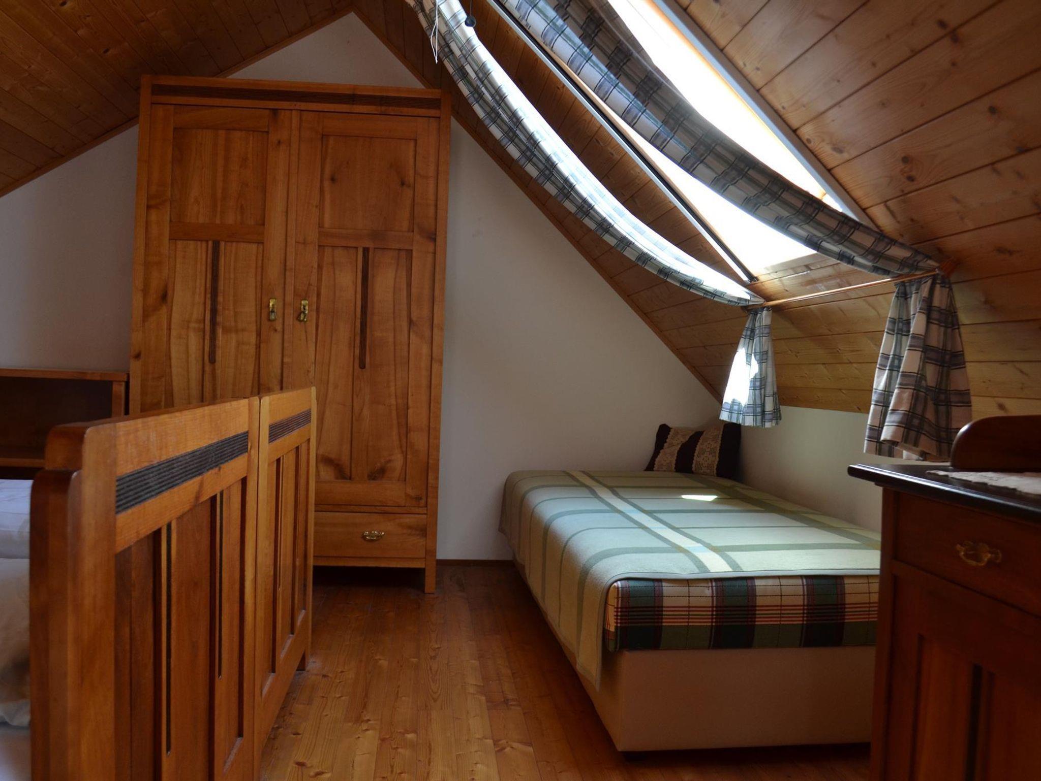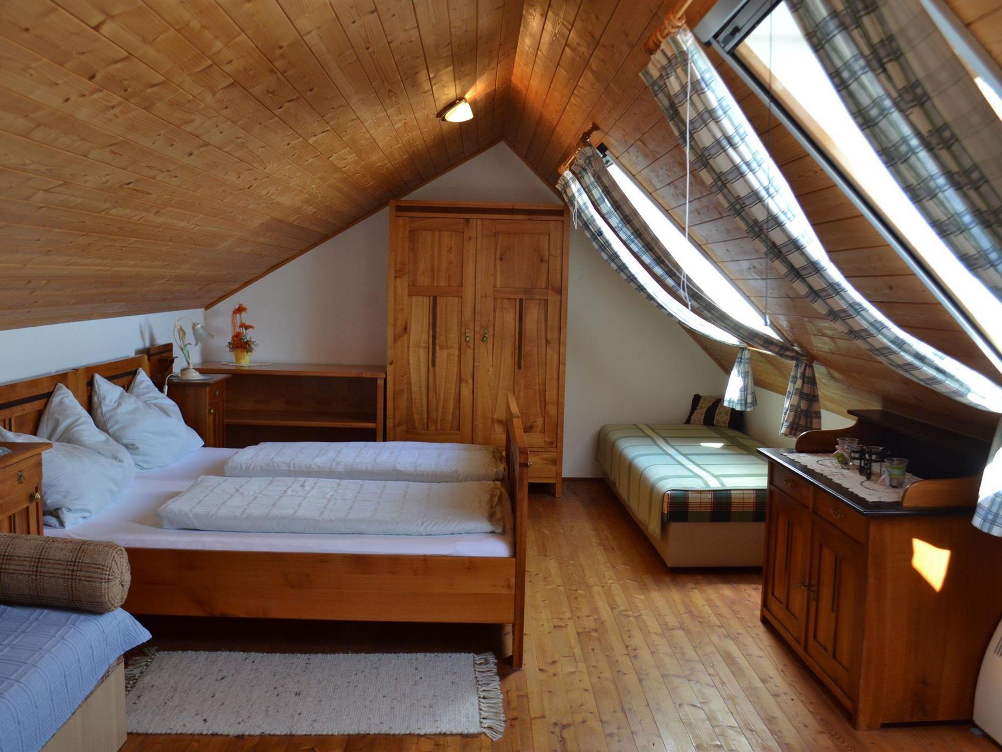 Über einen eigenen Eingang gelangt man ins Dachgeschoss des Kellerstöckls, wo eine behagliche Ferienwohnung mit ca. 40 m² Wohnfläche eingerichtet wurde. Diese verfügt über einen gemütlichen Wohnraum mit einer Kochecke. Ein Schlafzimmer ist mit einem Doppelbett und zwei Zustellbetten für Kinder, sowie mit schönen, antiken Möbeln eingerichtet. Ein Badezimmer mit Dusche und einem separaten WC rundet alles ab. Ein TV-Gerät steht zur Verfügung. Hinter dem Haus lädt eine Gartengarnitur und Liegestühle zum gemütlichen Beisammensein ein. Ein überdachter PKW-Abstellplatz befindet sich direkt neben dem Haus.