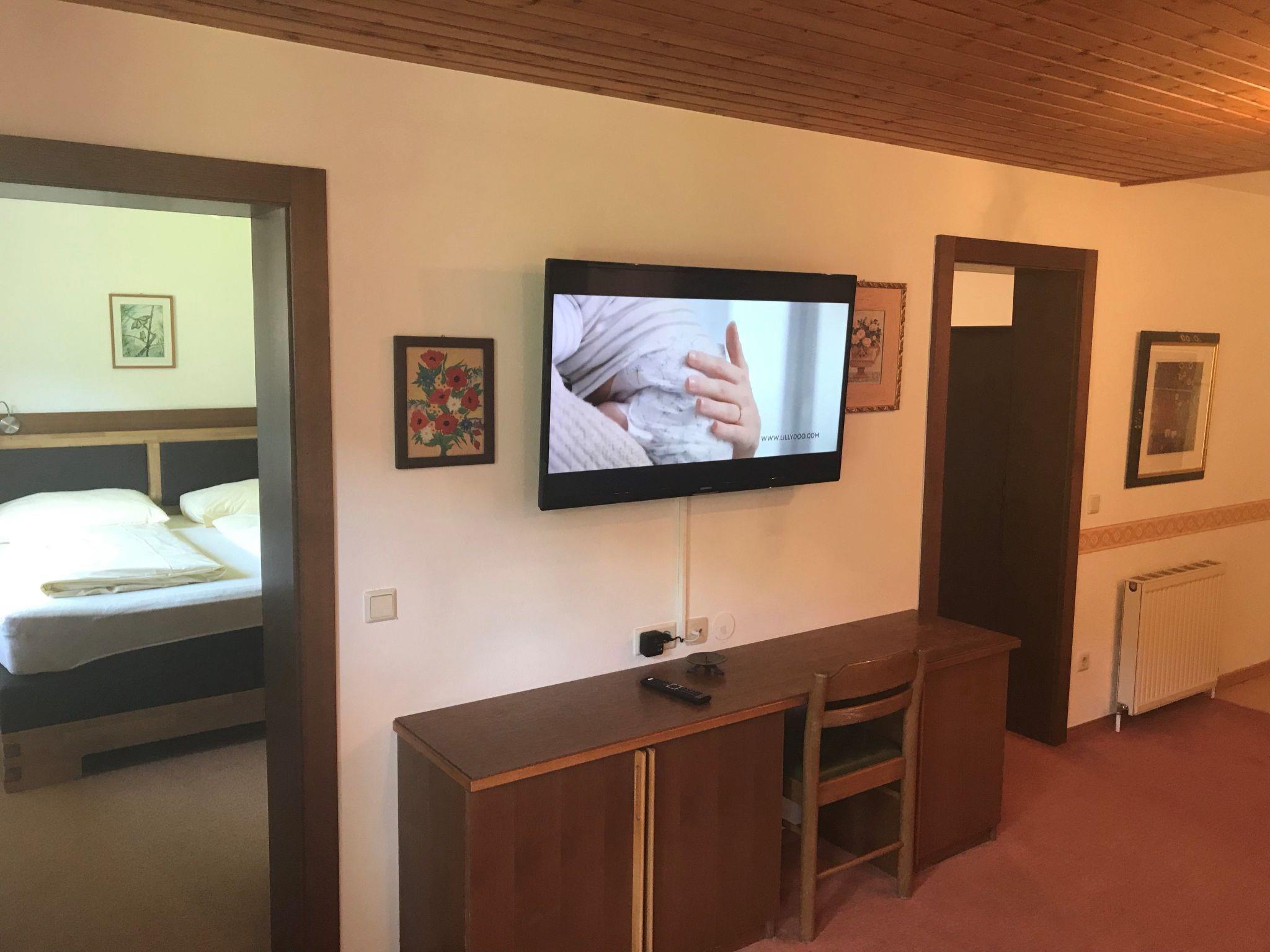 The Jäger country house has three big apartments, each with 65m² of living space. Each apartment has two bedrooms. One apartment has two double beds and a bunk bed and is therefore suitable for six people, of which two children. The kitchen is very well-equipped, with a dishwasher, microwave, electric hob with four rings and an oven, fridge with big freezer compartment. The apartments also have a dining corner, a sofa suite and an entrance area. The bathroom has a shower and a washbasin. The WC is separate. A cot is available for toddlers on request. All the apartments have a flatscreen TV with cable channels and free wireless Internet access.