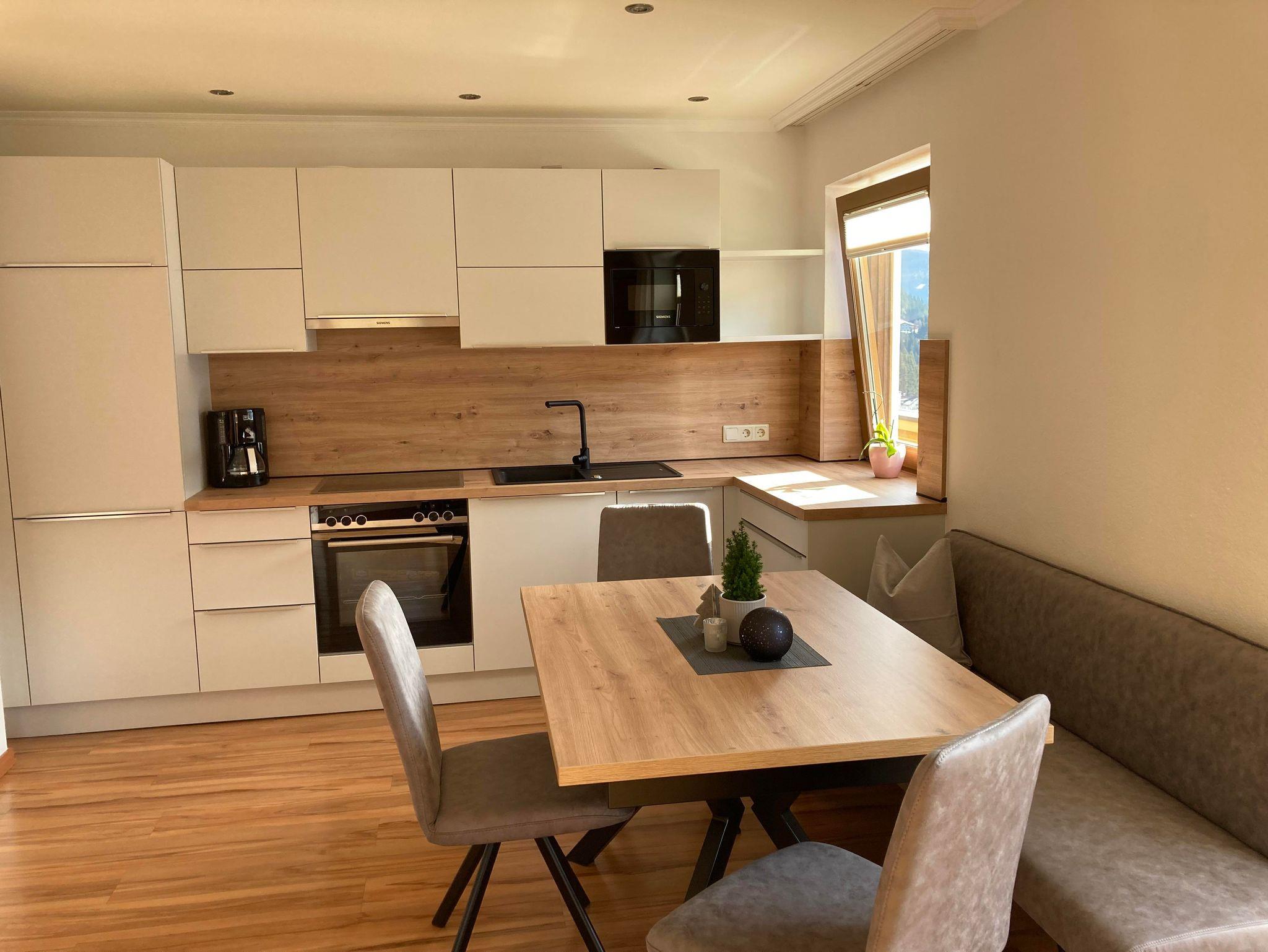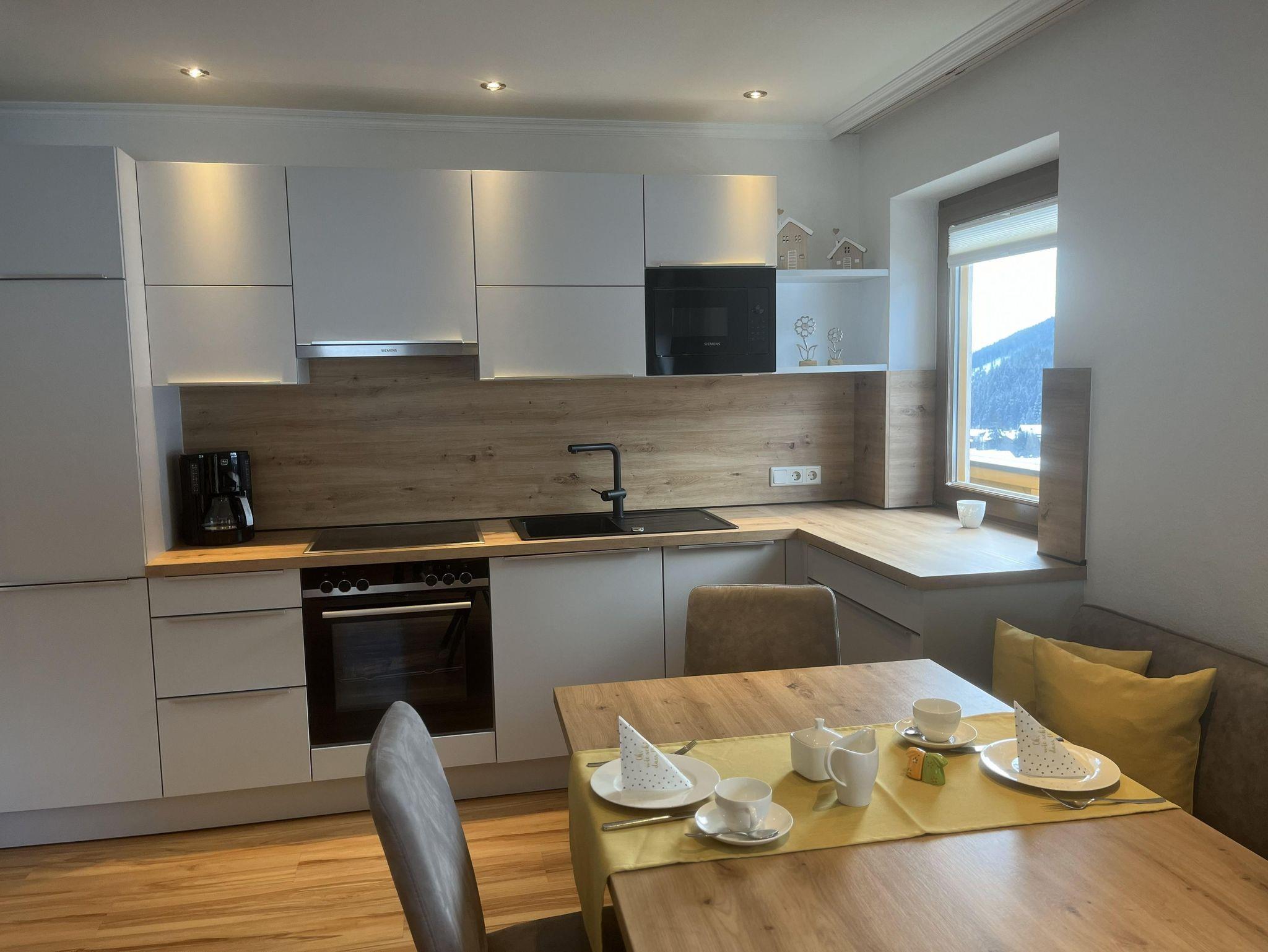 Ferienwohnung DORFBLICK hat eine Größe von ca. 60 m². Sie besteht aus einem Wohnschlafraum mit einem großen Ecksofa , einer netten Küche und einem schönen neuen Schlafzimmern . Das Appartement hat zwei getrennte Bäder, eines mit Badewanne, Dusche und zwei Waschbecken. Vom großen, sonnigen Südbalkon haben Sie einen herrlichen Ausblick - vom Roßbrand bis zu den Schladminger Tauern und natürlich auch auf den Ort Filzmoos.