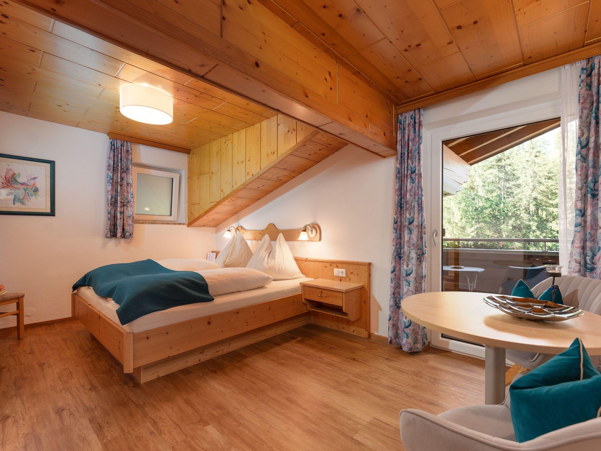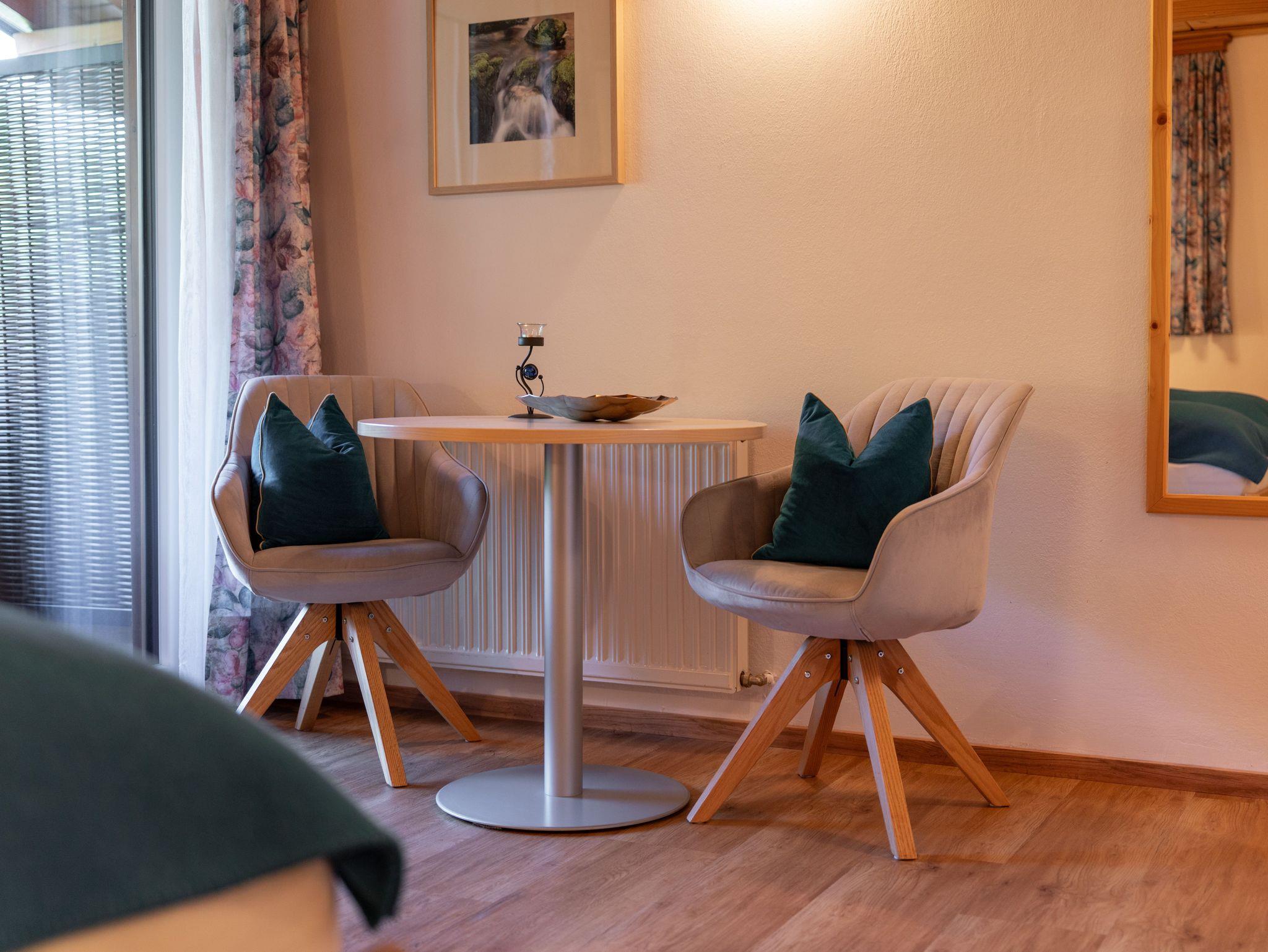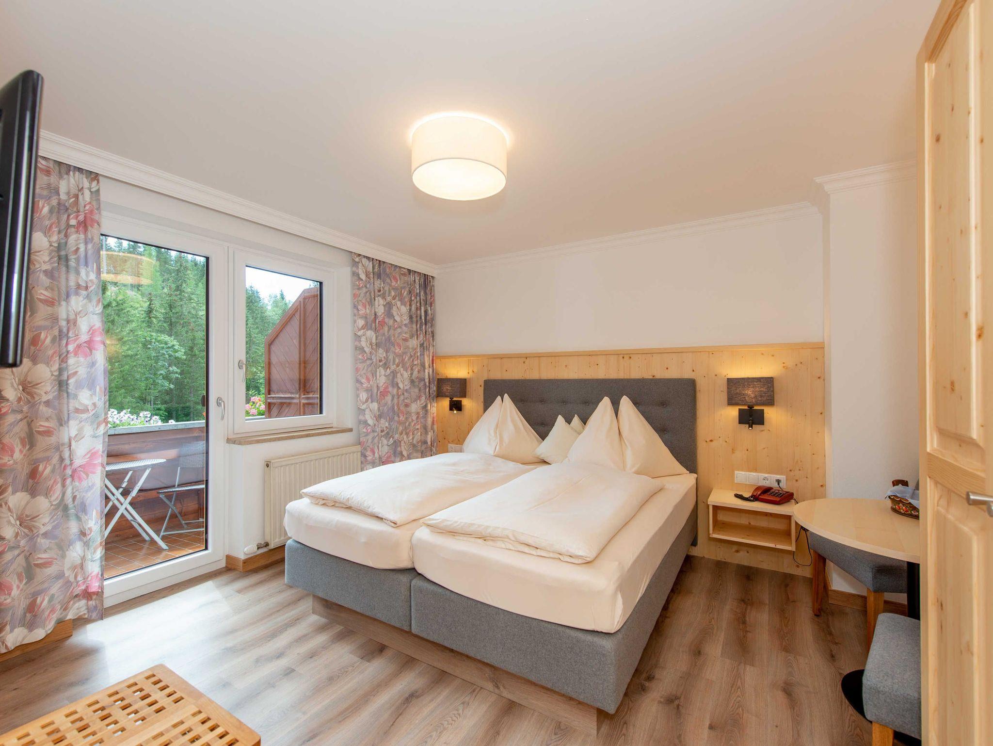 Gemütliches Wohlfühl-Doppelzimmer mit Dusche/WC, Kabel-TV, Telefon, Safe, W-Lan und Balkon (südseitig). Im Preis inkludiert ist das reichhaltige Frühstücksbuffet.