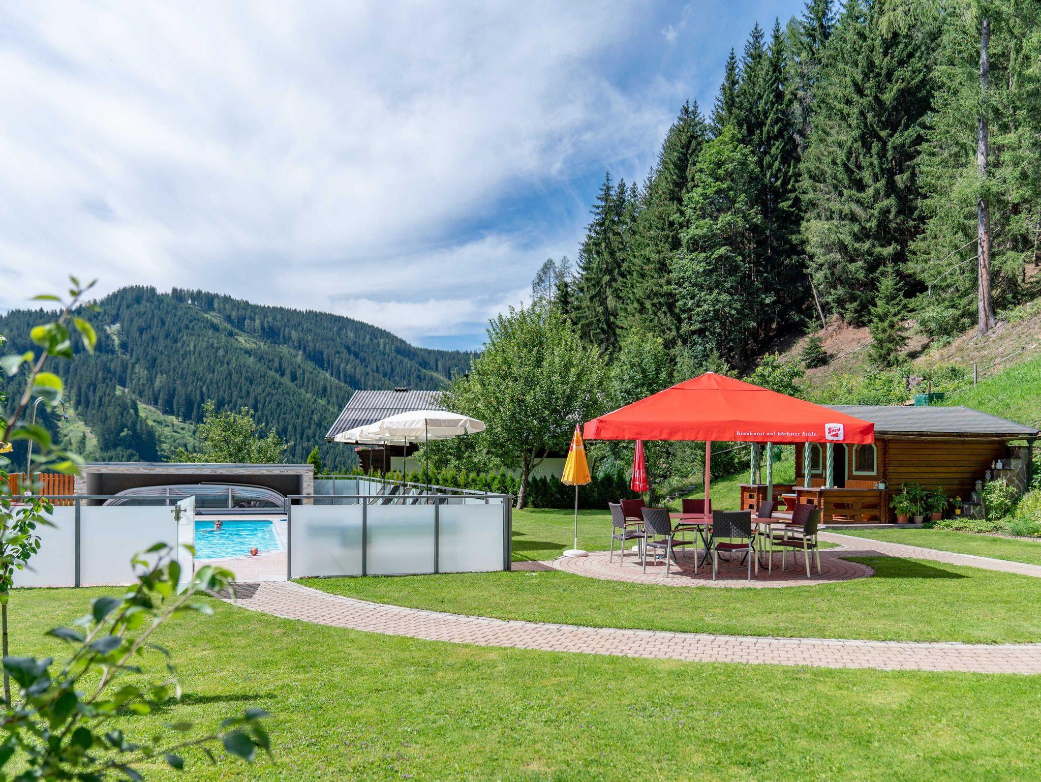 • Eine liebevoll gestaltete Gartenlandschaft mit beheiztem Schwimmbad, Gartenhütten zum Feiern und eine wunderschöne Sonnenterasse zum Entspannen