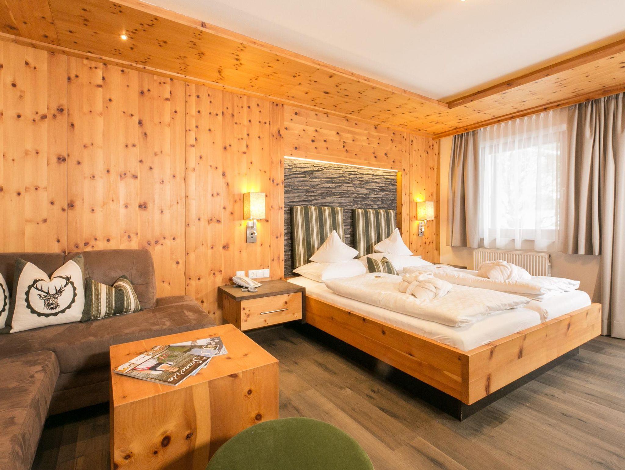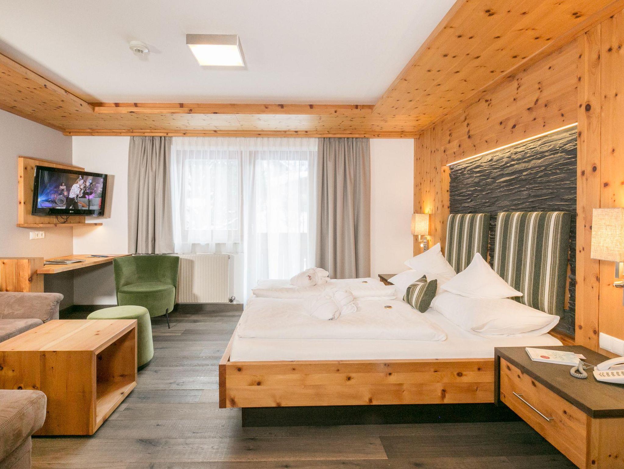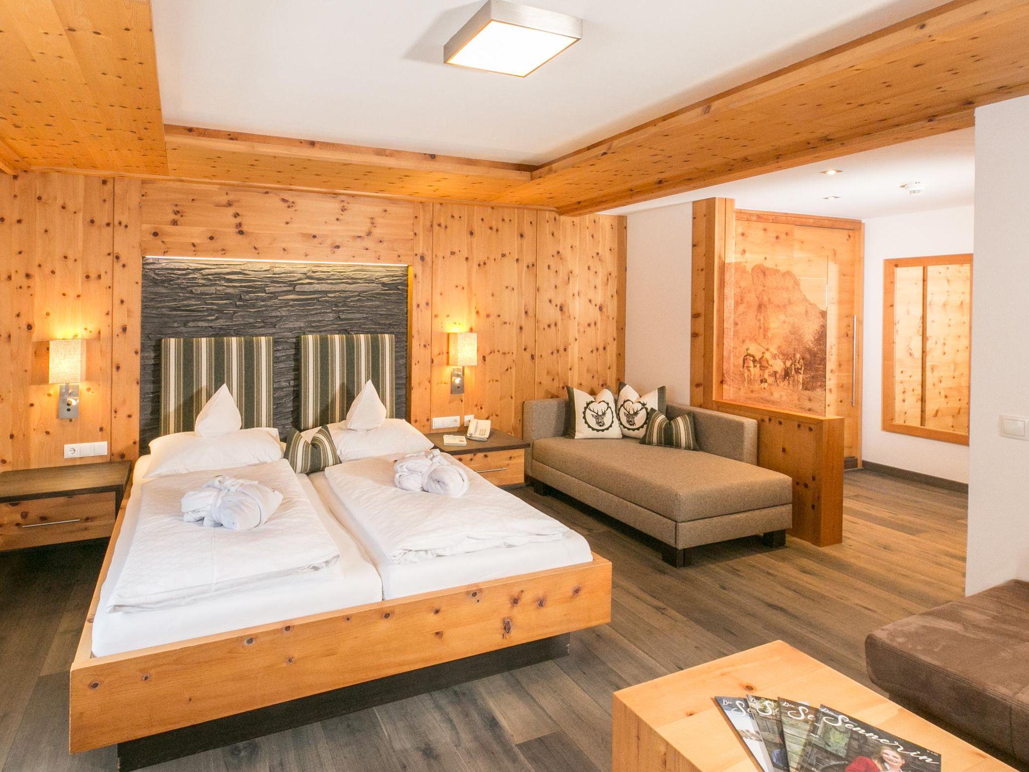 Zimmer Zirbenstein mit Ostbalkon - das Zimmer mit Wohlfühlgarantie. Mit 30m² - auch als 3-Bett bzw. 4-Bett-Zimmer möglich. Neu eingerichtet, sehr gemütlich, mit Flat-TV, Gratis-W-Lan, Dusche und sep. WC. Weitere Infos unter www.alpenhof.com