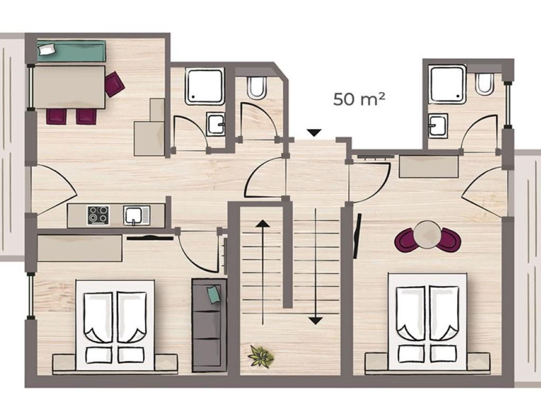 Jedes Zimmer hat sein eigenes Bad. Fön, Handtücher und Bettwäsche sind inkludiert.