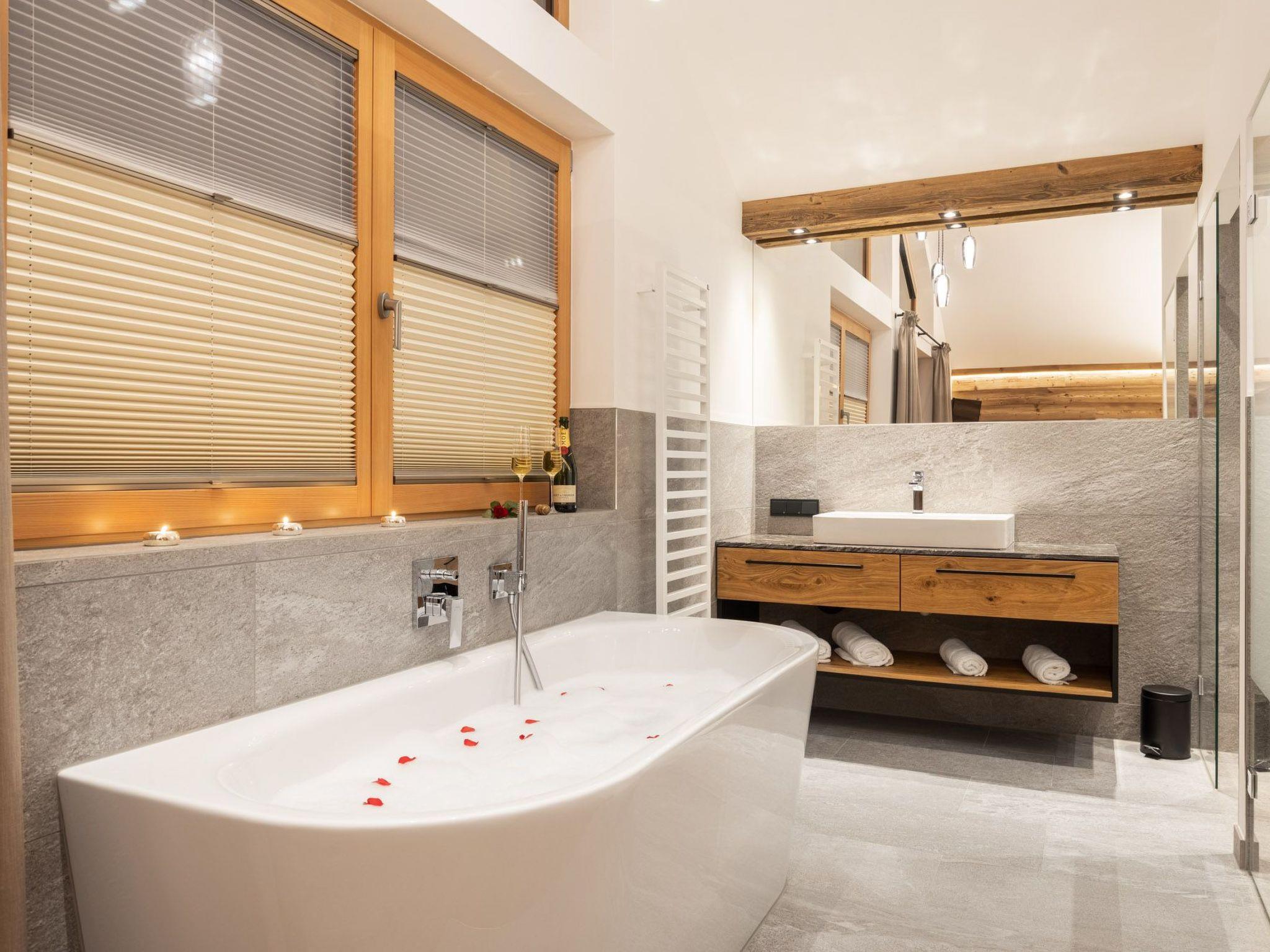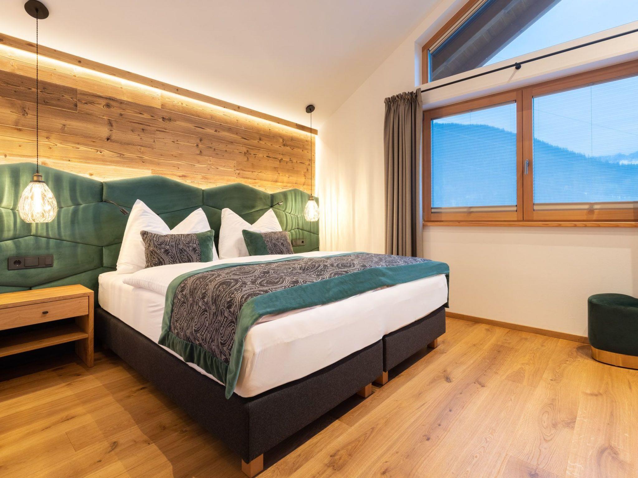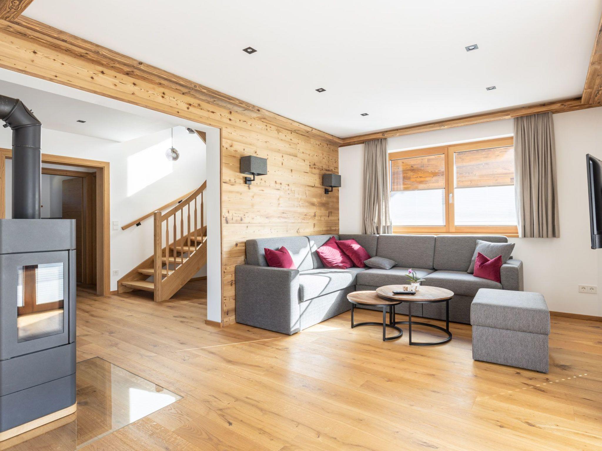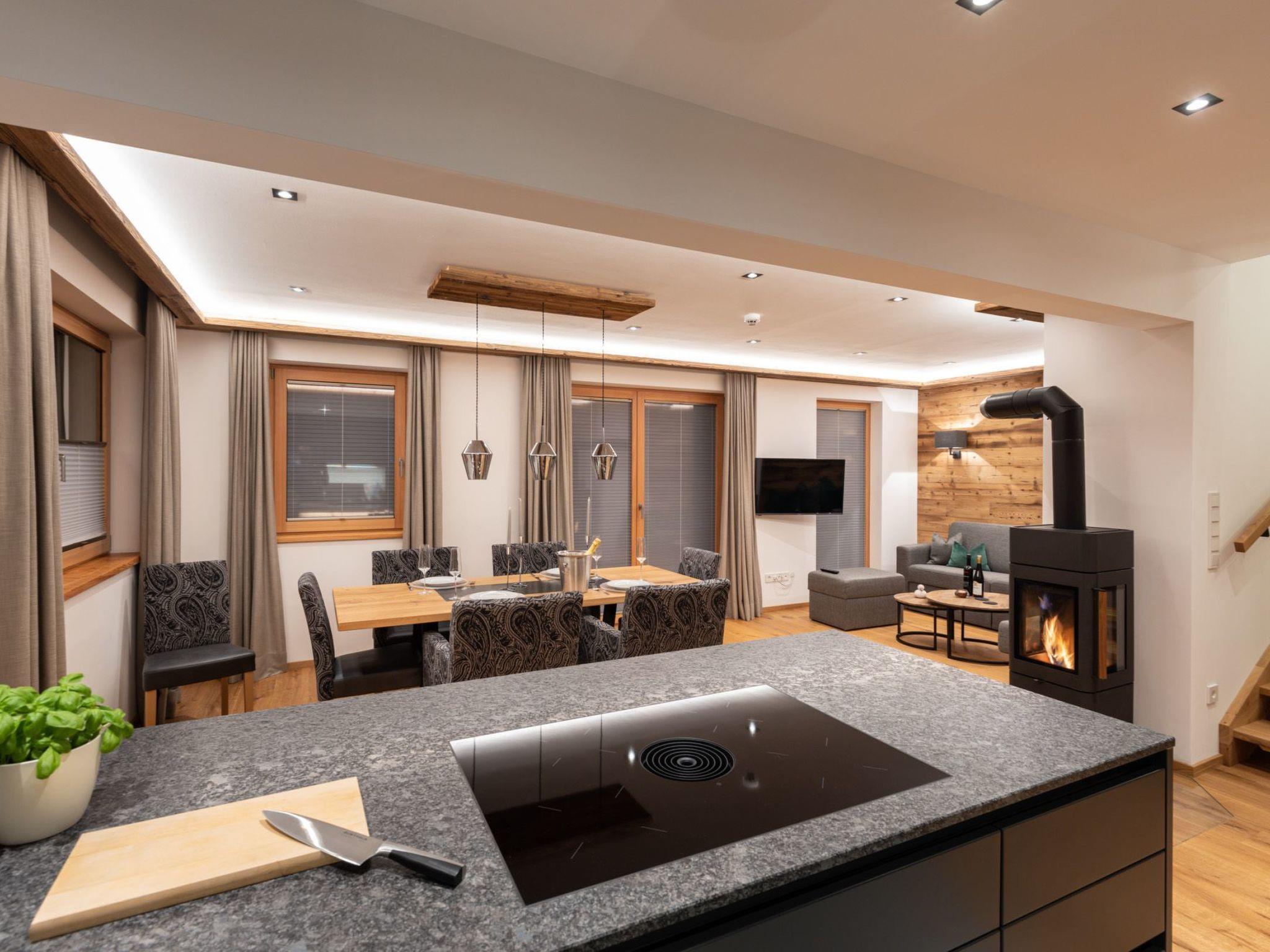 Inside the chalet, you will find a modern interior that leaves nothing to be desired. Three stylish bedrooms, some with en-suite bathrooms, offer sufficient privacy for up to six people. An open-plan living and dining area, enhanced by an inviting fireplace, creates the perfect atmosphere for cosy evenings. The modern designer kitchen, equipped with a ceramic hob, induction hob, coffee machine and dishwasher, invites you to cook and linger together. A floor-heated laundry room with shared washing machine and tumble dryer completes the offer.