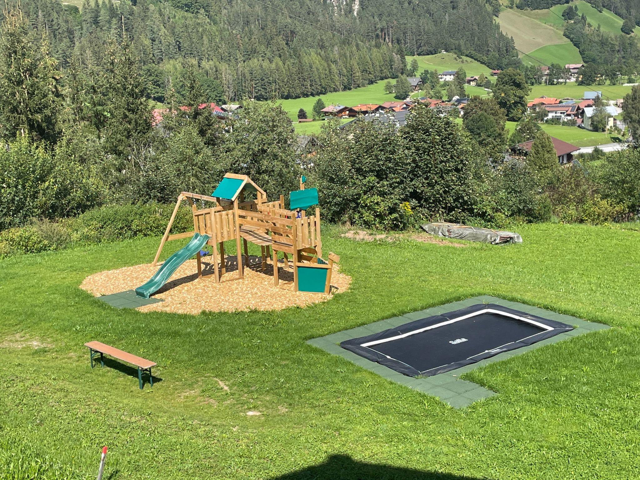 The outdoor area also leaves nothing to be desired. A private wellness area with sauna and breathtaking panoramic views of the Dachstein offers pure relaxation. A ski room with boot dryer and a lockable bicycle garage provide storage for your sports equipment. Two covered carport parking spaces and a charging station for electric cars complete the outdoor facilities. The large garden with terrace, balcony and private playground invites you to spend relaxing hours in the open air.