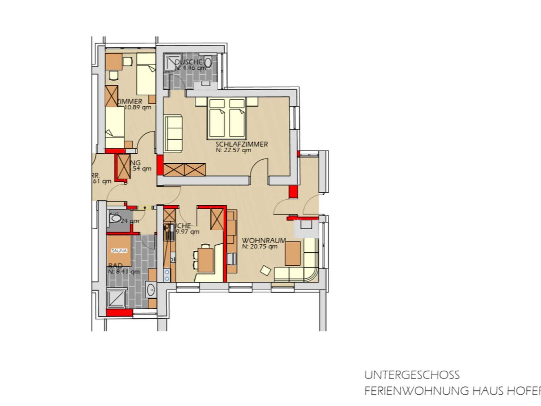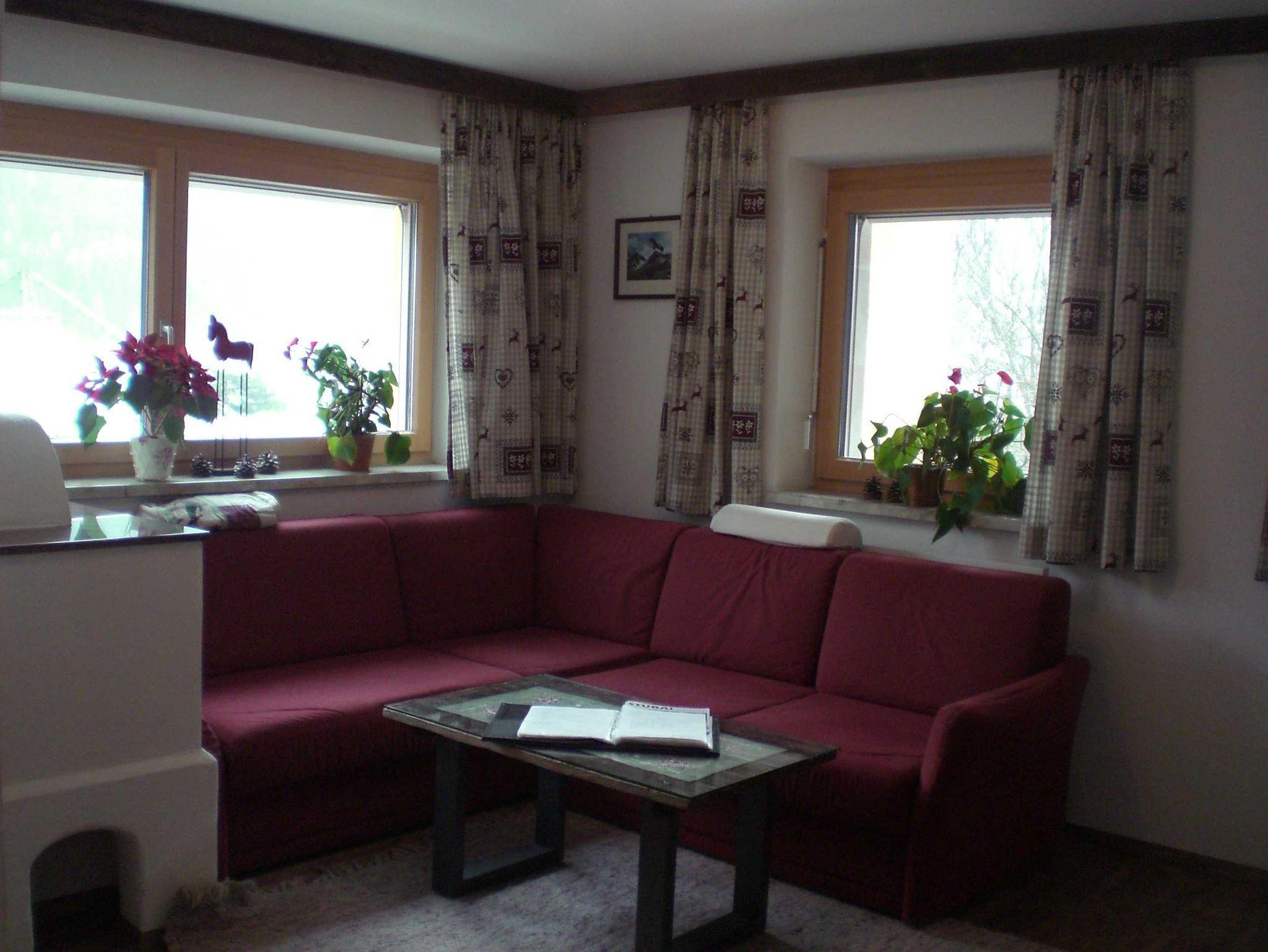 Vorraum, 2 Schlafzimmer mit TV mit SAT-Anschluss, Radio, Tresor, Bügeleisen, Bügelbrett, Küche (eigener Raum) mit gemütlicher Sitzecke, Kühlschrank, Gefrierfach, Kaffeemaschine, Nespressomaschine, Wasserkocher, Mixer, Toaster, Eierkocher, E-Herd und Backrohr. W-Lan, Wohnzimmer mit Kachelofen (eigener Raum),
