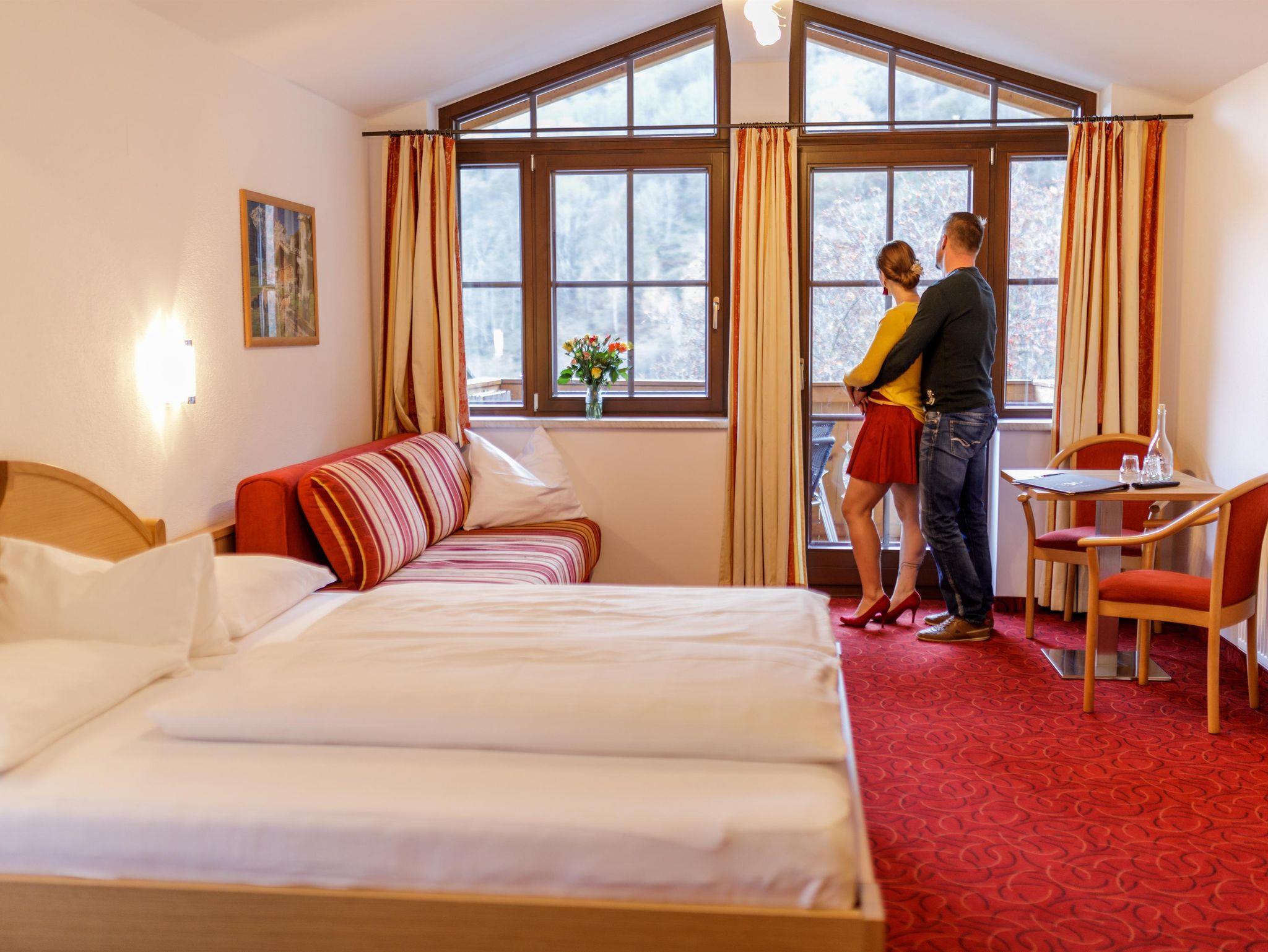 Schönes Doppelzimmer mit 2 möglichen Zustellbetten oder einer Ausziehcouch.