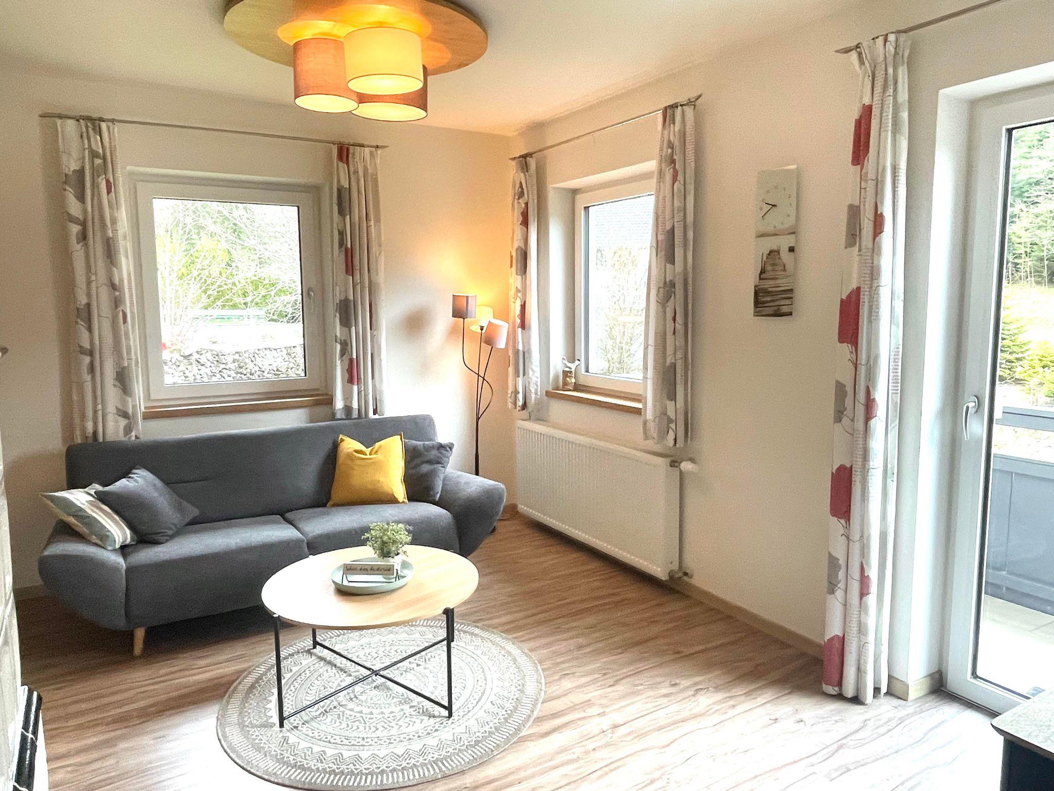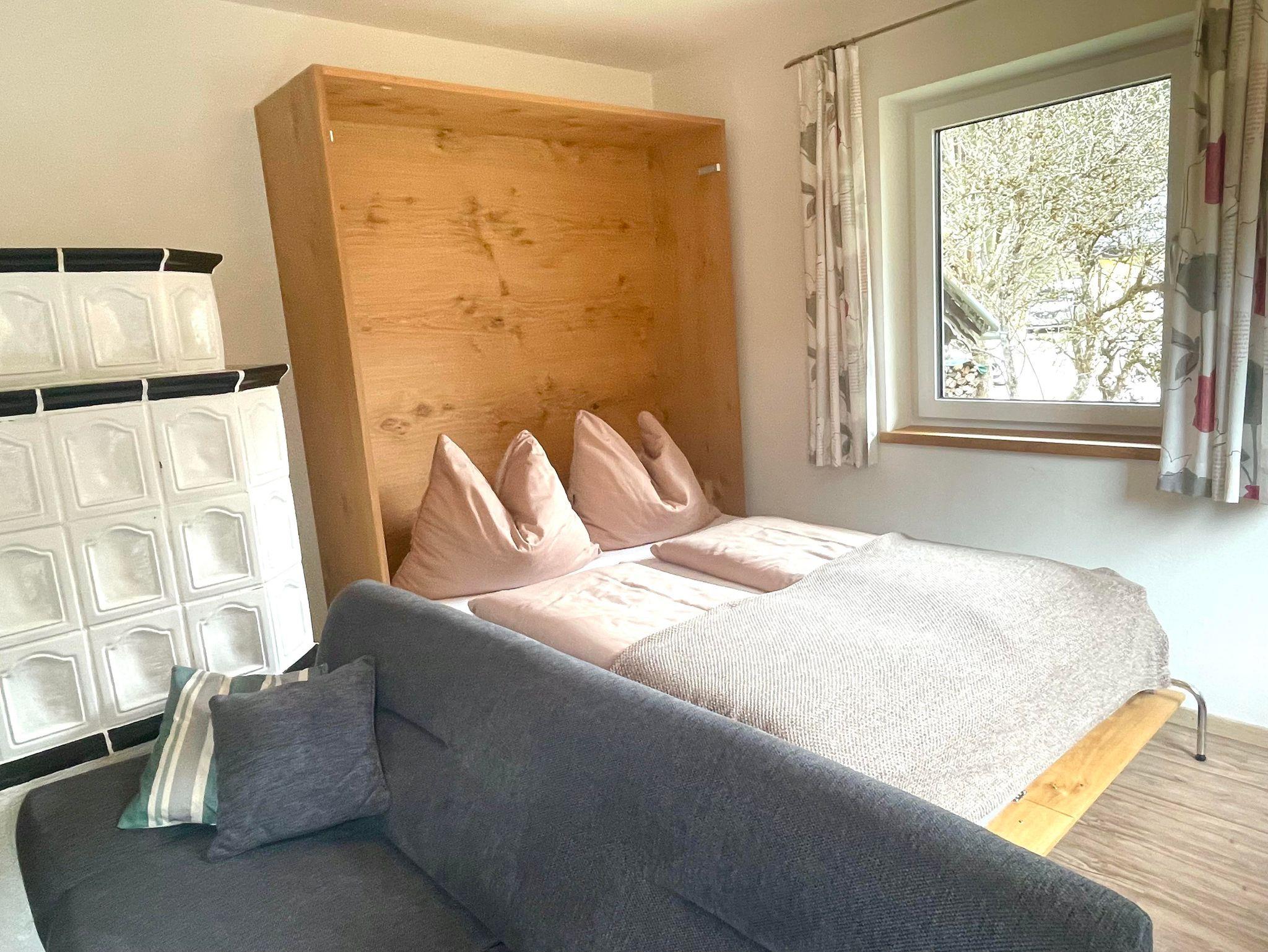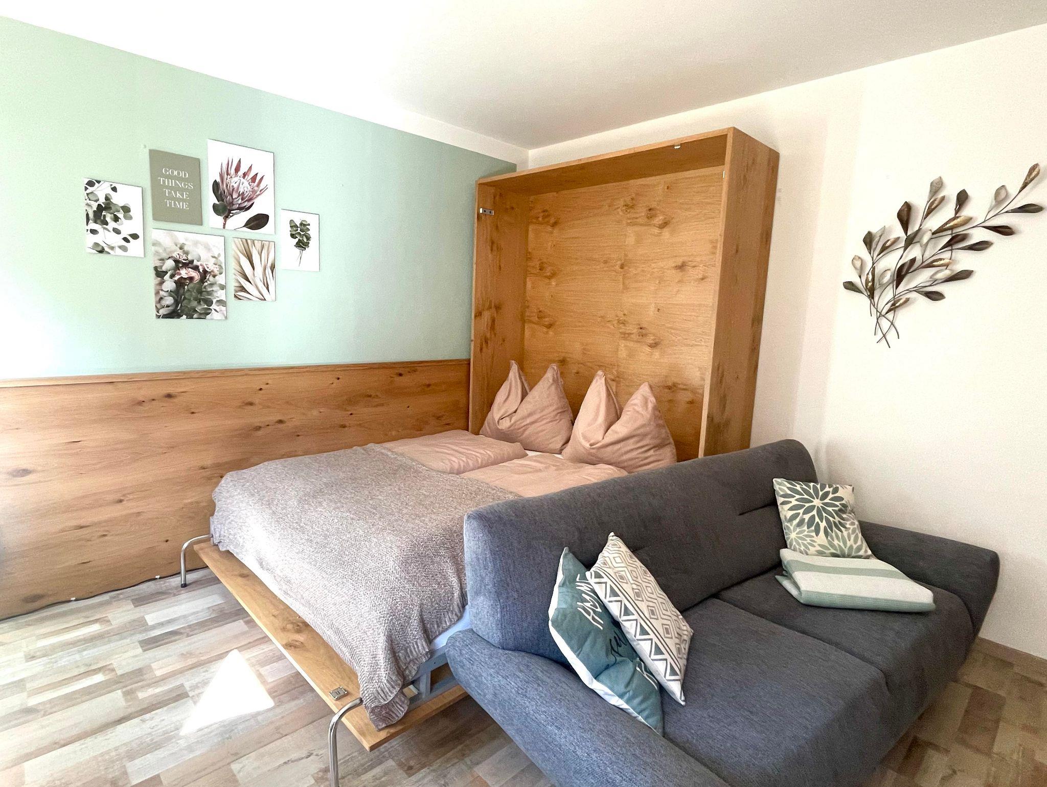 Eine weitere Schlafmöglichkeit bietet ein großes Klappbett im Wohnzimmer.