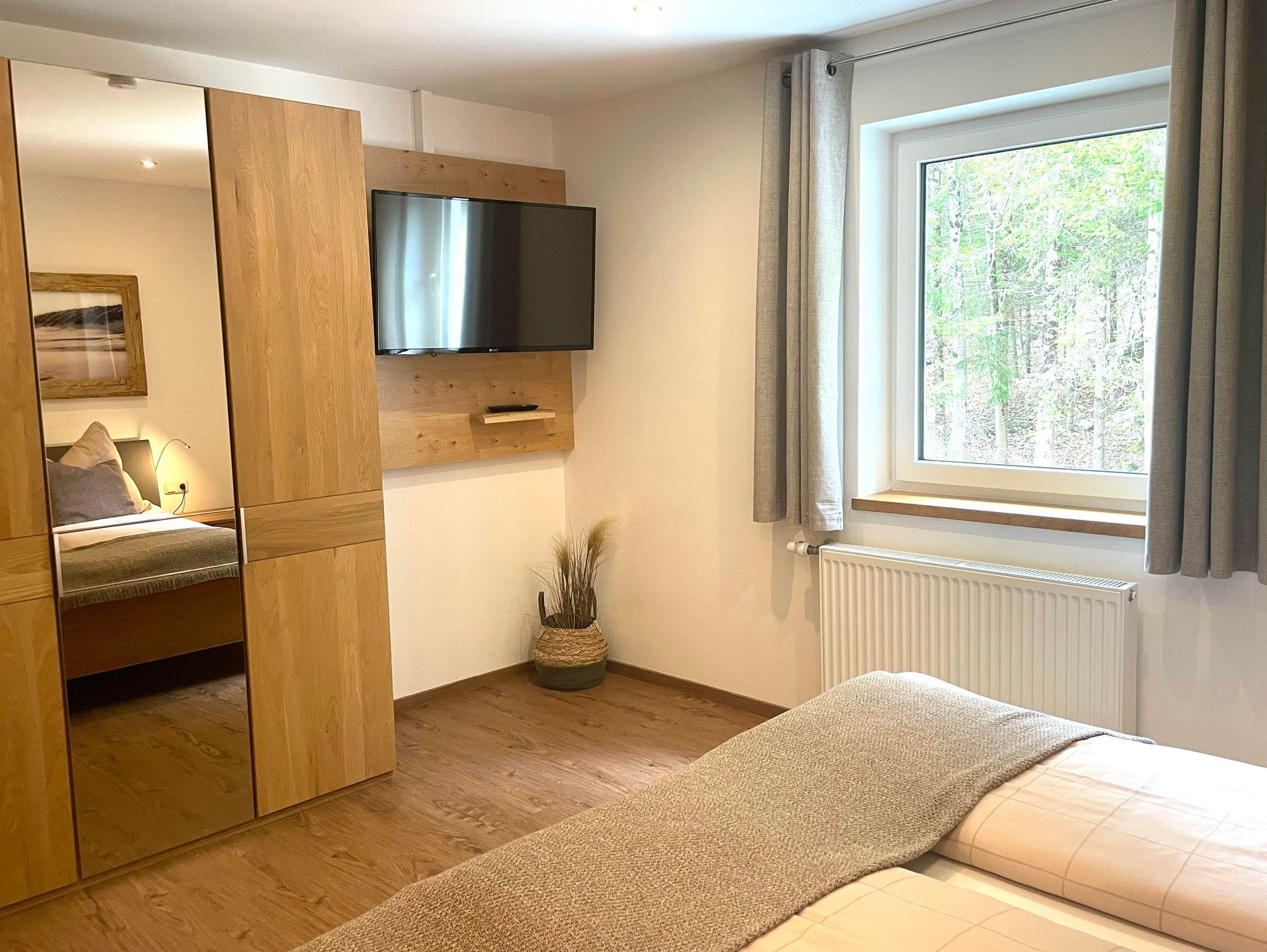 Das Schlafzimmer dieser Wohnung ist Richtung Wald ausgerichtet.