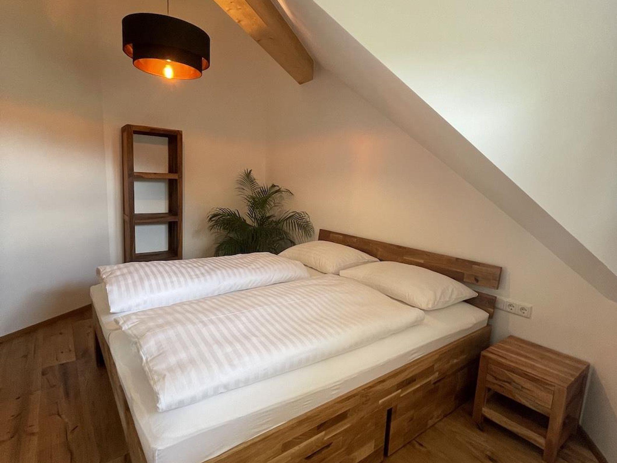 Die frühere Tenne, die an das anliegende Familienhaus anschließt, wurde abgerissen und komplett neu aufgebaut. Diesen Anbau schmückt ein riesengroßer Garten mit frischen Kräutern, Gemüse und vielen Blumen, die zum Verweilen einladen.