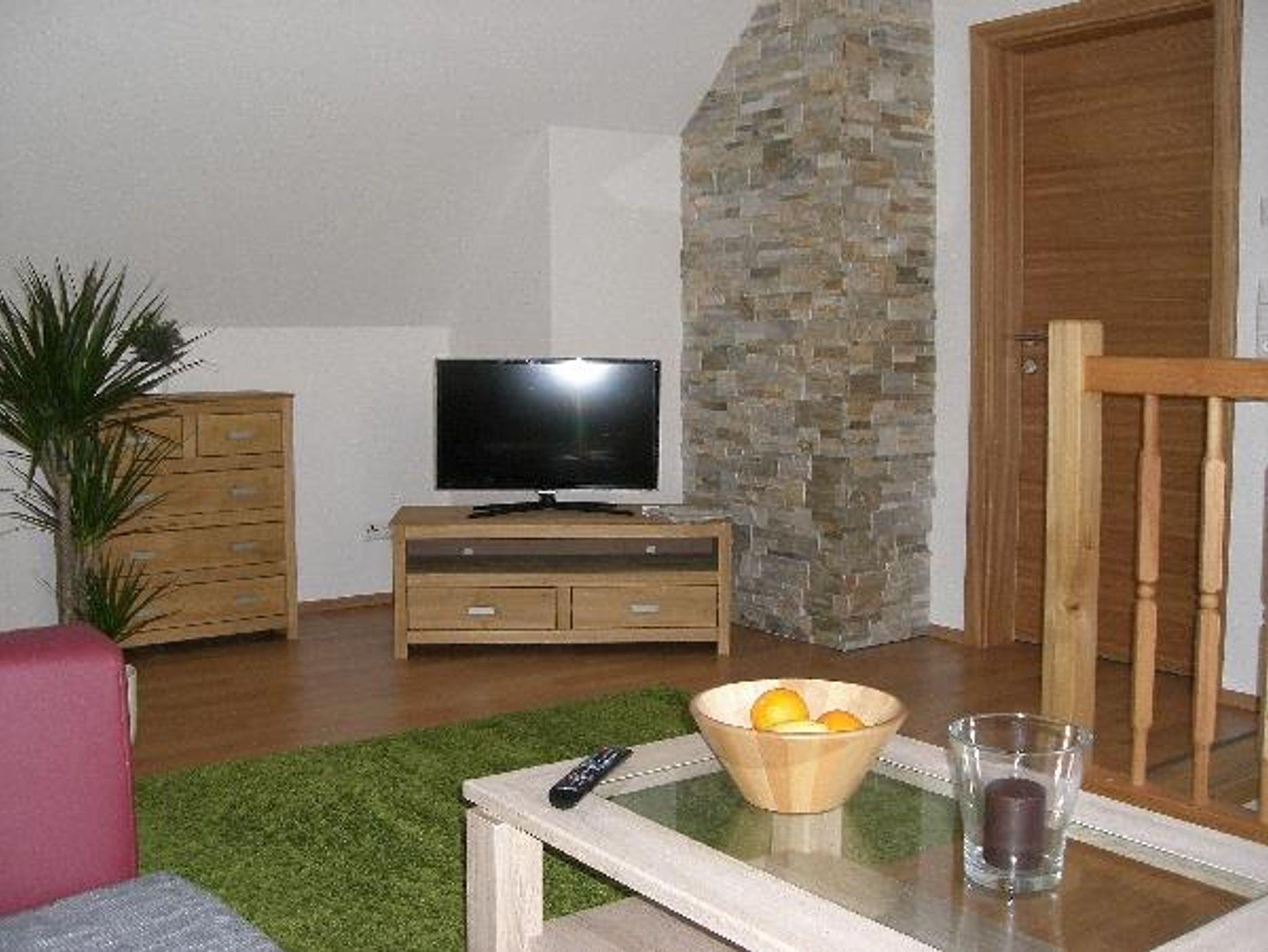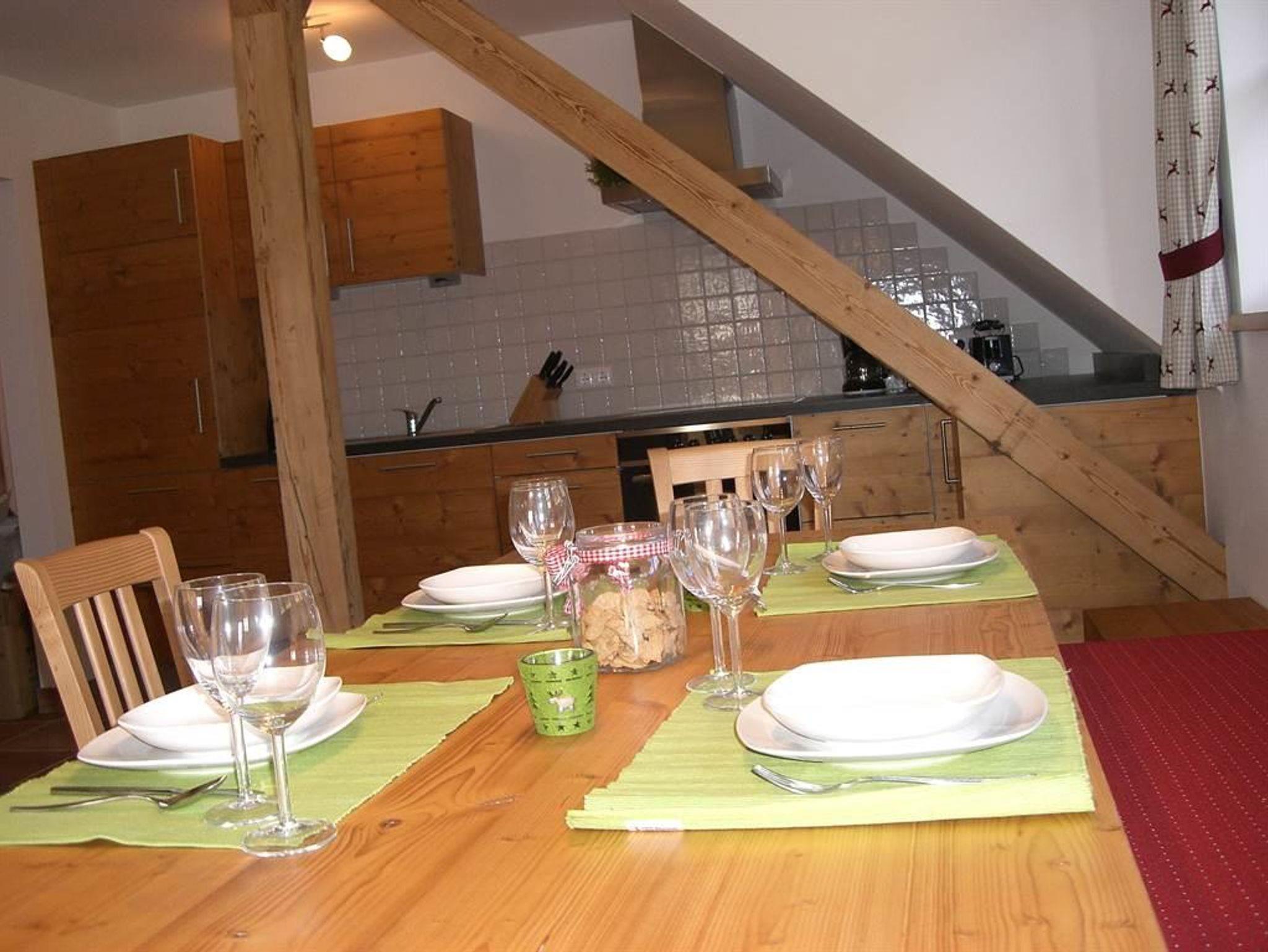 Das Apartement mit Garderobe und Balkon über 2 Etagen verfügt über 2 Schlafzimmer, eines mit Dusche das Andere mit Badewanne und Dusche, WC separat. Eine komplett ausgestattet Küche mit großem Esstisch, das Wohnzimmer mit Couch und SatelitenTV ist über eine Stiege mit den anderen Räumlichkeiten offen verbunden. Die Gäste schätzen und mögen das geräumig sowie sehr gemütlich eingerichtete Appartement und genießen die Zeit des Urlaubs.
