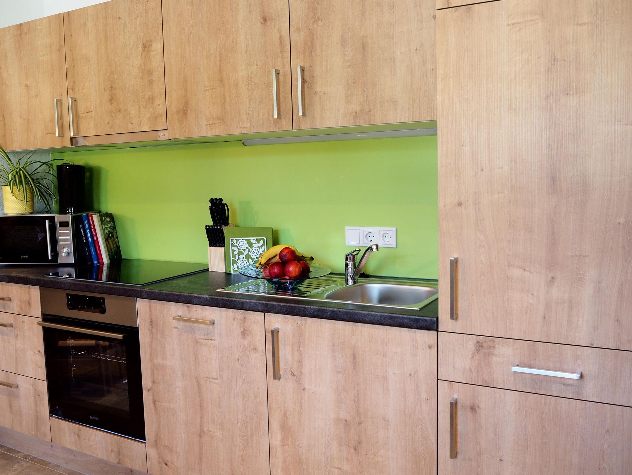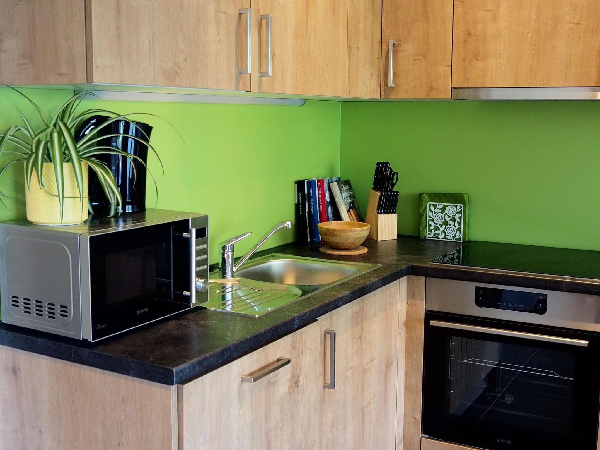 Das Hirsch- Appartement 2 - ca. 80m² mit Terrasse ca. 20m² verfügt über einen Vorraum mit Garderobe, einen Wohnraum mit Essbereich und reichlich ausgestatteter Küche, sowie Geschirrspüler, E-Herd, Mikrowelle, Wasserkocher, Nespresso-Cafemaschine mit Kapseln. Zwei Doppelzimmer inkl. Bettwäsche und Handtücher und ein gemeinsames Bad (Fön) mit Dusche, WC extra.