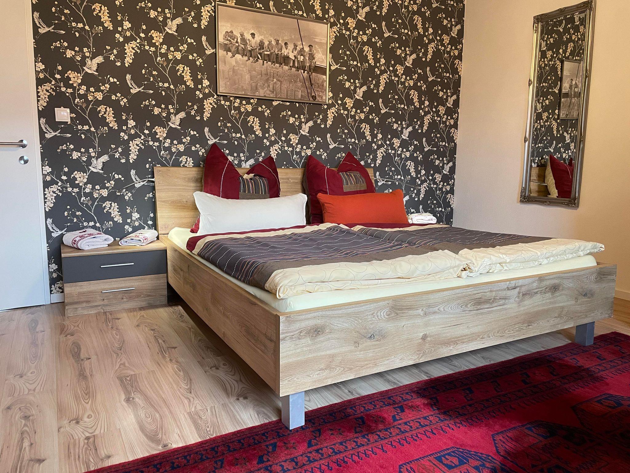 Appartement Wellington: es ist das unterste Appartement und verfügt über einen separaten Eingang. Es bietet zwei Schlafzimmer, ein Duschbad, einen Wohnraum mit Esstisch, Küchenzeile, Sofa, Fernseher und einen Holzofen. Die Küchenzeile ist voll ausgestattet mit Kühl-Gefrierkombination, Backofen, Toaster, Wasserkocher, Mikrowelle, Kaffeemaschine und Geschirrspüler. Durch den Wohnraum gelangt man in das zweite Schlafzimmer (zwei Einzelbetten) und von dort auf die Terrasse. Das Appartement ist zusätzlich zum separaten Eingang stufenlos durch den Ski- und Fahrradkeller zu erreichen. Es ist jedoch nicht behindertengerecht (steile Straße). Das gesamte Appartement ist mit Laminat/Fliesen ausgestattet.