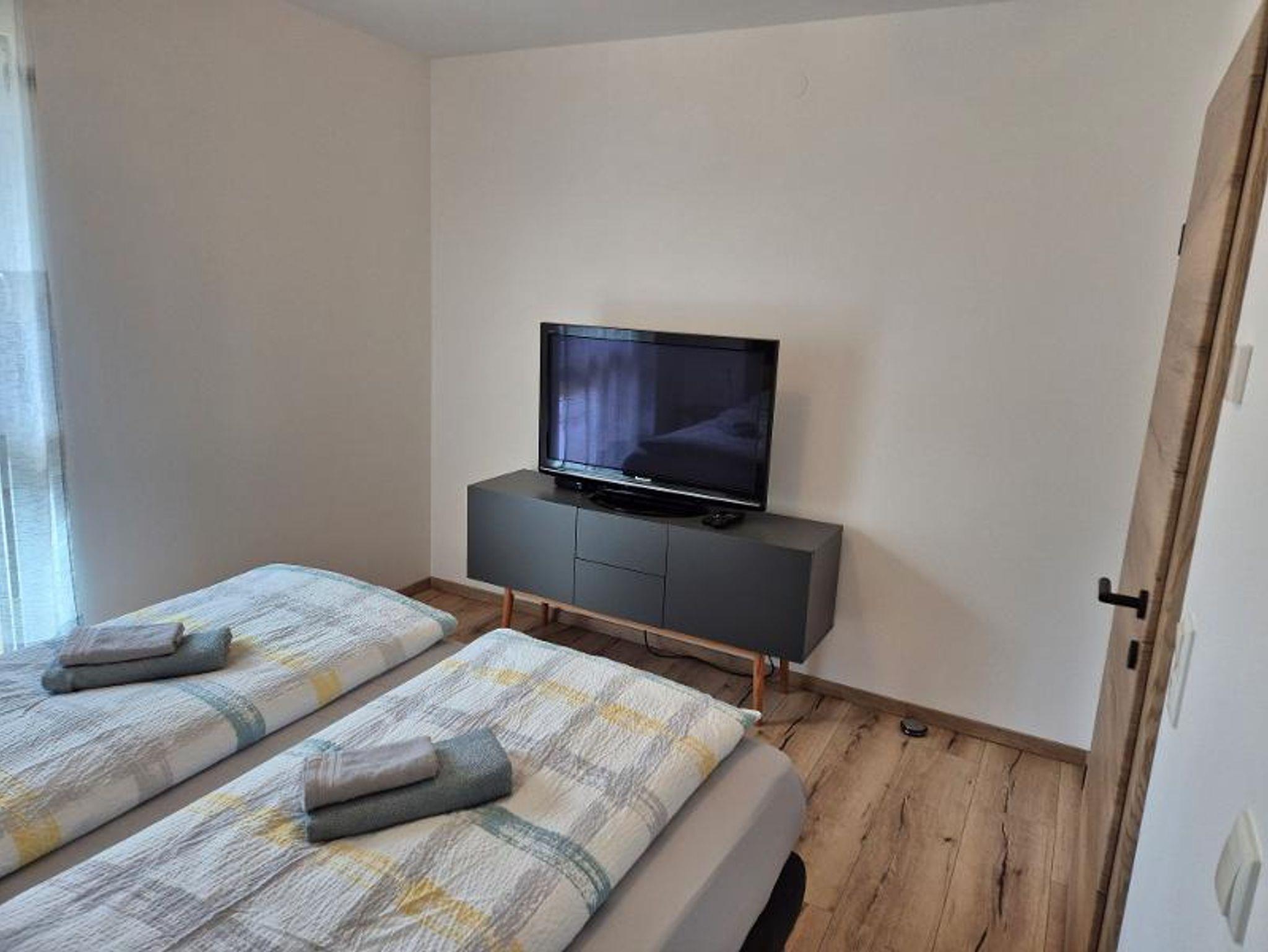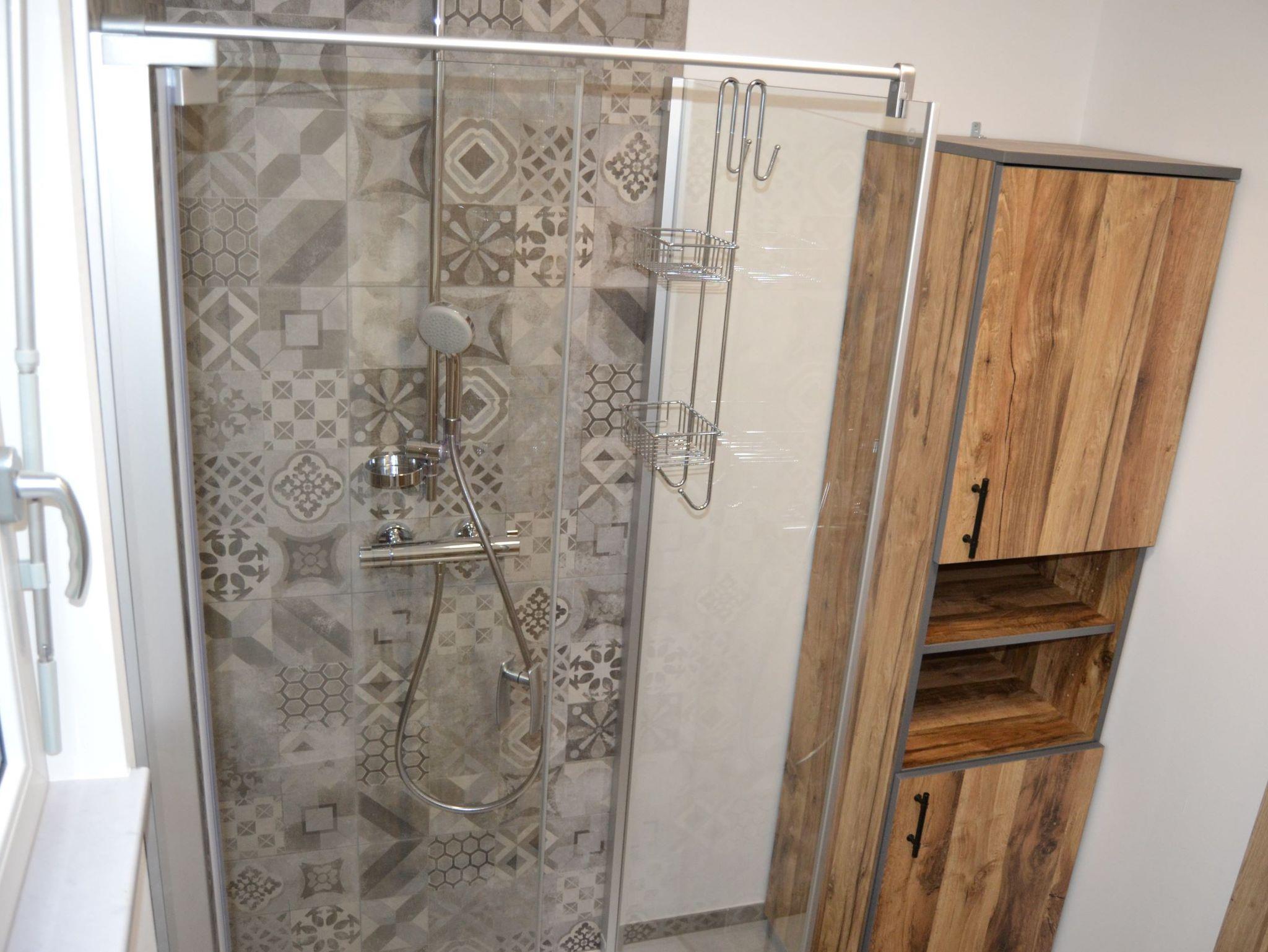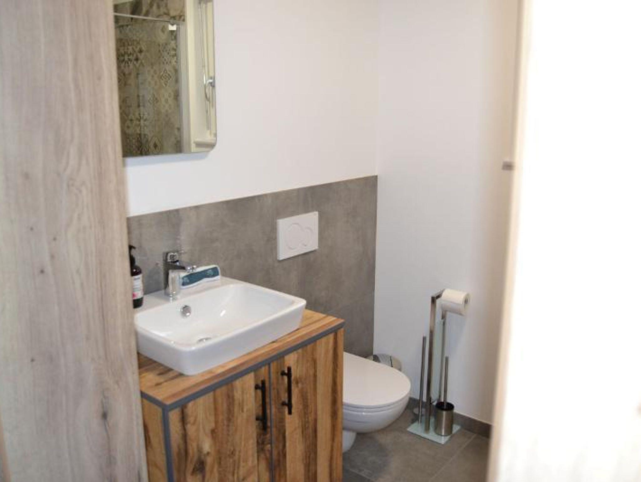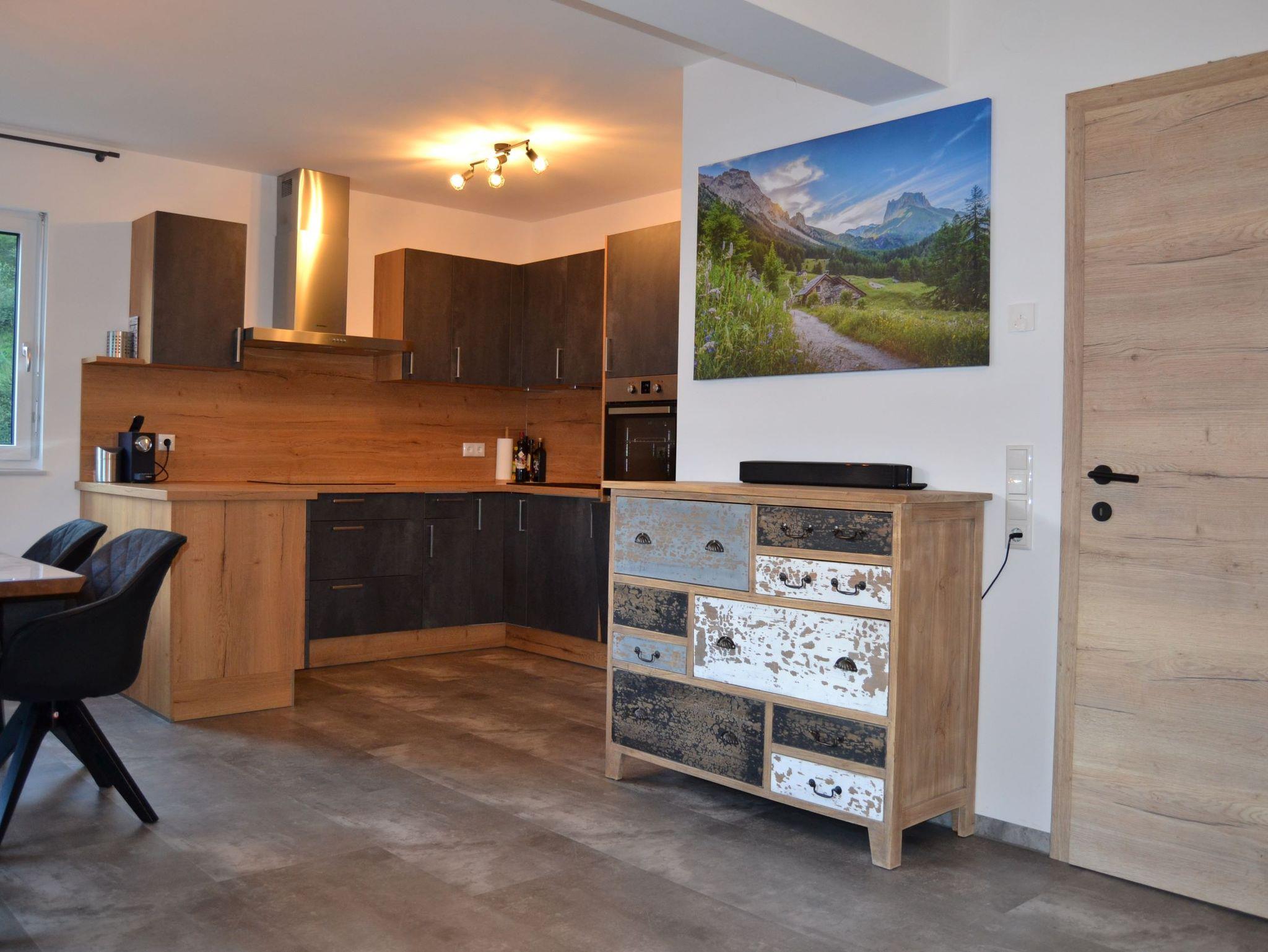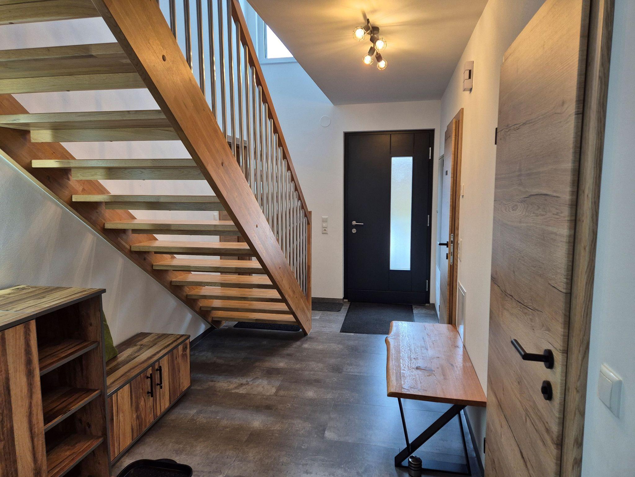 Im Erdgeschoss befindet sich ein geräumiges Vorzimmer mit genügend Stauraum für Jacken und Schuhe, ein kleines Badezimmer mit WC und Dusche, sowie ein Wohn-/Essbereich mit ausziehbarer Schlafcouch, Flachbild-Sat-TV, Bluetooth Soundbar und eine voll ausgestattete Küche.