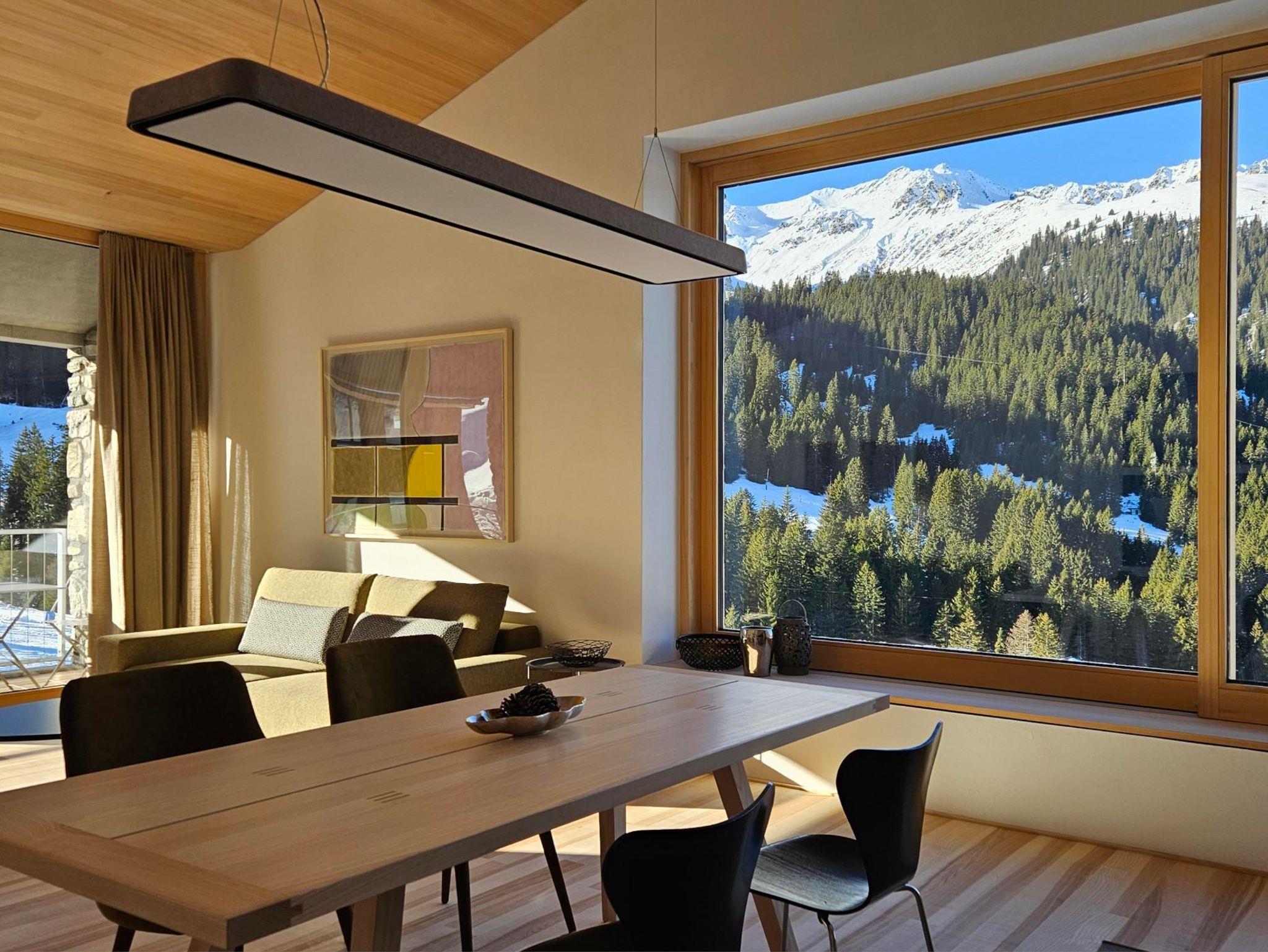Das Apartment mit außergewöhnlichen räumlichen Qualitäten sowie qualitativ hochwertigen Materialien und Möbeln eignet sich für 2 Erwachsene. Für eine weitere Person ab 10 Jahren kann das Sofa im Wohnraum als Bett genutzt werden. Beinhaltet sind 1 Schlafzimmer, ein offener Wohnraum mit Küche, Badezimmer mit Dusche und WC sowie eine südseitige Loggia. Panoramablick in die Berge und das Skigebiet.