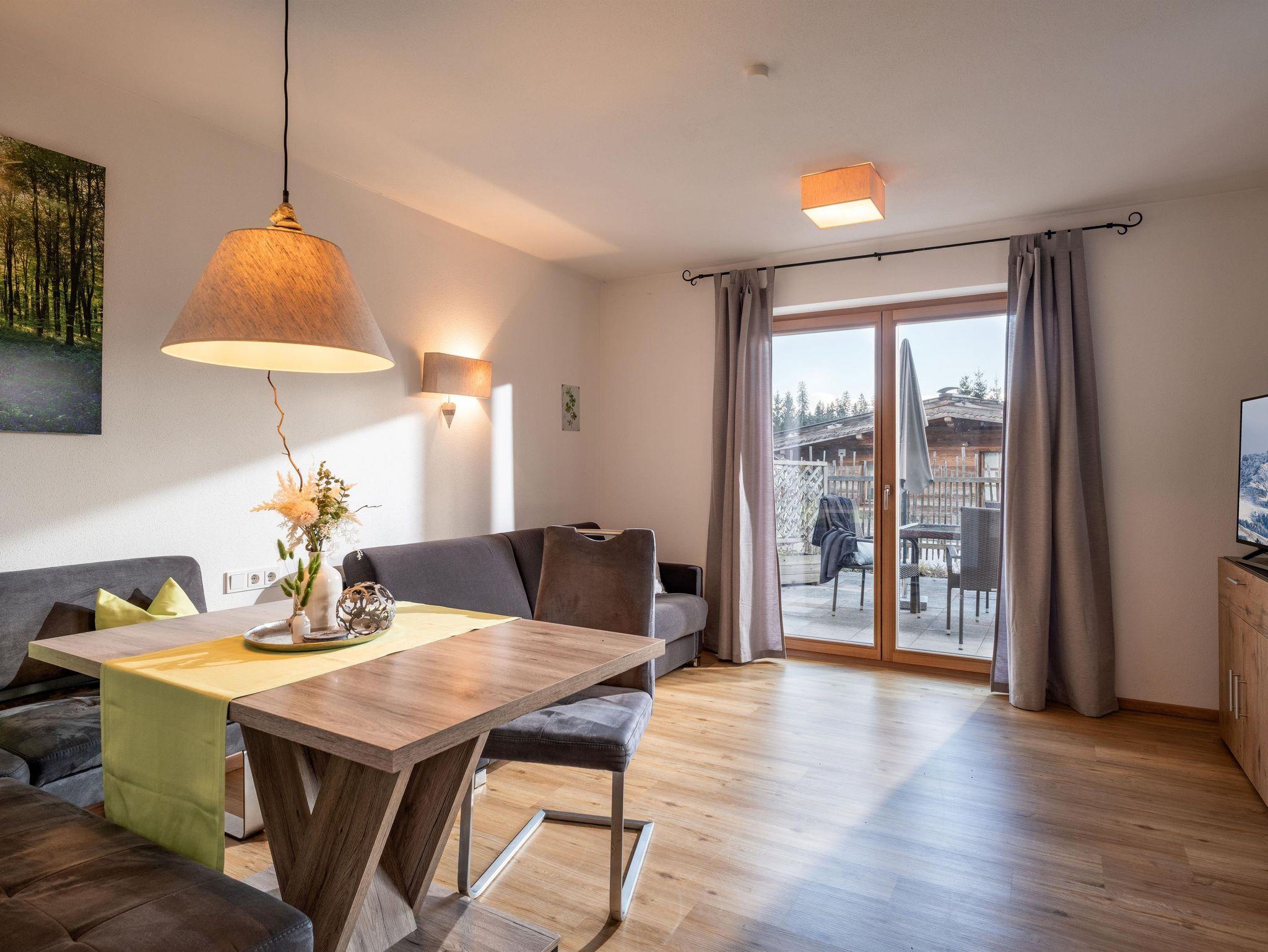 Unser Appartement Susi ist hochwertig, stilvoll eingerichtet und bietet Platz für bis zu 4 Personen. Von der Appartement eigenen Terrasse hat man einen atemberaubenden Blick auf das Kitzbüheler Horn und die umliegende Bergwelt.