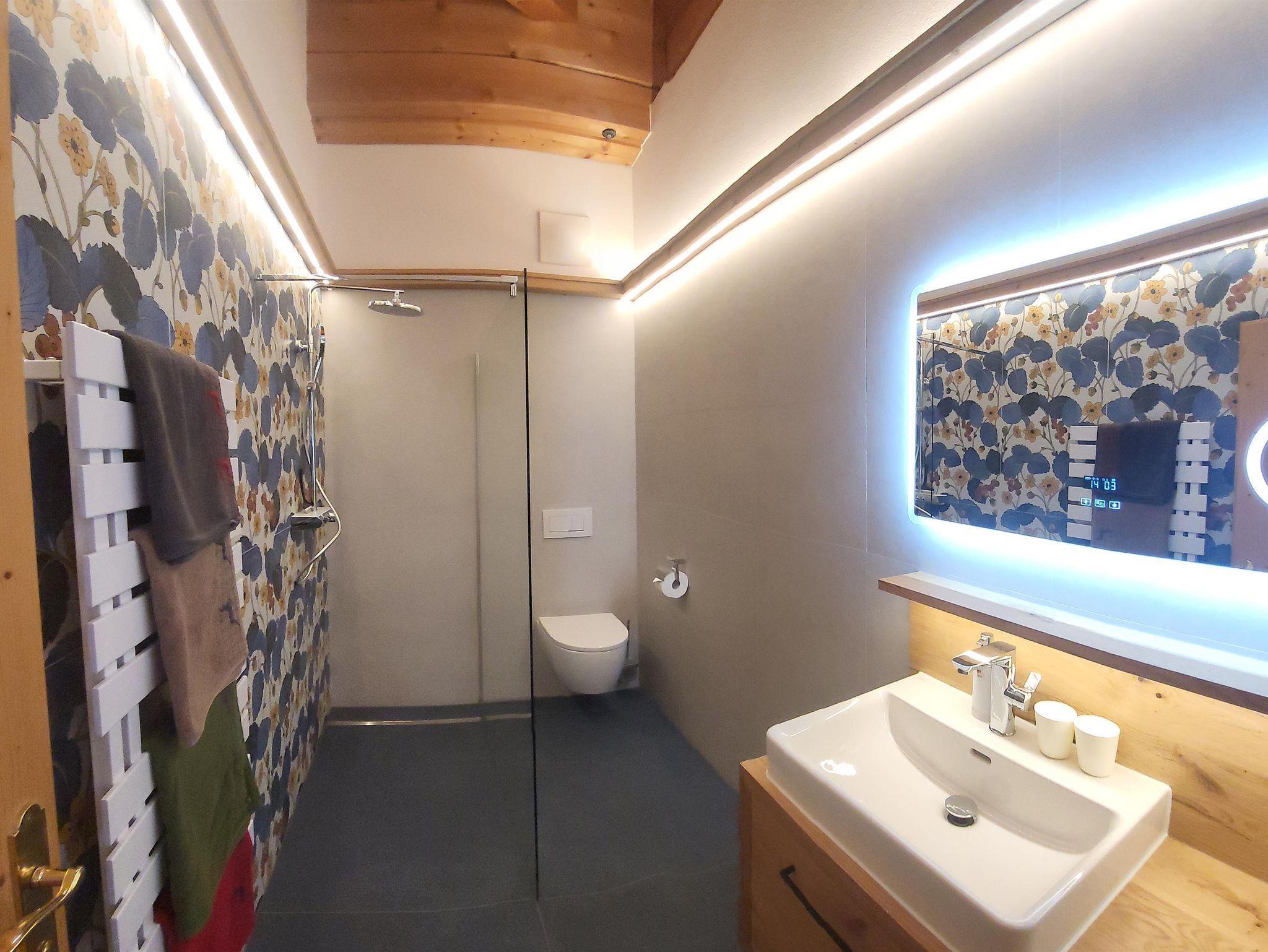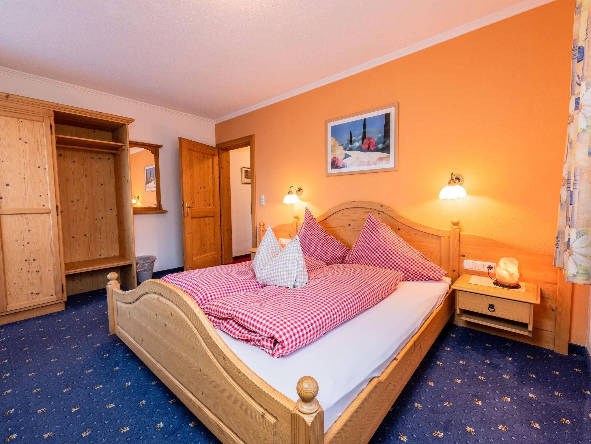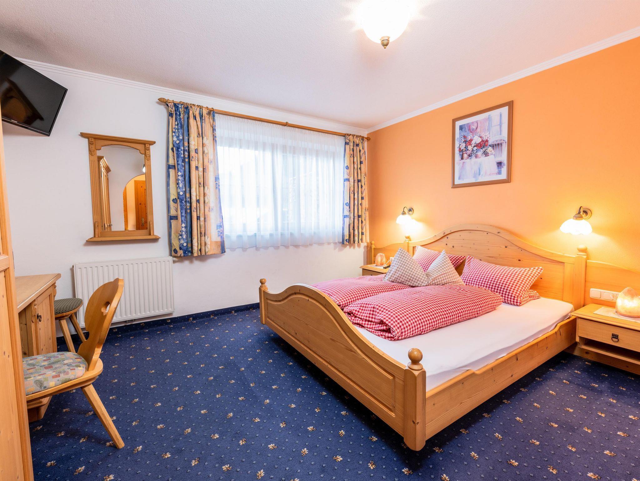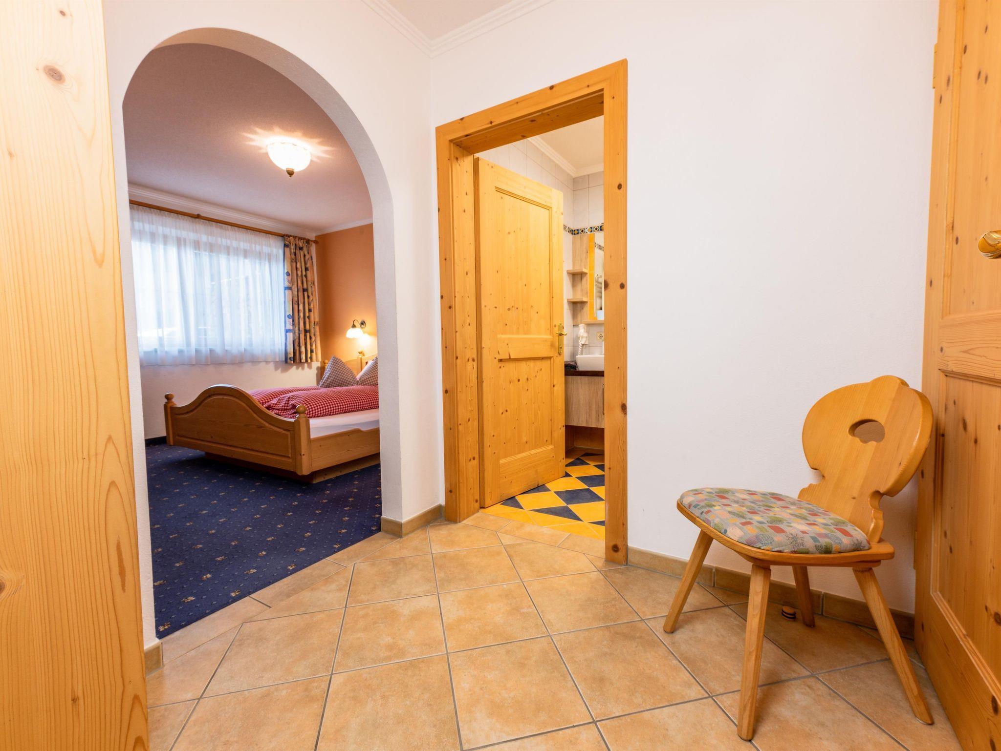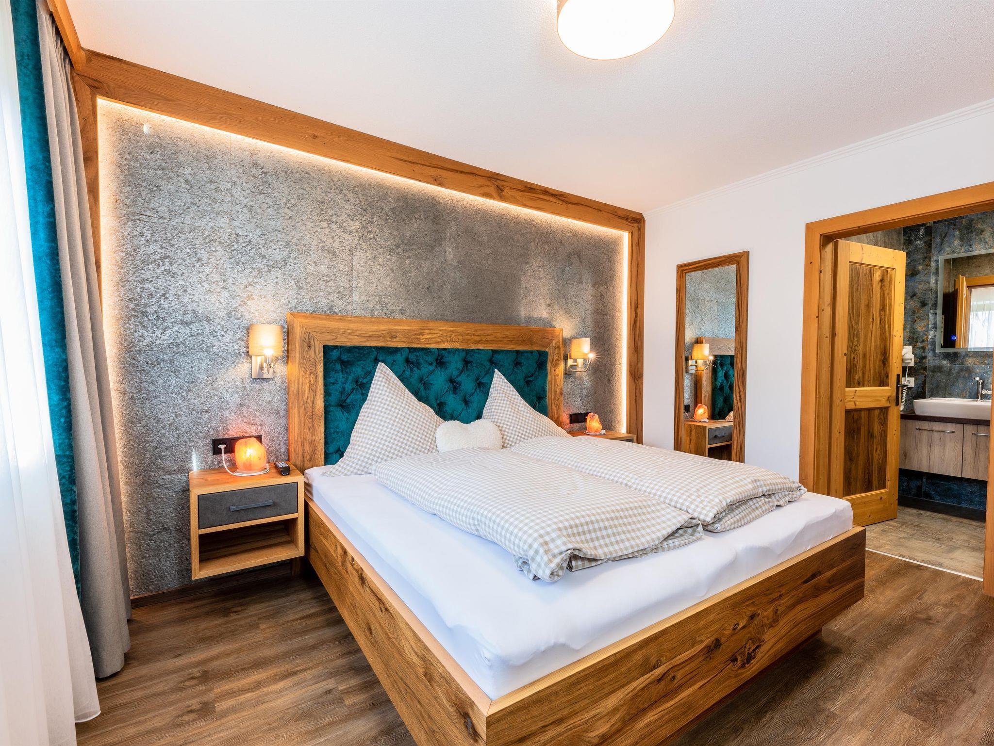 Das Appartement 1 liegt im Erdgeschoss. Es verfügt über eine eigene Terrasse mit Blick Richtung Westen auf den Dorfplatz und nach Norden zum Wilden Kaiser. Im Schlafzimmer befinden sich ein Doppelbett, Schreibtisch, Fernseher sowie ein Kachelofen zur Verfügung. Durch einen Rundbogen gelangen Sie in die großräumige Küche. Die Terrasse ist über die Küche zugänglich.