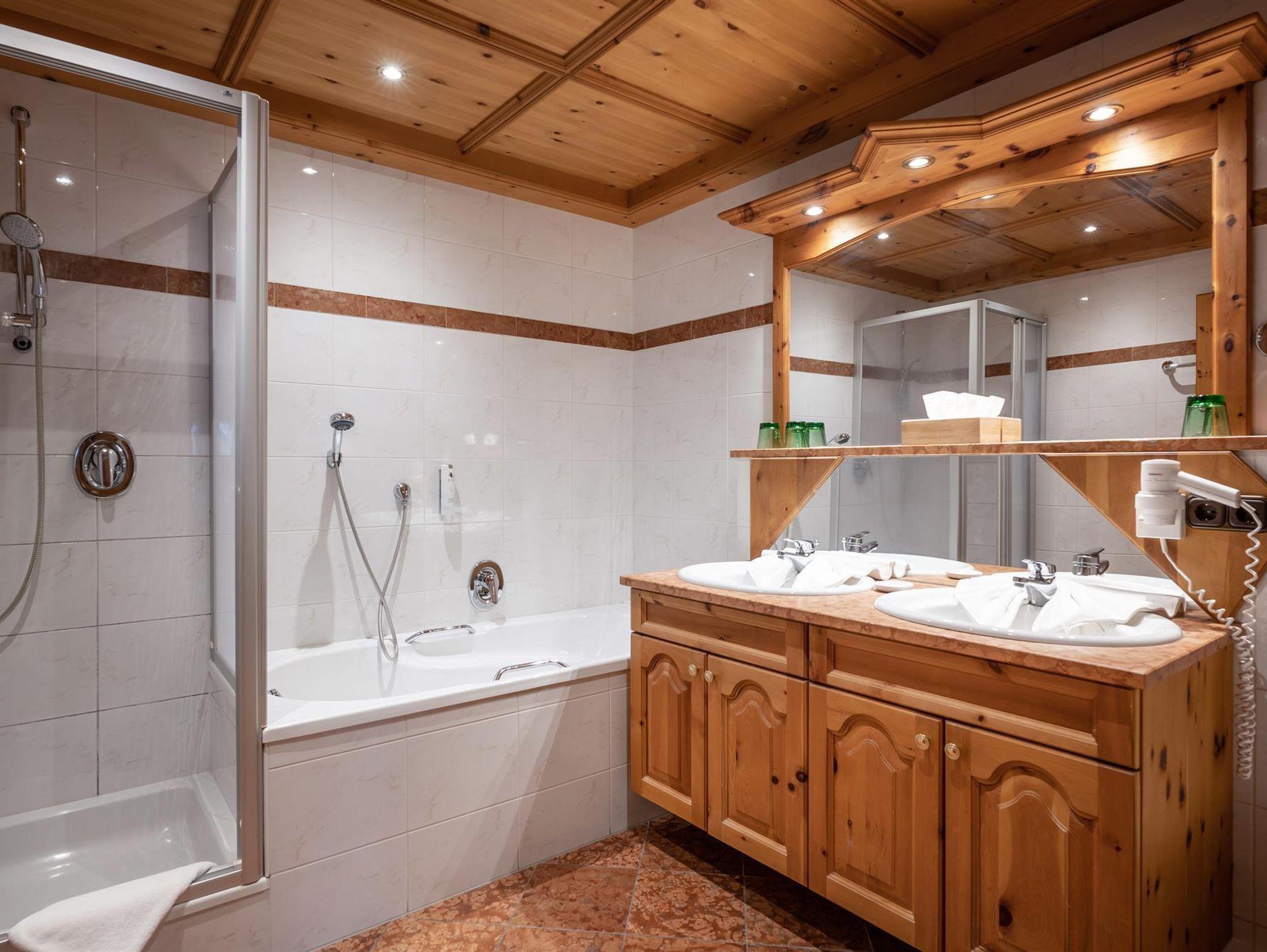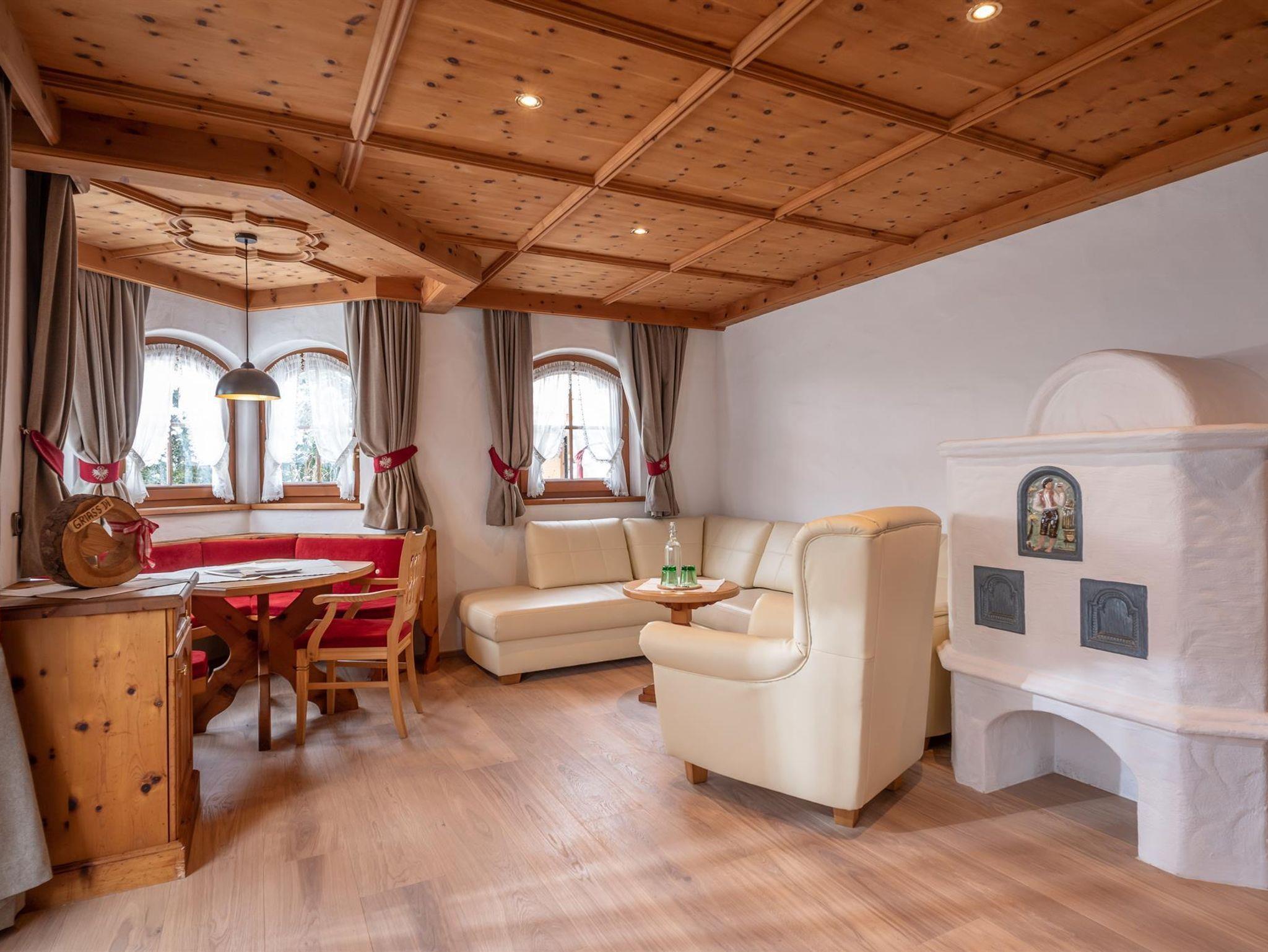 Die Kaisersuite befindet sich vom Hotel ca. 10 Meter entfernt und bietet Ihnen auf ca. 80m² Platz zum Erholen. Diese Suiten verfügen über 2 Schlafzimmer, ein großes Wohnzimmer mit Kachelofen und gemütlicher Sitzecke, komplett eingerichtete Küche, 3x Flatscreen-TV, Telefon, 1x Bad/Dusche, WC und 1x DU/WC, 2x Föhn, 2x Safe, Balkon oder Terrasse.