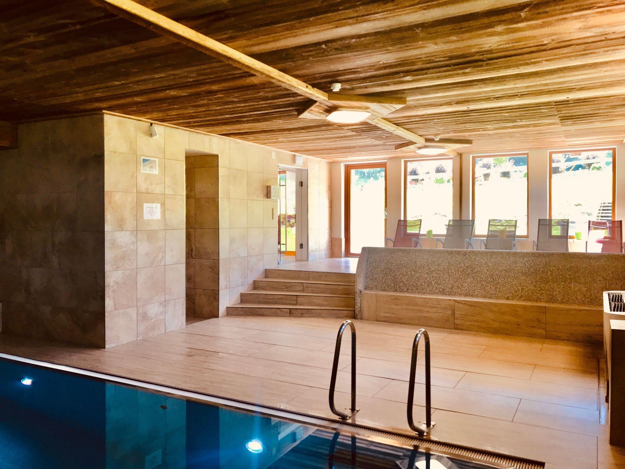 Outside, the spacious wellness area of the Vitalhotel Gosau awaits you. With an offer that includes an indoor pool, infrared cabins, sauna, relaxation rooms and a fitness area, relaxation is a top priority. In summer, you can also relax on a sun-drenched terrace surrounded by the breathtaking scenery of the Salzkammergut. A seasonal kids' club is available for children, and massages can be booked for an extra charge.