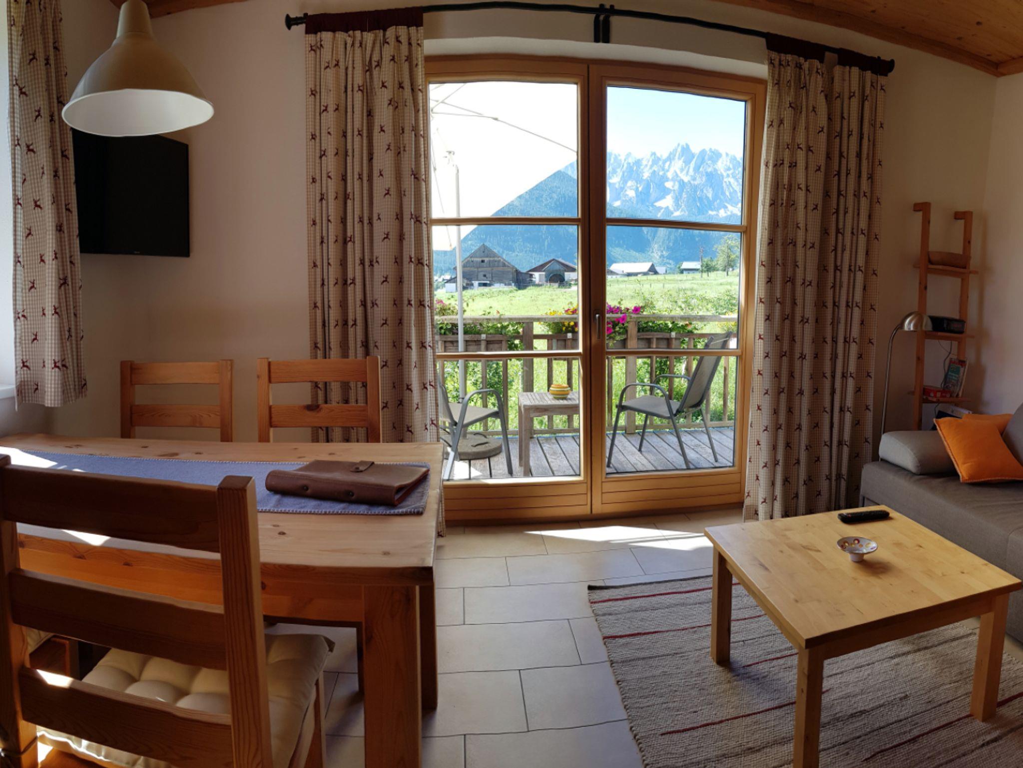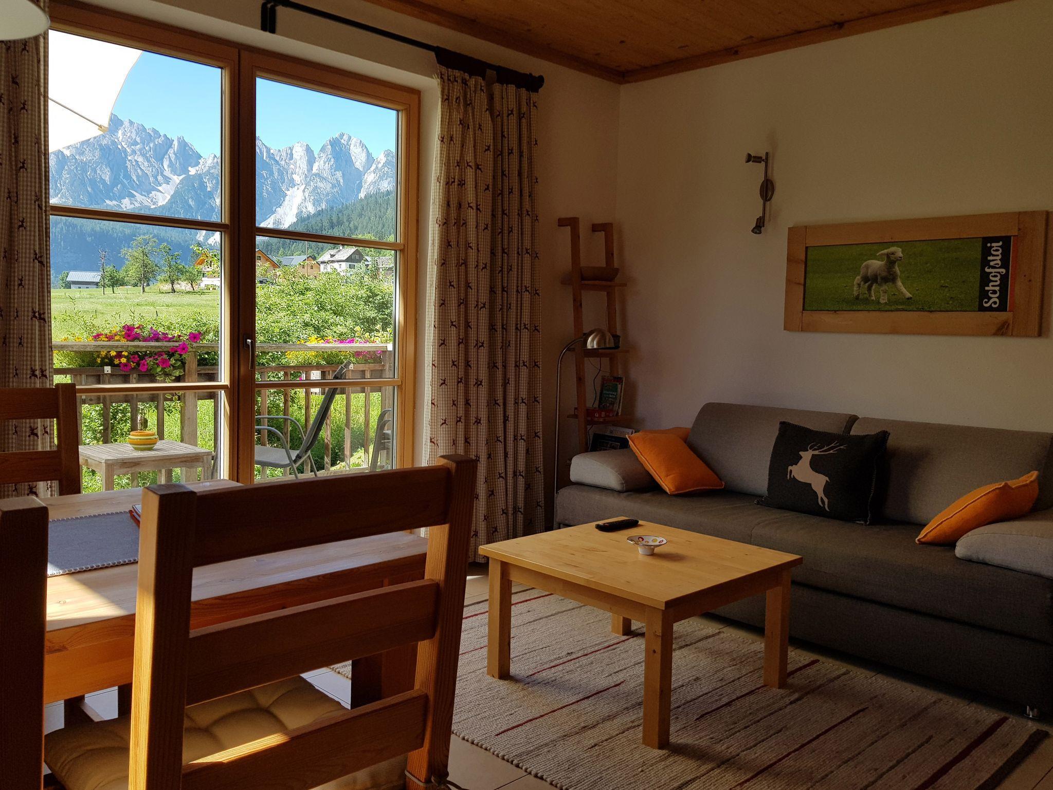 Der Schofstoi (der Schafstall) ist unser süd-östlich ausgerichtetes Apartment mit Balkon und Blick auf den Gosaukamm.
