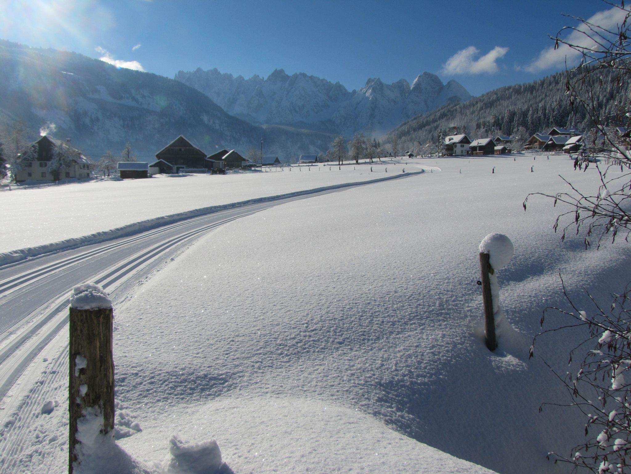 Im Winter führt die präparierte Langlaufloipe direkt an unserem Haus vorbei,