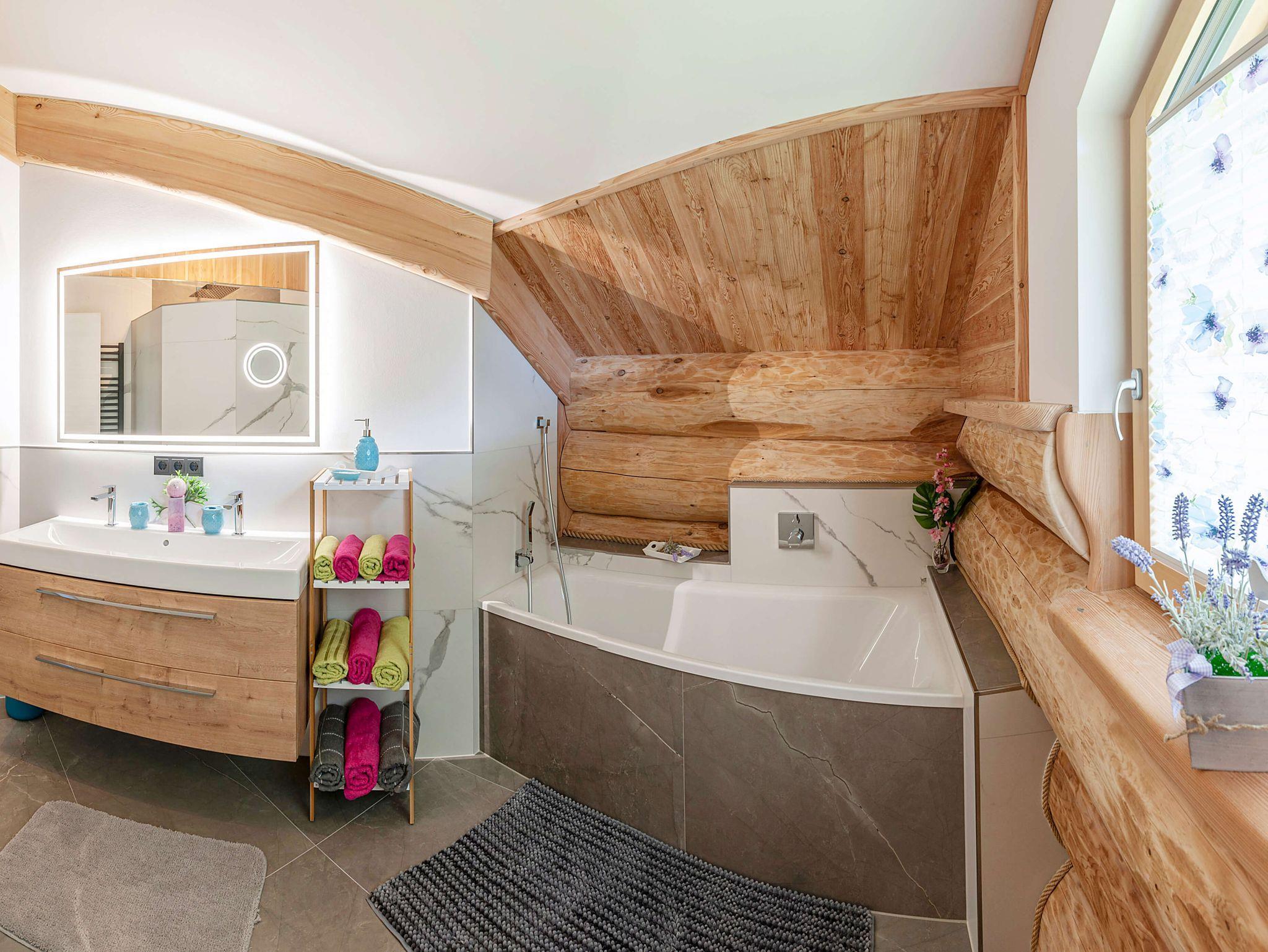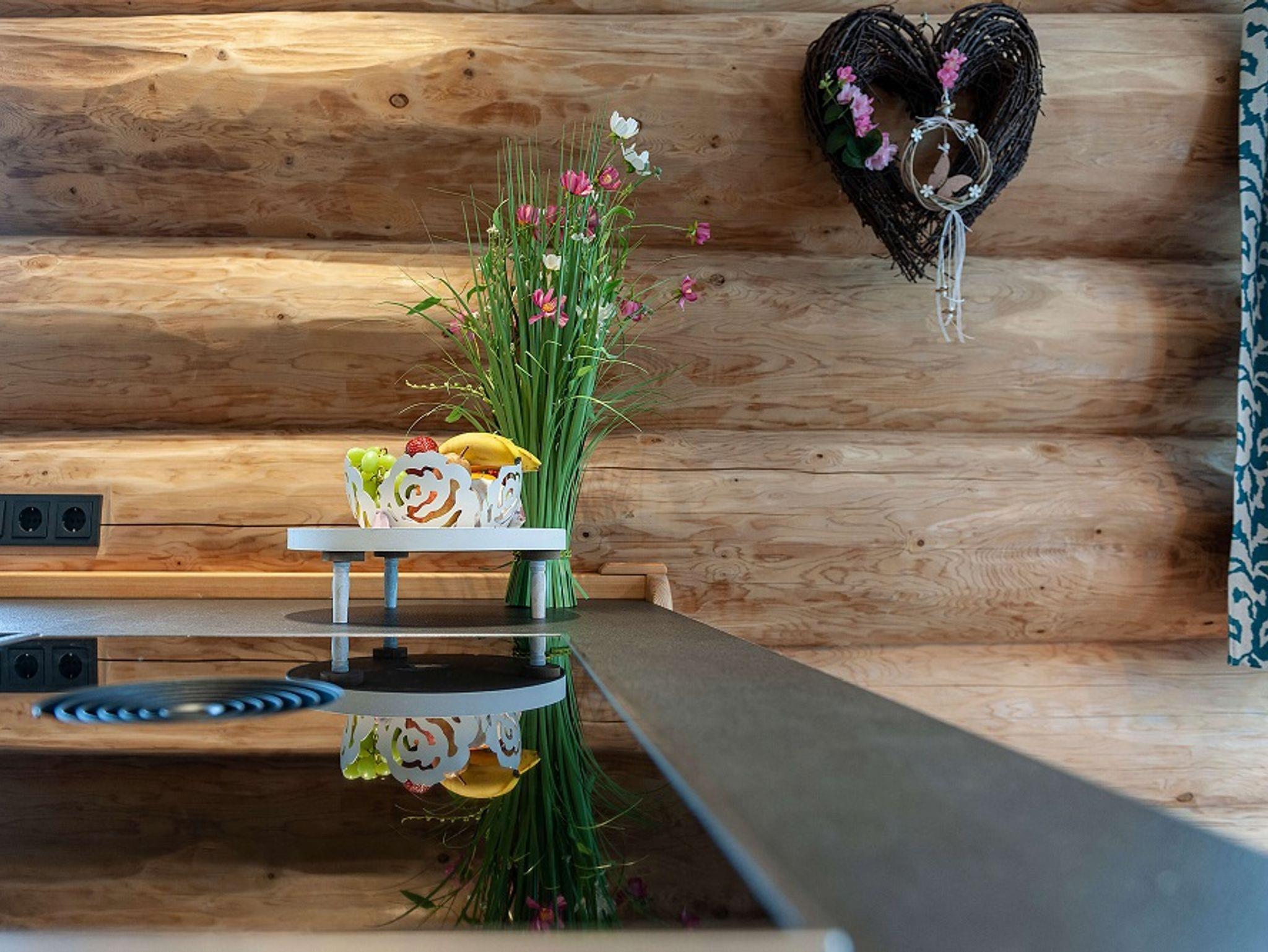 Mit dem handgefertigten Zedernblockhaus aus British Columbia hat sich der Eigentümer seinen Traum erfüllt. Das massive Holz strahlt Ruhe aus und wartet mit allem Komfort auf Sie: Im Erdgeschoss regiert Wohnen und Leben. Die großzügige Wohnküche geht nahtlos zur Terrasse über, wo Sie warme Sommernächte genießen werden, den Grill anheizen können und den Tag ausklingen lassen.