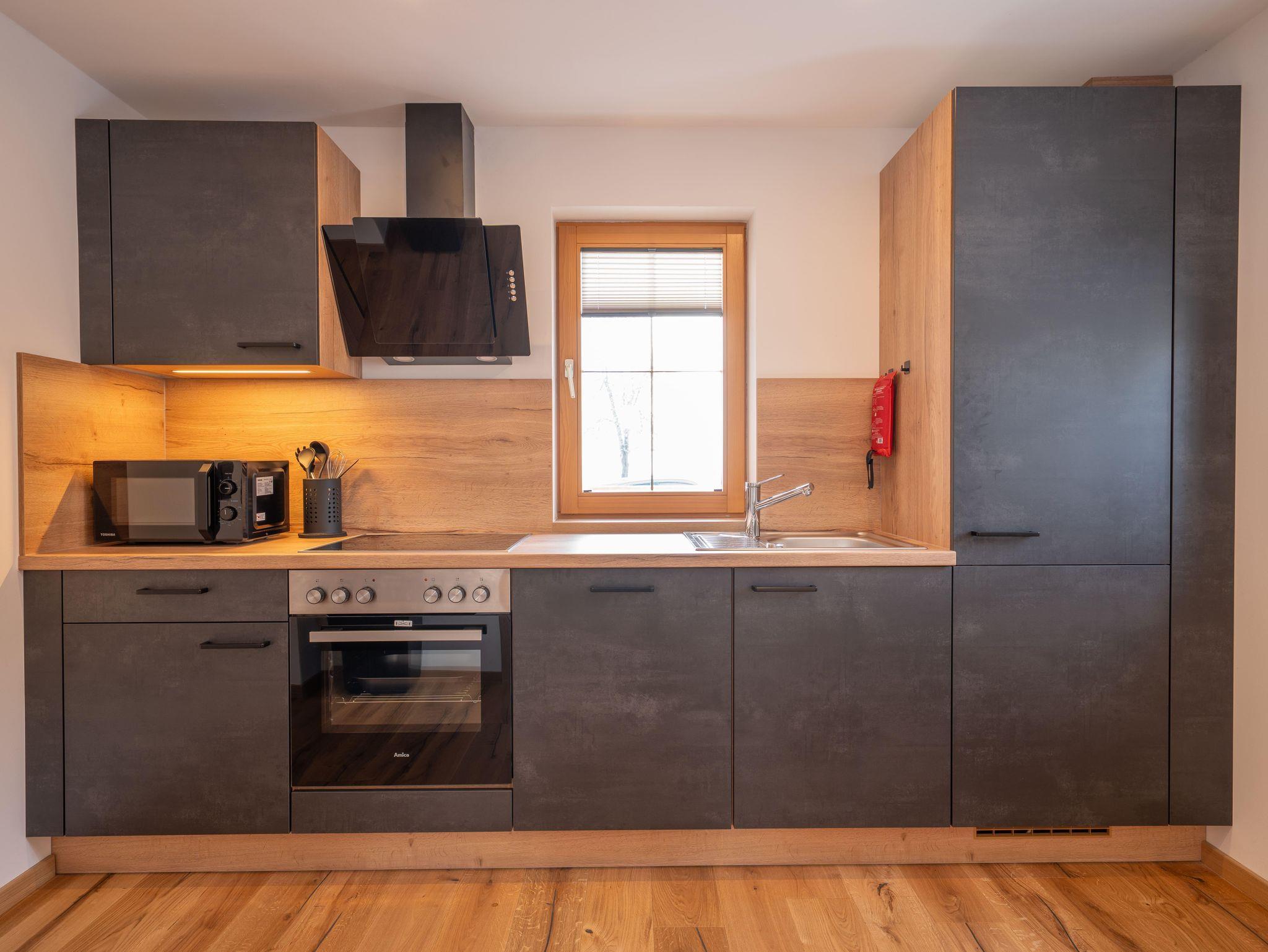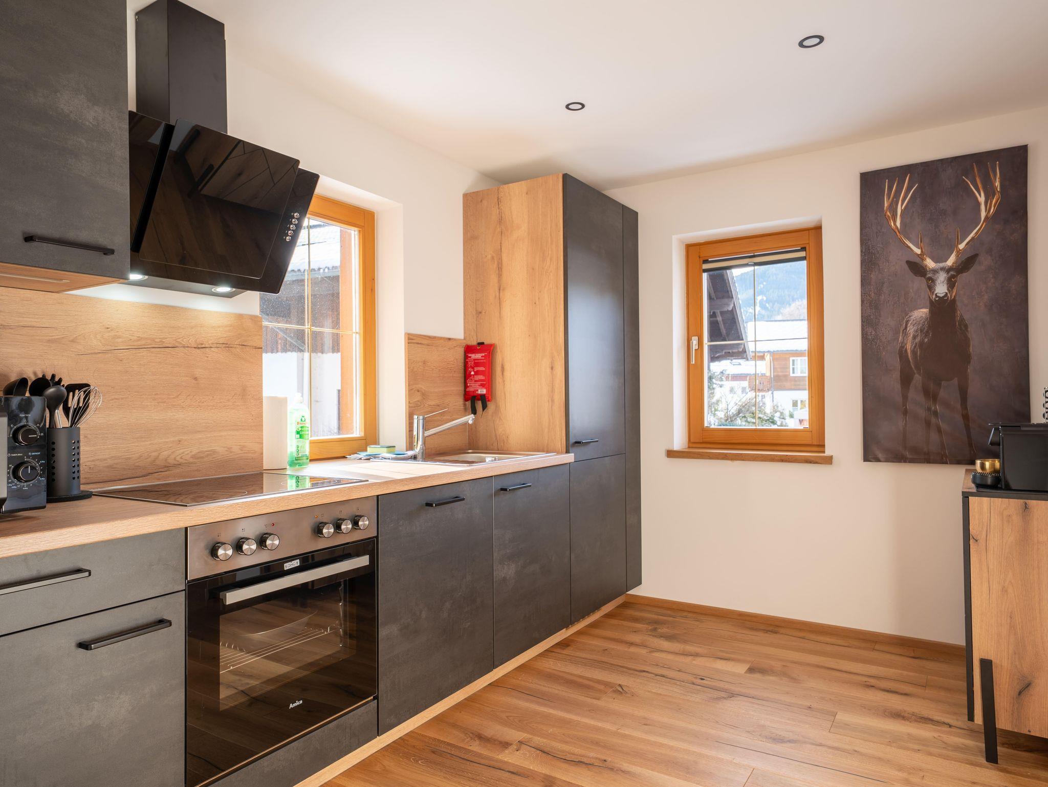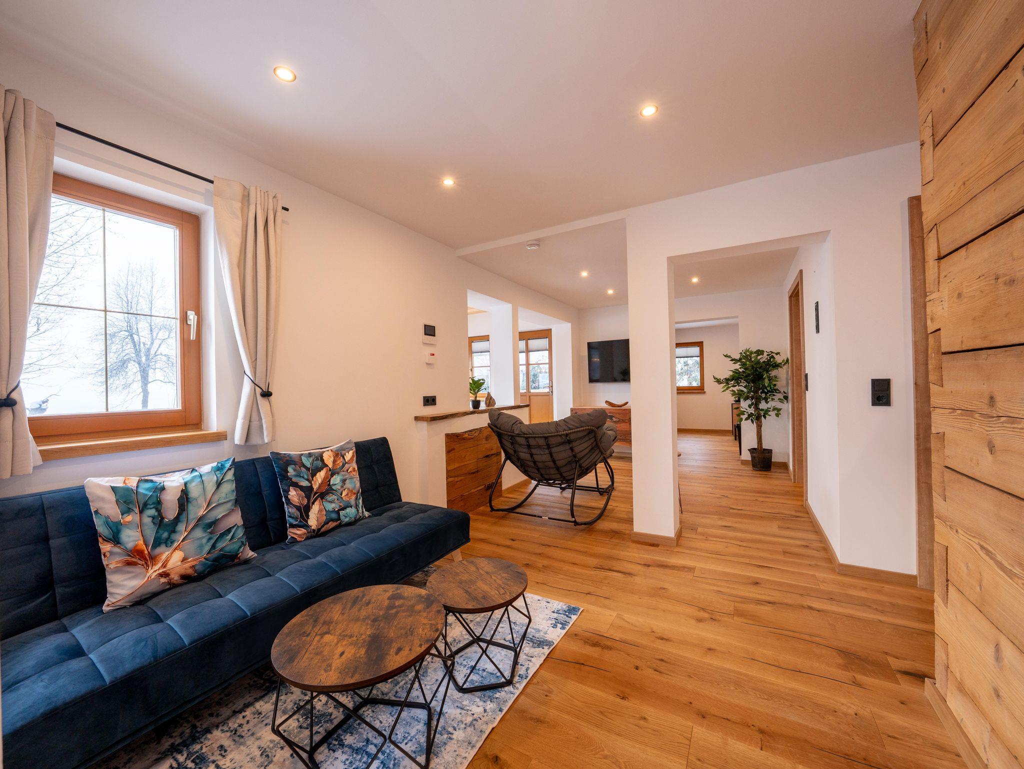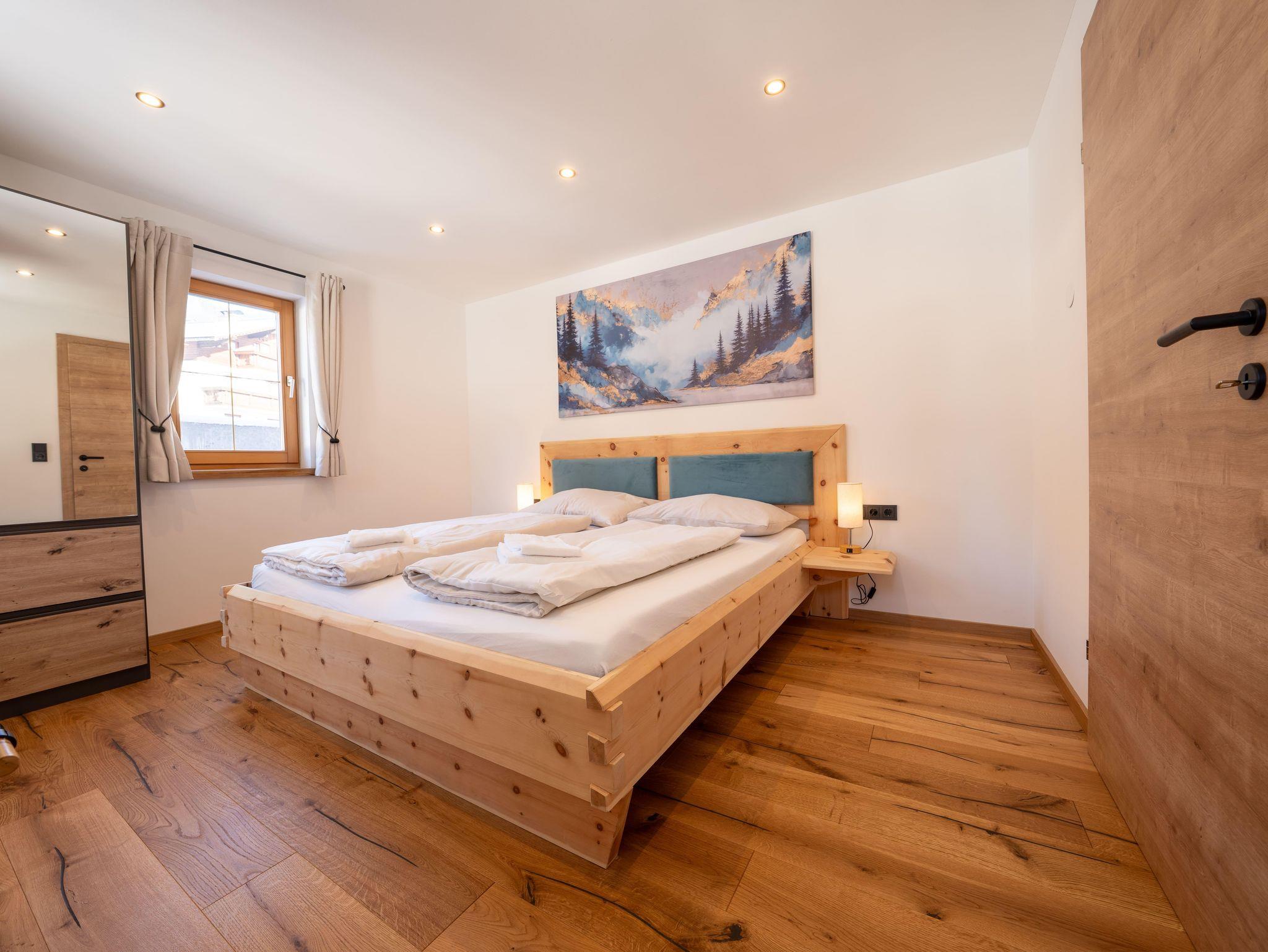 Das frisch renovierte Apartment Holzklang im Erdgeschoss verbindet modernes Design mit alpinem Flair. Auf 64 m² bietet es Platz für bis zu 4 Personen. Ein Zirbendoppelbett und ein handgefertigter Eichen-Esstisch sorgen für gemütliches Ambiente. Im Bad setzt eine restaurierte Werkbank von 1920 mit Steinbecken einen besonderen Akzent. Zur Ausstattung gehören Wintergarten, Terrasse mit Gartenzugang, Fußbodenheizung und ein eigener Skischuhtrockner im Eingangsbereich.