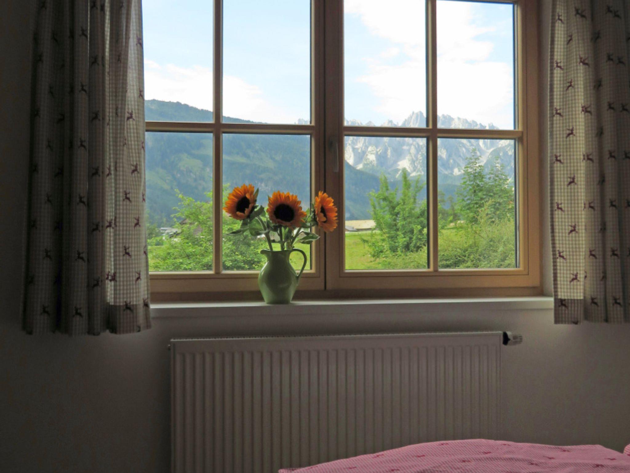 Der Kuastoi (der Kuhstall) ist unsere süd-westlich ausgerichtete Ferienwohnung mit Terrasse (direkter Gartenzugang) und Blick auf den Gosaukamm.