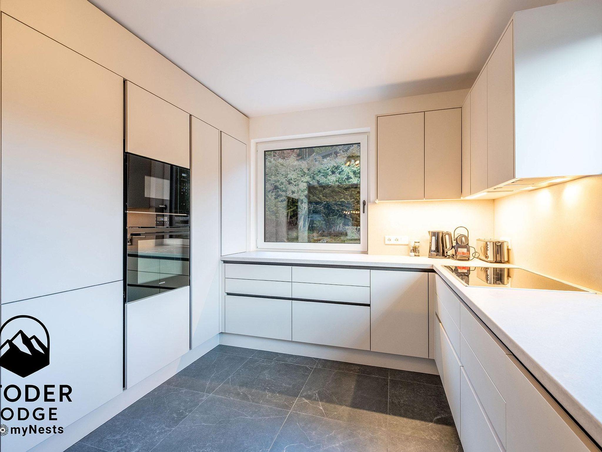 Drei stilvolle Schlafzimmer mit komfortablen 180-cm-Doppelbetten sowie drei moderne Badezimmer sorgen für maximalen Komfort und Privatsphäre. Herzstück der Wohnung ist der großzügige Wohn- und Essbereich mit einer traumhaften Designküche – perfekt für gemeinsame Abende, lange Frühstücke oder entspannte Stunden nach einem aktiven Tag in den Bergen.
