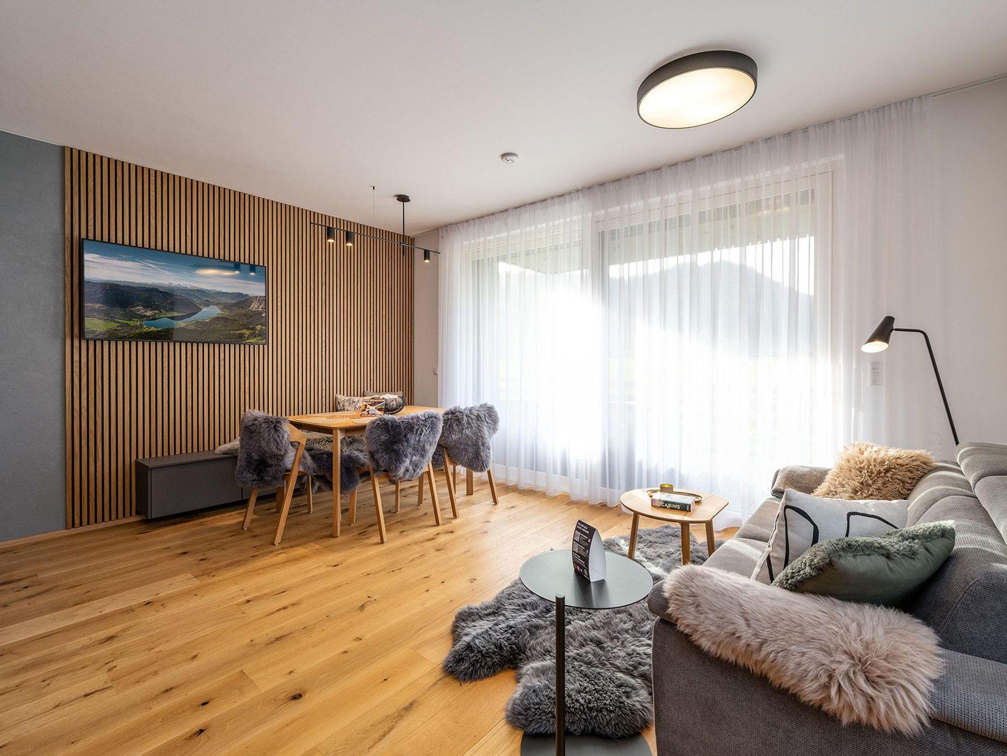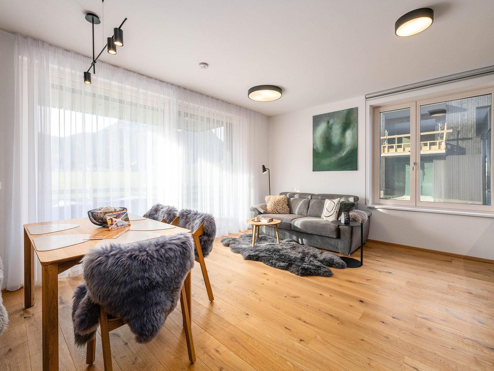 Terrassen oder Balkone eröffnen traumhafte Ausblicke auf die umliegende Bergwelt und laden dazu ein, Sonne und Natur in vollen Zügen zu genießen. Ergänzt wird das Wohngefühl durch praktische Extras wie Ski- und Fahrradabstellmöglichkeiten, Parkplätze direkt bei der Unterkunft sowie moderne technische Ausstattung für einen entspannten Aufenthalt.