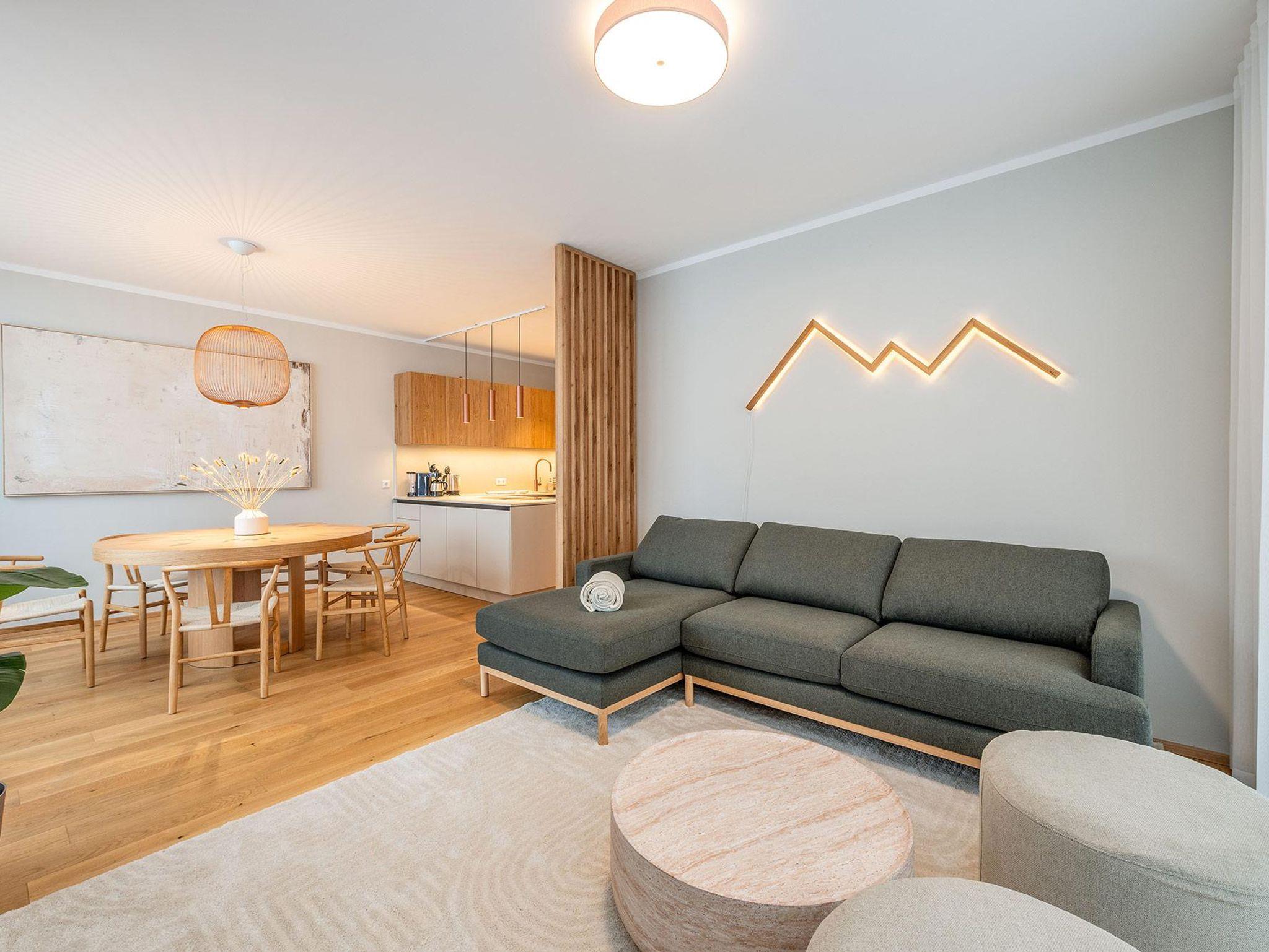 Großzügige Grundrisse, harmonische Materialien und durchdachte Raumkonzepte schaffen ein sofortiges Wohlgefühl. Die Apartments bieten je nach Einheit komfortable Schlafzimmer, moderne Wohnbereiche sowie voll ausgestattete Küchen oder Wohnküchen – perfekt für Paare, Familien oder kleine Gruppen.