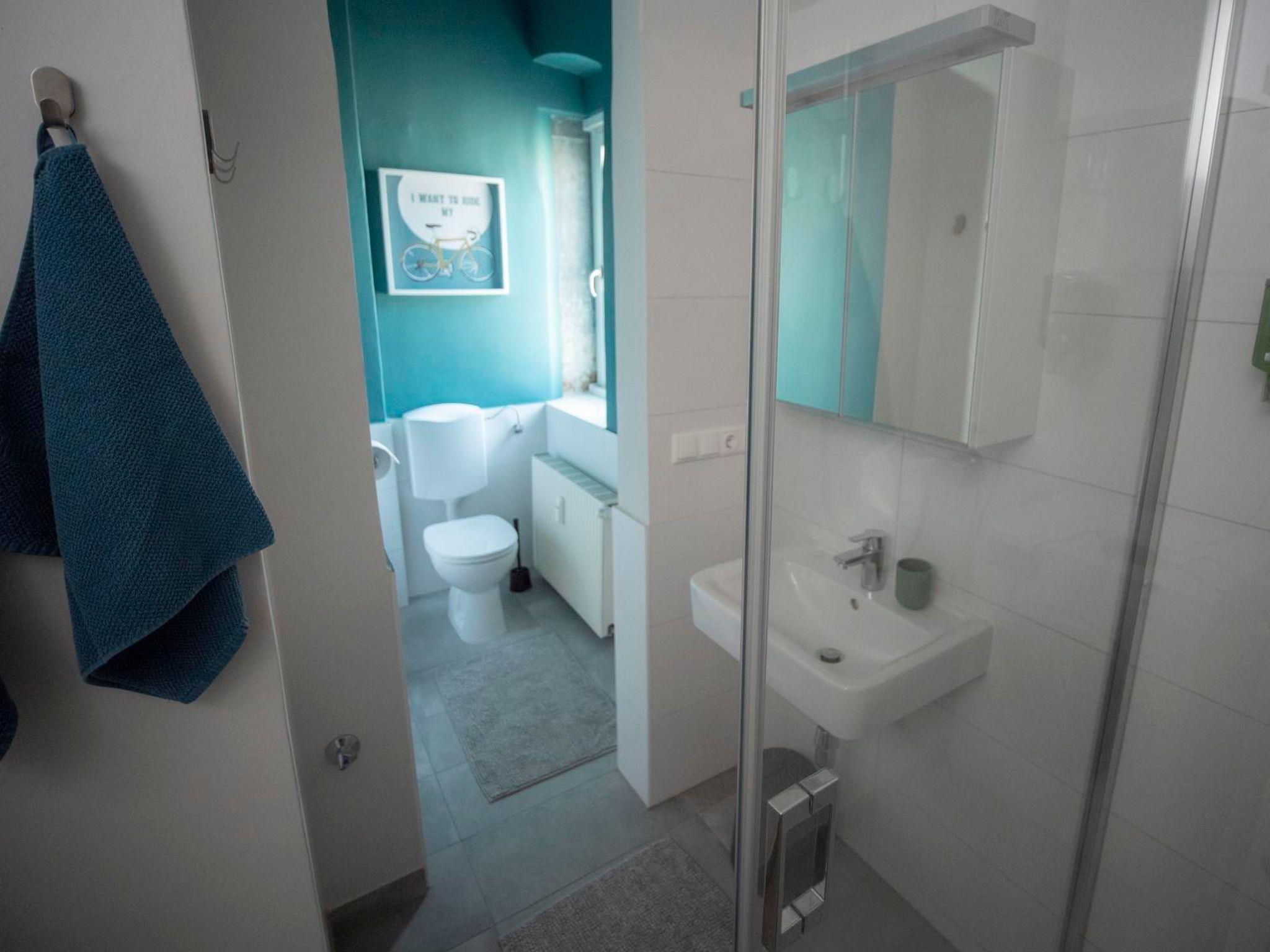 Contactless check-in Instead of keys, there is a combination lock so that nobody has to worry about losing the flat keys. We can therefore check in and out at any time of day or night. The "blue" flat is located on the first floor and can be reached via a wide staircase.