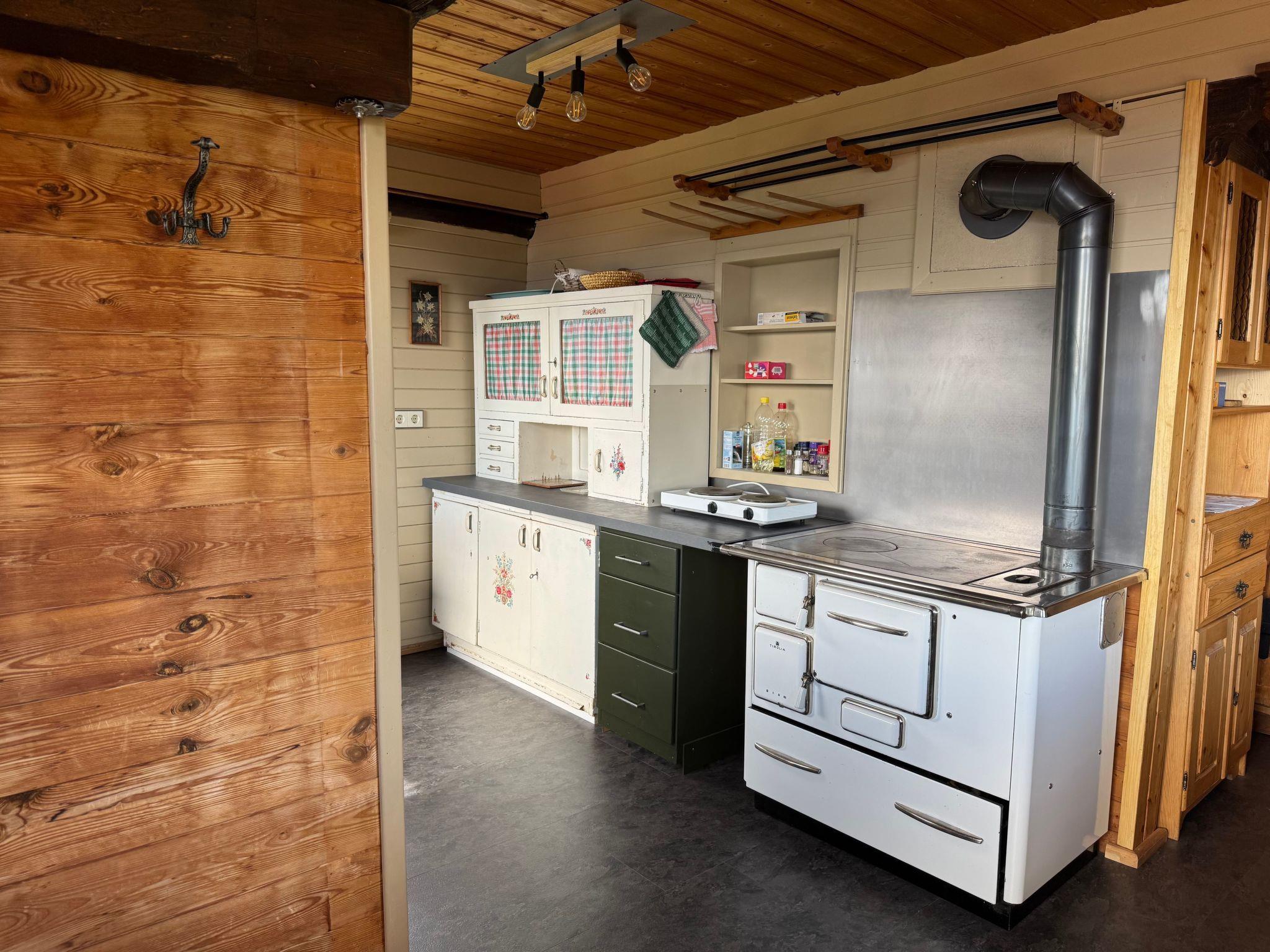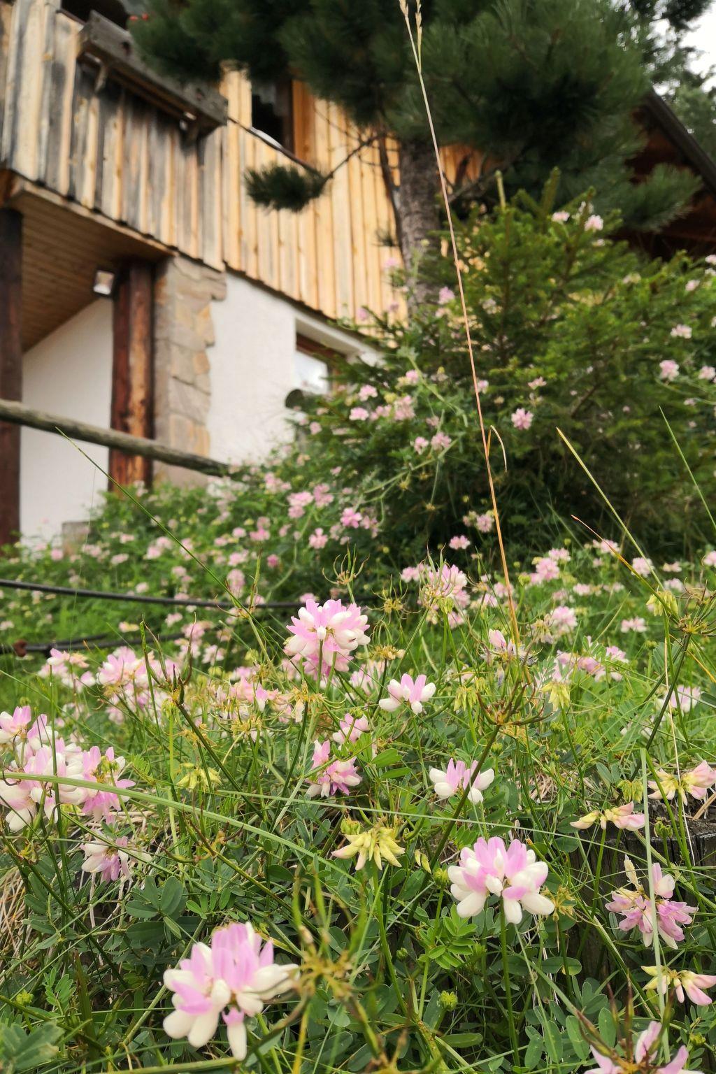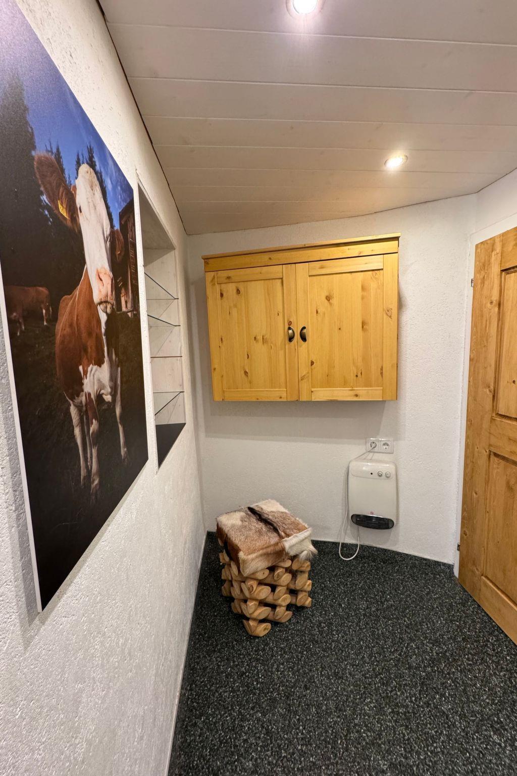 Inside the hut you will find a cosy and newly renovated living room with a balcony and a Swiss stone pine seating area, a kitchen corner and a large wood-burning stove. The ground floor also offers an inviting 2-bed room, a pantry, a bathroom with shower and a separate WC. On the upper floor you will find a bright, friendly 4-bed room with a furnished balcony, another cosy 2-bed room and a separate WC. The bedrooms are also equipped with radiant heaters for the cooler months. Please note that pets are not allowed in the bedrooms.