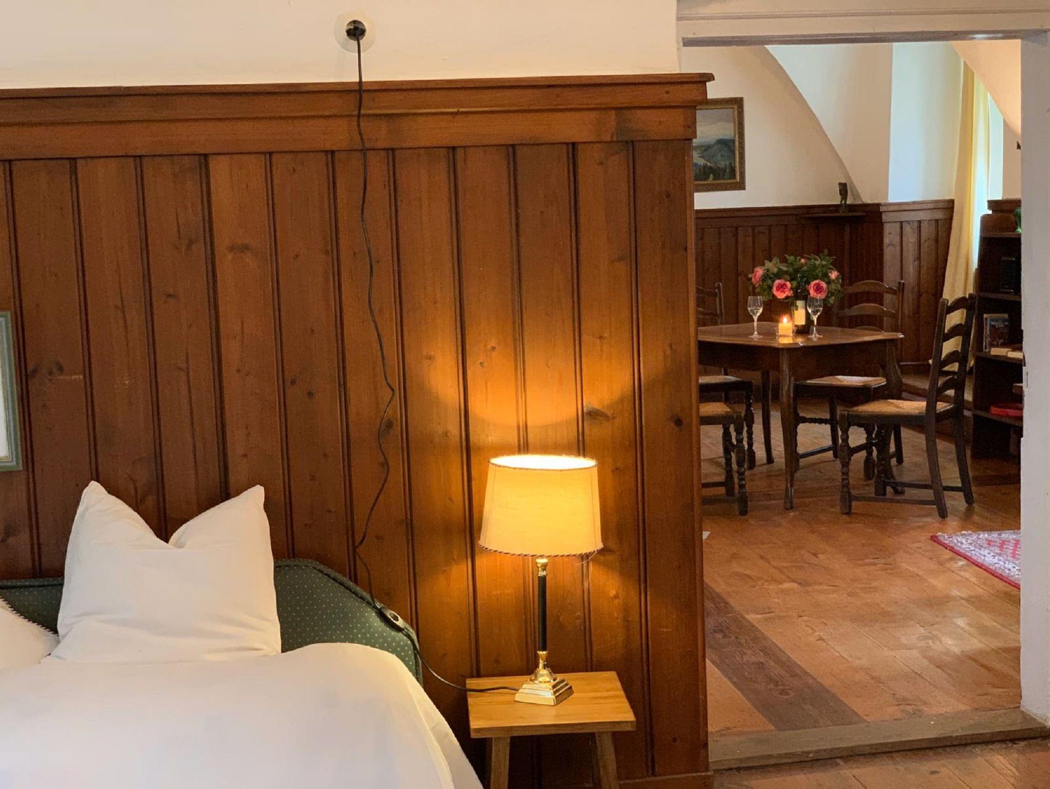 Die ruhigen Fereinwohnungen mit direktem Gartenzugang befinden sich im Nebengebäude mit Blick auf das Schloss. Die gewölbten Räume bieten ein angenehmes Klima und das Amiente eines historischen Gebäudes.