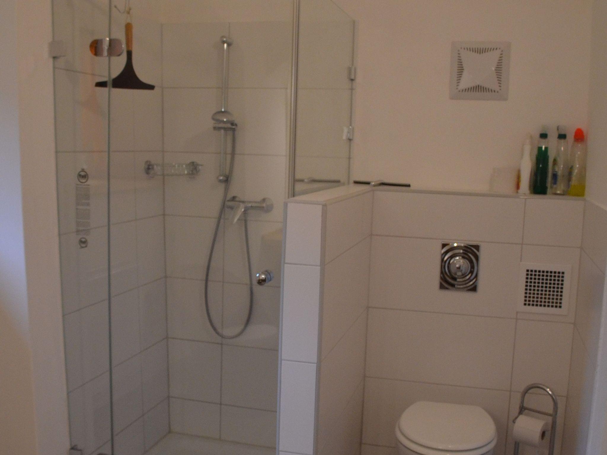 Das Badezimmer ist mit Dusche, WC, und Waschbecken ausgestattet. Eine Fön ist vorhanden.