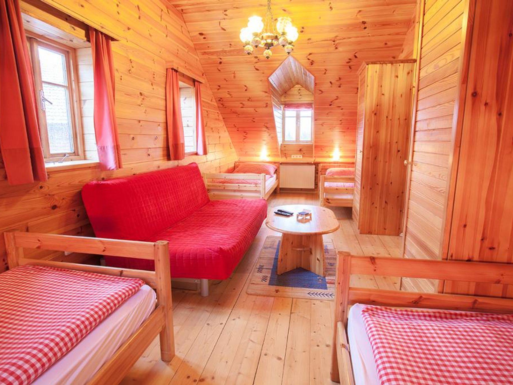 Die Naturzimmer in unserem Blockhaus sind mit Kiefernholz ausgestattet. Das Ambiente ist einfach & gemütlich. Das Gebäude bietet für bis zu 19 Personen Platz und ist die ideale Unterkunft für fröhliche Gruppen und Familien, die nicht auf Komfort verzichten möchten. (max. Kapazität im gesamten Gasthof bis zu 45 Personen)