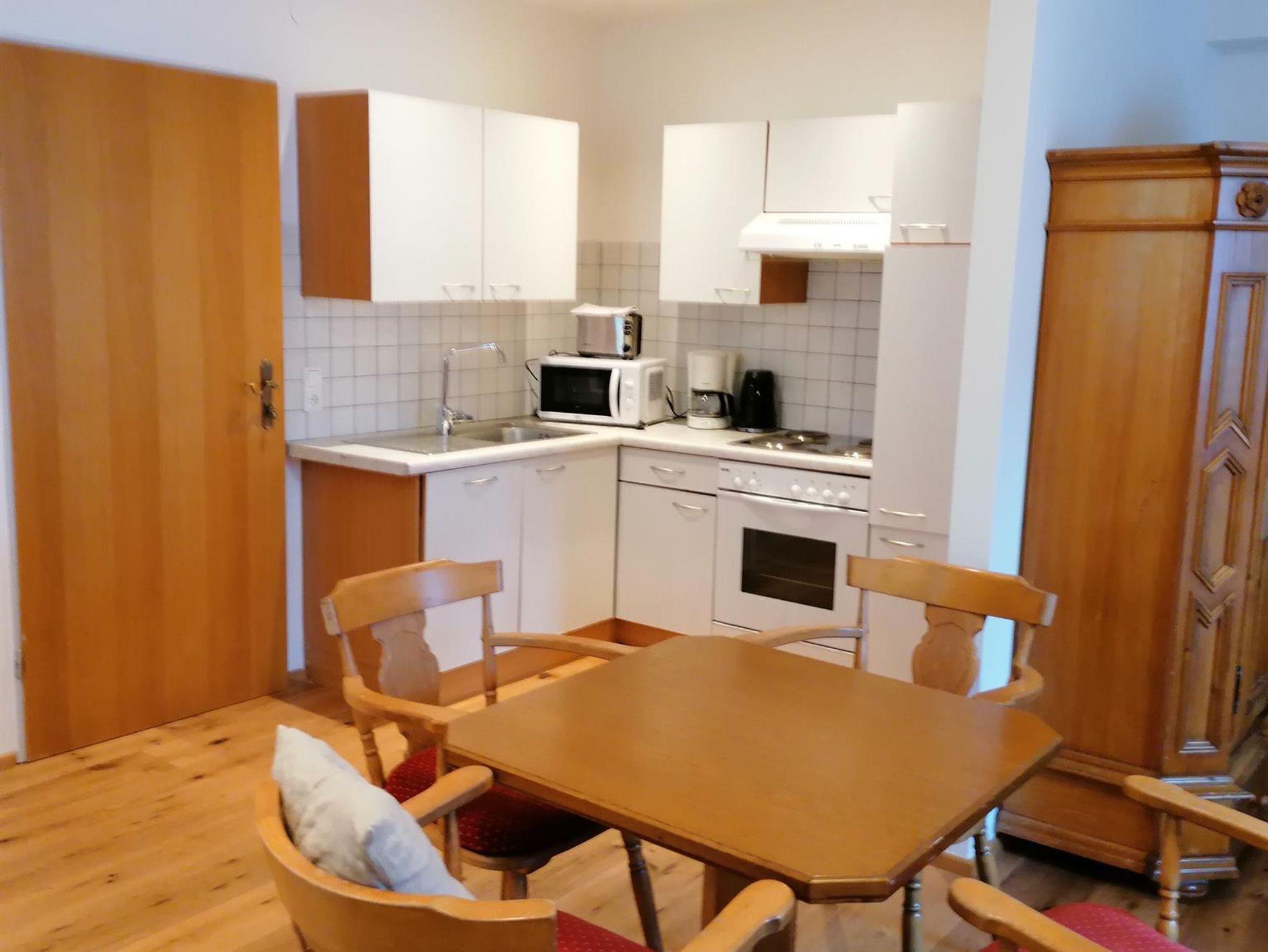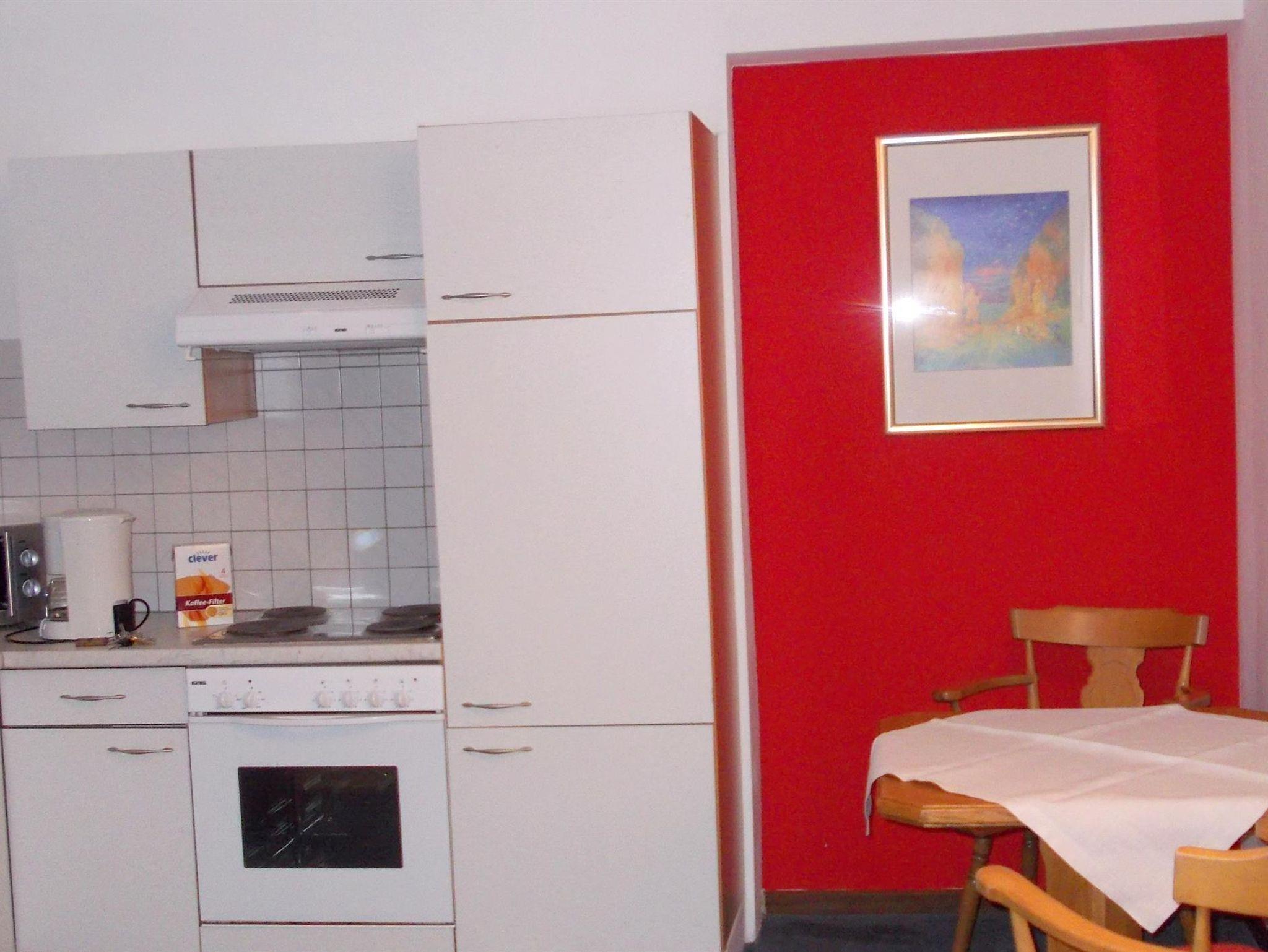 Liebevoll eingerichtete Ferienwohnung für 2 bis 3 Personen, ein großer, räumlich getrennter Wohnschlafraum mit Schlafnische für 2 Personen und Einzelcouch, Sitzecke, Kochecke mit Backrohr, Mikrowelle und Kaffemaschine und voller Küchenausstattung sowie großem Badezimmer mit Badewanne/Dusche und WC