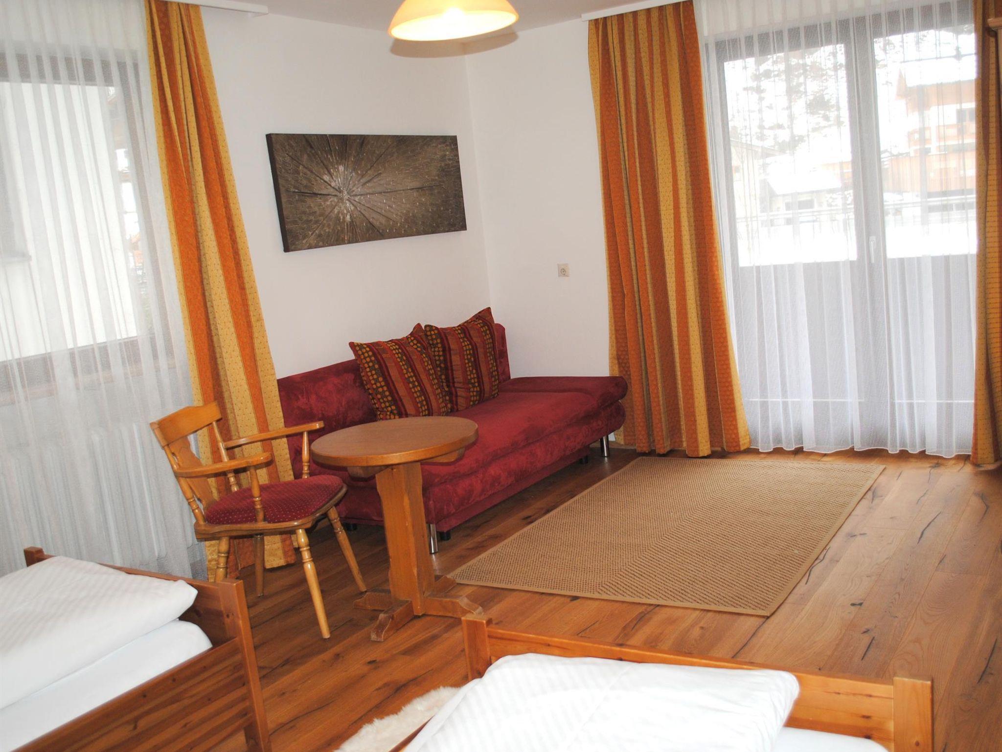 Liebevoll eingerichtete Ferienwohnung für bis zu 6 Personen mit zwei getrennten Schlafzimmern (einmal Doppelbett, einmal 2 getrennte Betten, jeweils eine Schlafcouch), Sat-TV, Wohnraum mit Küchenzeile, Geschirrspüler, Backrohr, Mikrowelle, Kaffemaschine und gemütlicher Sitzecke, Badezimmer mit Badewanne/Dusche und WC. Großer möbelierter Balkon!