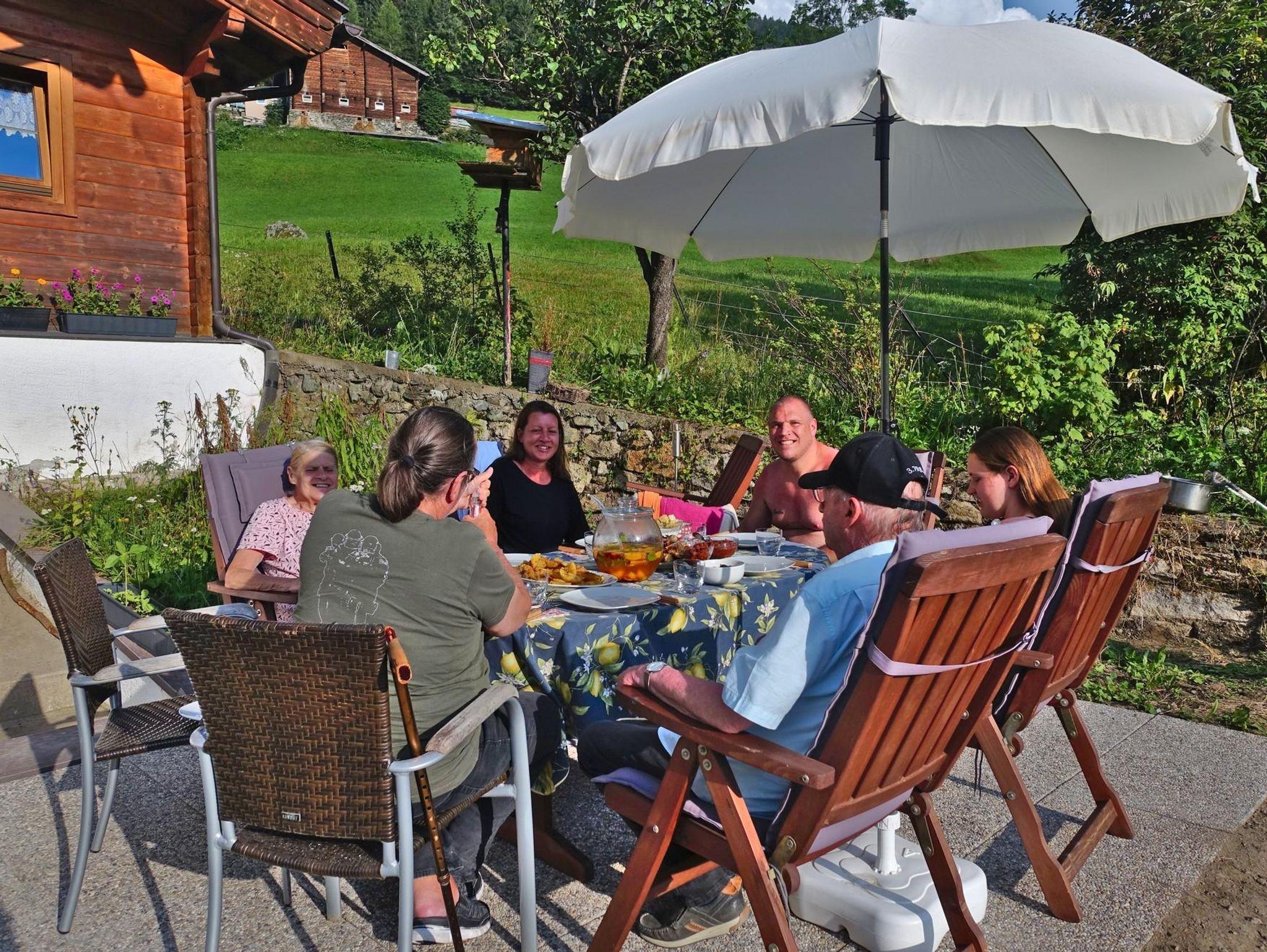 Draußen lädt eine große Sonnenterrasse mit Grillplatz zum Barbecue ein, und selbst im Winter könnt Ihr dort im Liegestuhl ein Sonnenbad in unserer Höhensonne nehmen. Unser großer, sonniger Naturgarten mit atemberaubendem Bergpanorama ist perfekt zum Ausspannen und für die Kids zum Spielen. An den Bio-Kräutern, die wir dort kultivieren, dürft Ihr Euch nach Herzenslust bedienen. Falls Ihr mit Mountainbikes oder Motorrädern kommt, könnt Ihr diese in unserer abschließbaren Garage sicher unterstellen.