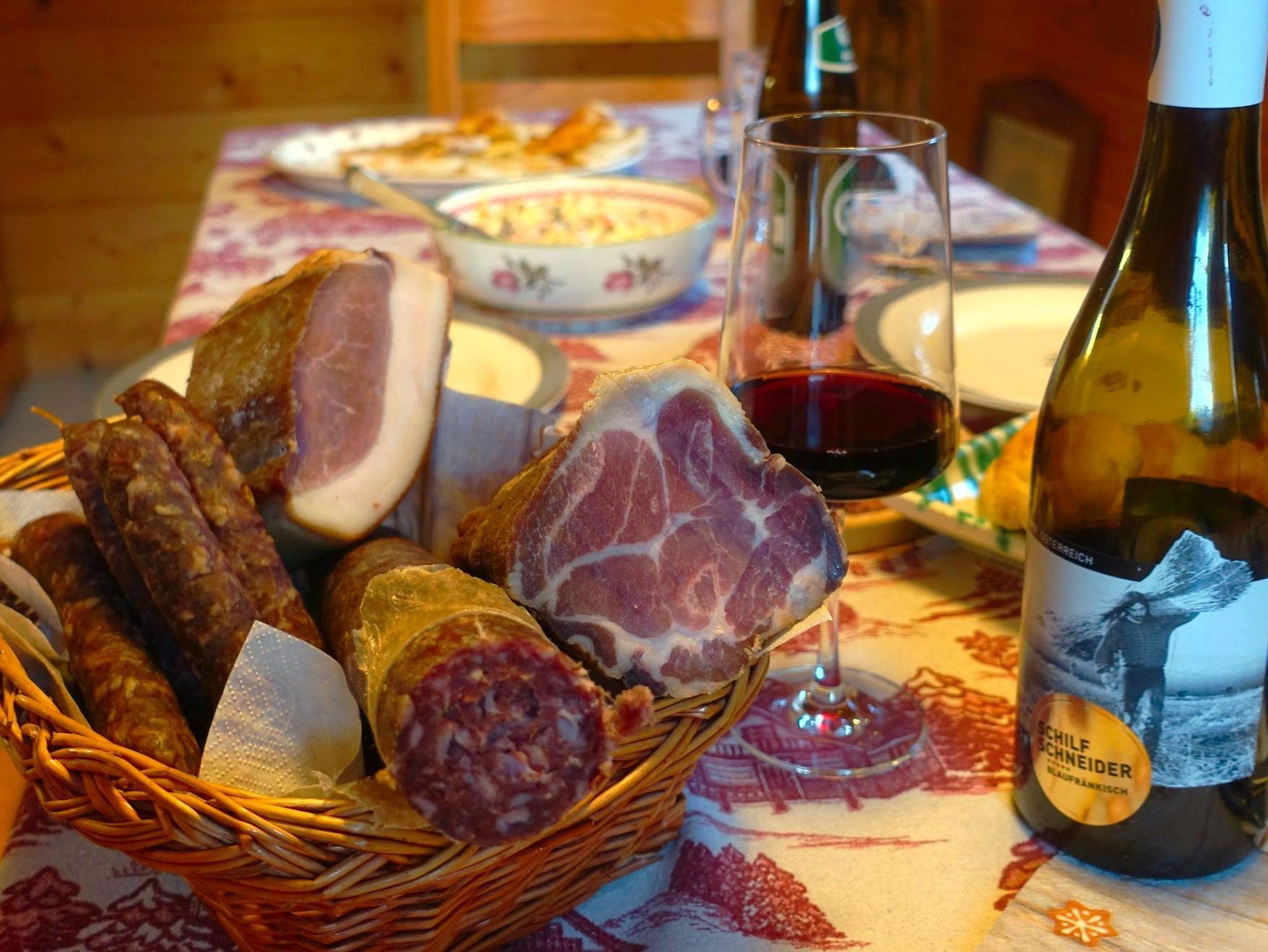 Die Landhausküche ist mit Geschirrspüler, Backofen mit Ceran-Kochfeld, altem Holzherd und jeglichen Küchengeräten perfekt ausgestattet. Dort lassen sich auch aufwändige Gerichte gut zubereiten, und die offene Architektur zur alten Stube sorgt für Geselligkeit und Kommunikation. Schöne Tischwäsche, edles Geschirr und Gläser vom Designer machen das gemeinsame Essen zum Erlebnis. Und wenn Ihr mal nicht kochen wollt, verwöhnen wir Euch gerne mit erlesenen kulinarischen Genüssen wie Fondue- oder Grill-Abenden, Seafood-Dinners frisch von der Adria oder einer Gourmet-Weinprobe aus dem legendären Weinkeller des Hausherren.