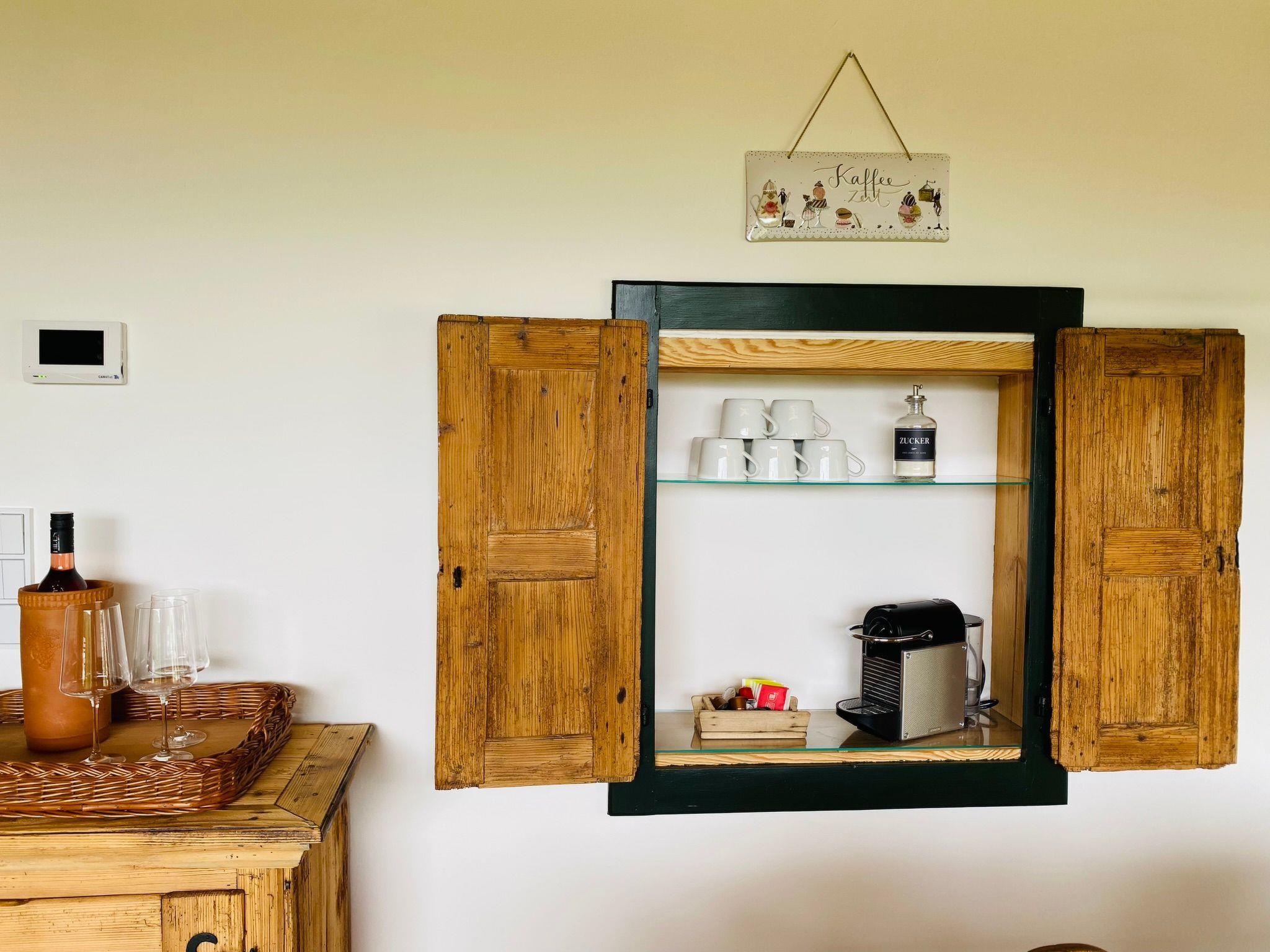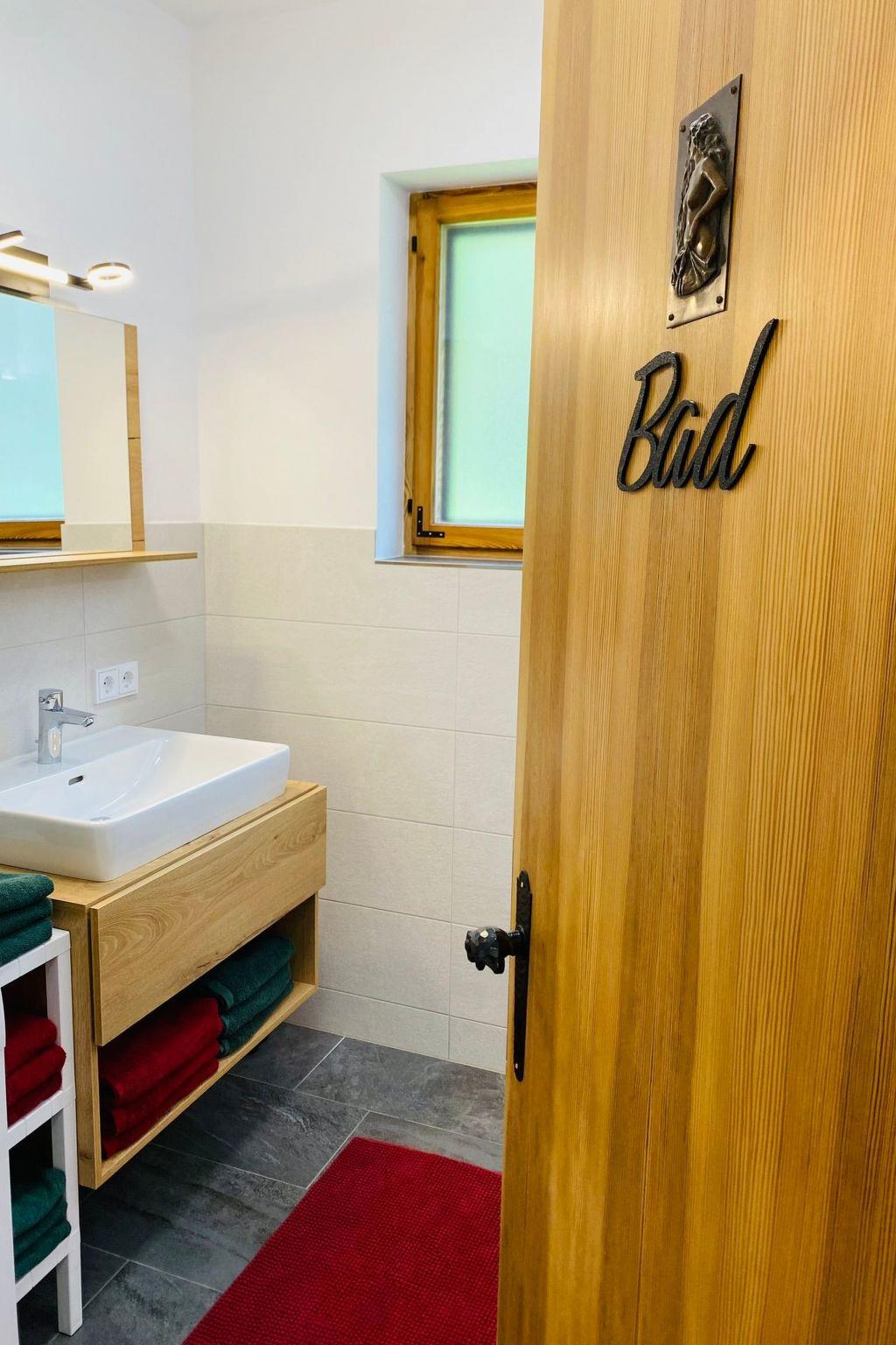 The interior of our completely modernised holiday home comprises a spacious living and dining area with a well-equipped kitchen, three cosily furnished bedrooms, a bathroom and a separate WC. One highlight is definitely the large panoramic window, which gives you a heart-warming view of the greenery. In addition to the wood-burning stove, which ensures cosy evenings, a dishwasher, a flat-screen TV and WiFi in all rooms round off the contemporary comfort.